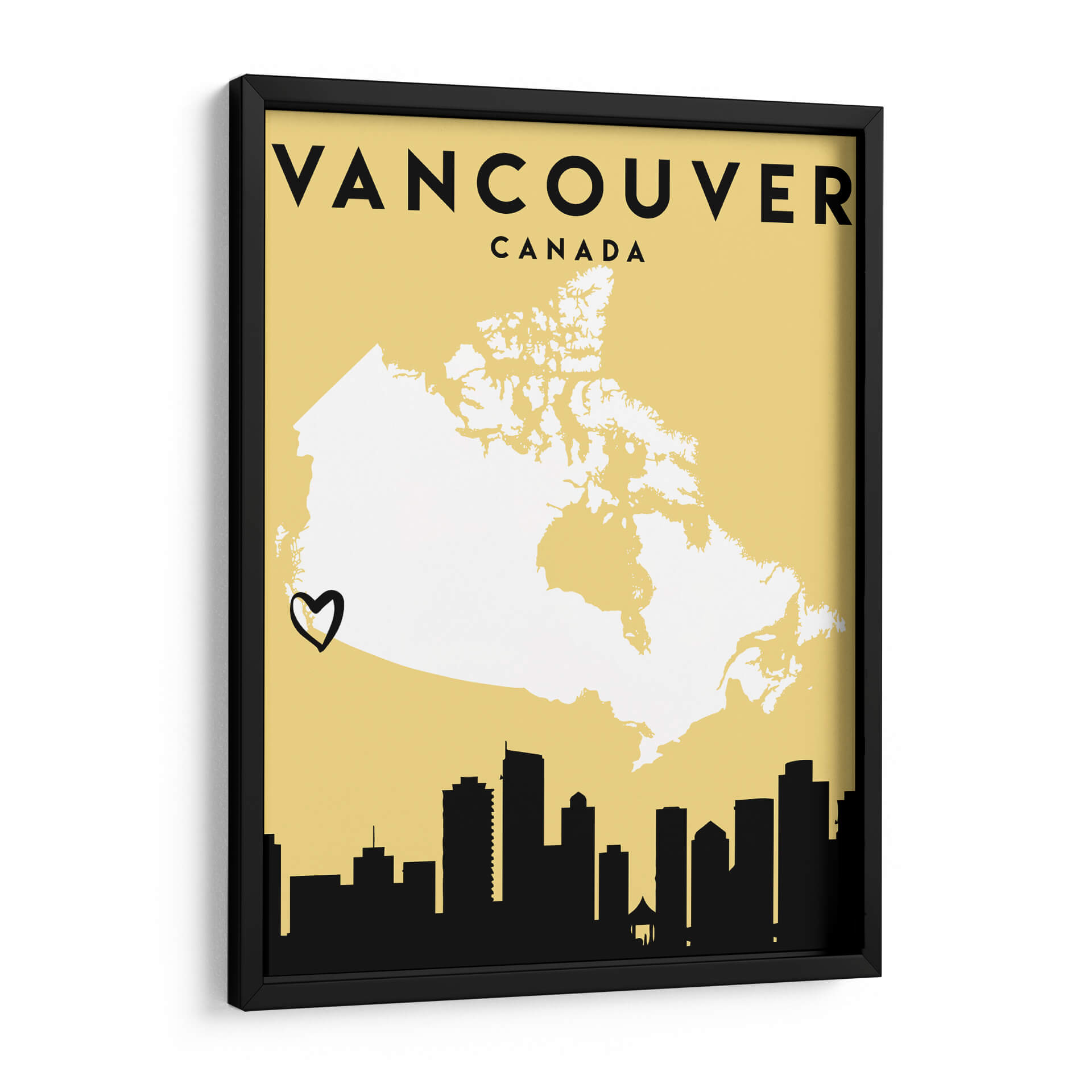 Capta la esencia de Vancouver con este evocador cuadro decorativo que fusiona el mapa de Canadá con su icónico horizonte urbano. La obra, titulada 'Vancouver, Canada - Mapas de amor de la ciudad 90' del artista Emiliano Deificus, presenta un diseño estilizado y moderno en una paleta de colores cálida y atractiva, dominada por un fondo ocre suave que contrasta con el blanco del mapa de Canadá y el negro intenso del perfil de la ciudad. Un pequeño corazón dibujado a mano añade un toque personal y afectuoso, sugiriendo una conexión especial con esta vibrante metrópoli costera. La composición es limpia y gráfica, ideal para aquellos que buscan añadir un toque de sofisticación urbana y un recordatorio de sus lugares favoritos a su hogar u oficina. Este cuadro decorativo es perfecto para espacios modernos, minimalistas o incluso para aquellos que desean incorporar un elemento de diseño inspirado en viajes. Su diseño versátil lo hace un excelente punto focal en salas de estar, estudios o recibidores, aportando carácter y un aire contemporáneo. Descubre la belleza de Vancouver a través de una interpretación artística única que celebra la geografía y la arquitectura de una de las ciudades más bellas de Canadá, una pieza que habla de pertenencia y admiración.