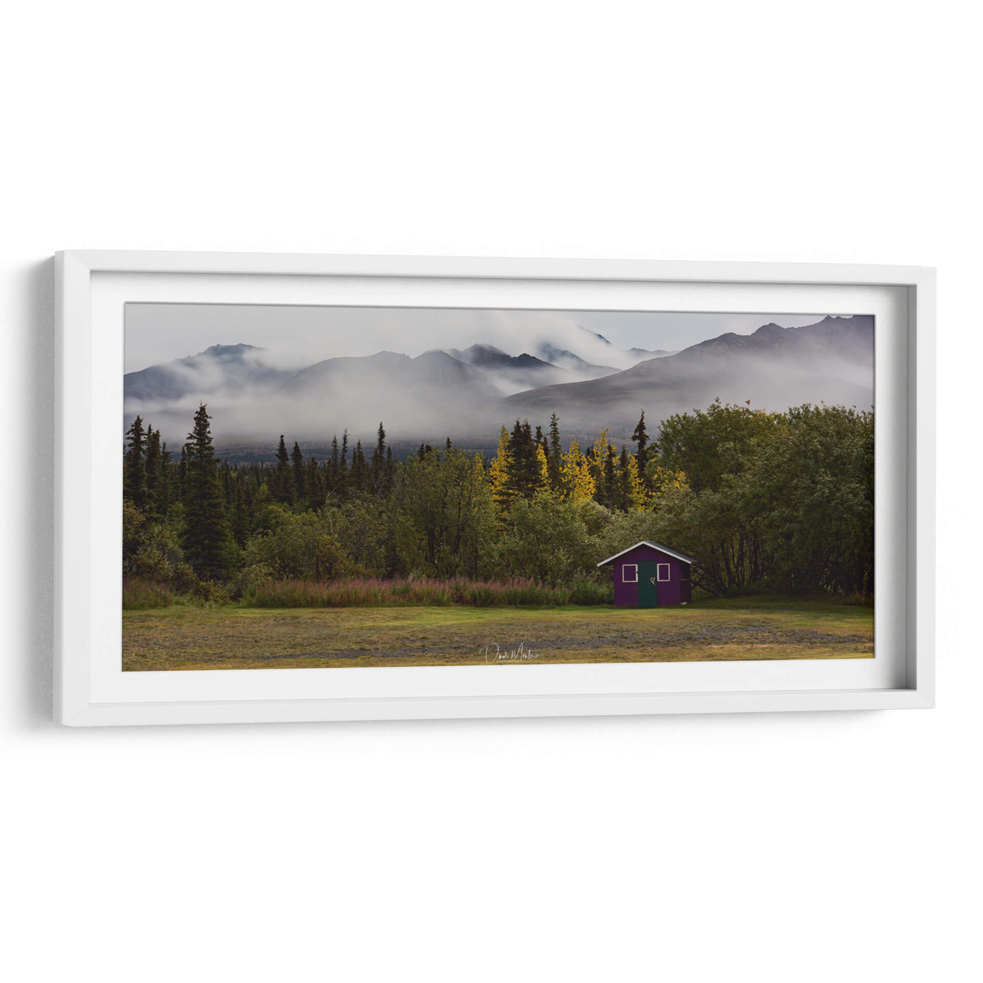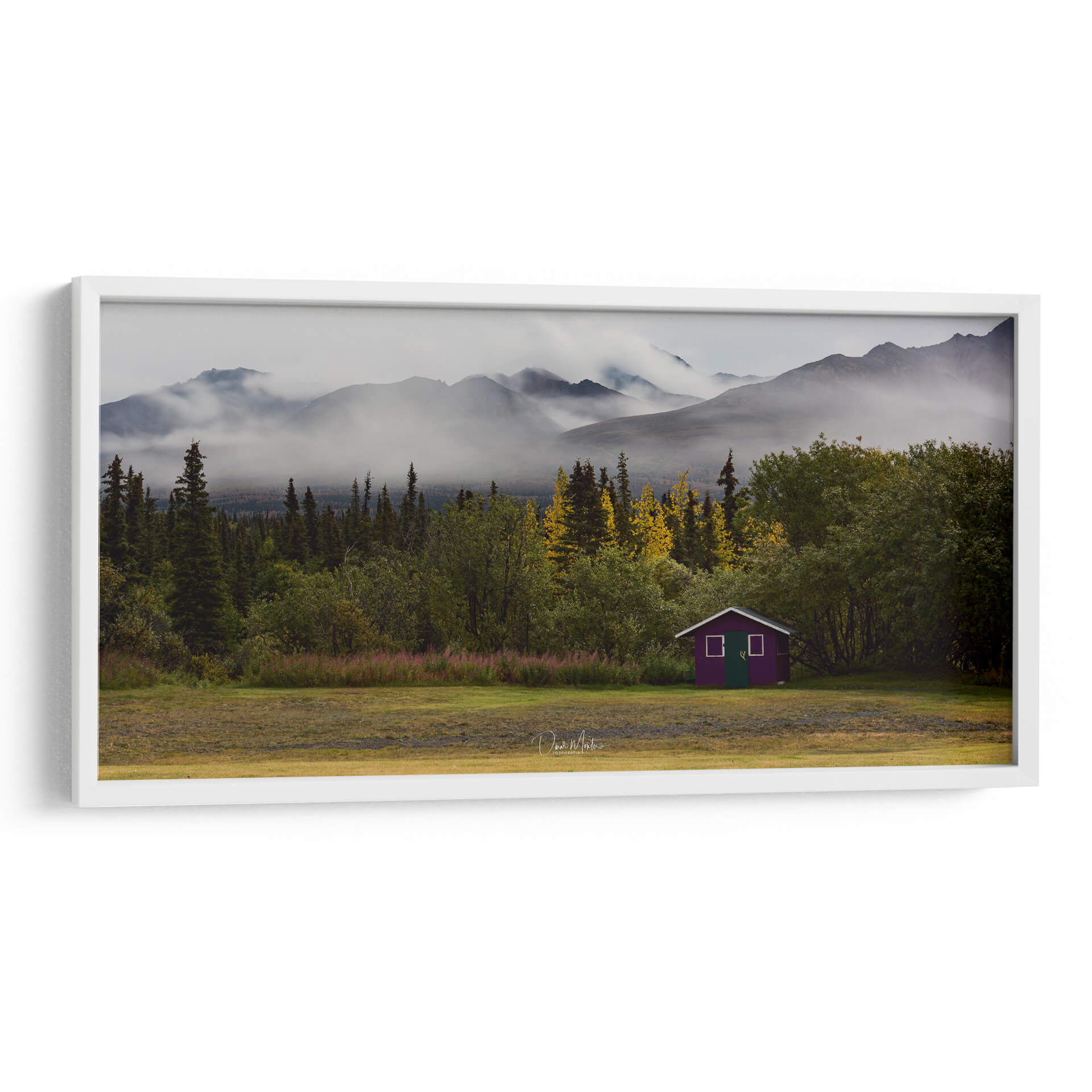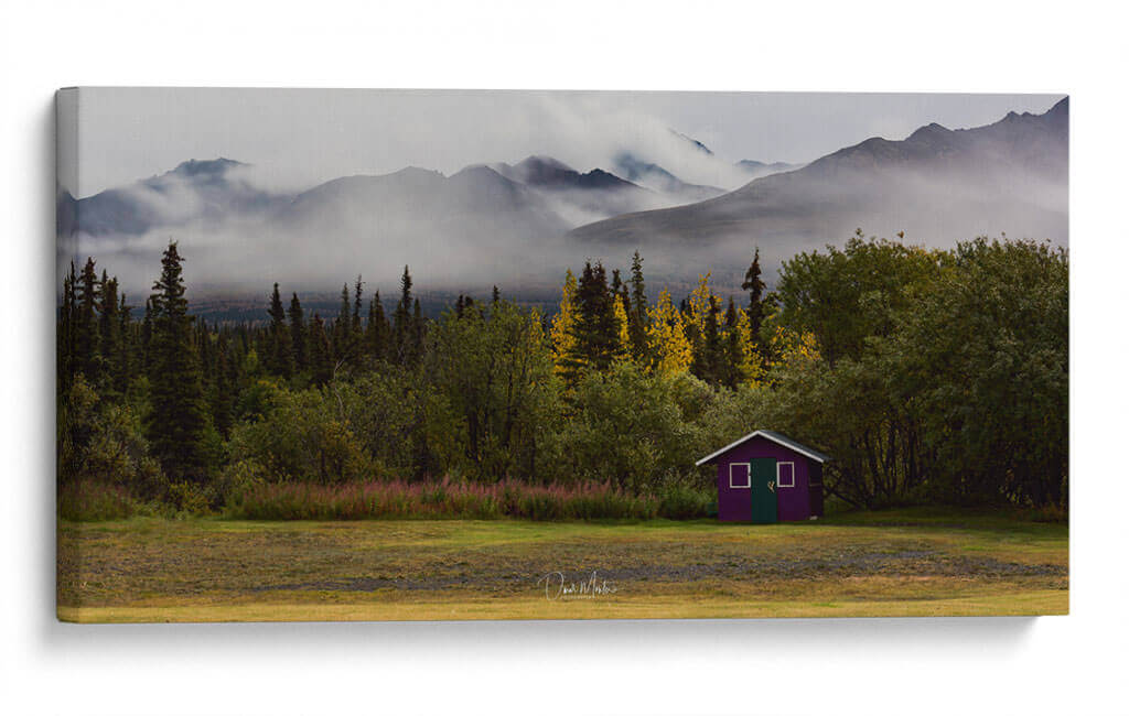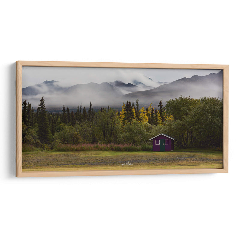 Captura la majestuosidad indómita de Alaska con "Alaska Majestic Heli Ski", una obra de Omar Montero que te transporta a paisajes de ensueño. Este cuadro decorativo presenta una vista envolvente de imponentes montañas cubiertas por una neblina etérea, creando una atmósfera de misterio y serenidad. En primer plano, un denso bosque de coníferas y árboles de hoja caduca en tonos otoñales se extiende hasta un prado abierto. El punto focal vibrante es una pequeña cabaña de color púrpura, un toque inesperado de color que contrasta armoniosamente con la paleta natural de verdes, grises y ocres. La composición, con la profundidad que otorgan las capas de montañas y vegetación, invita a la contemplación y la aventura. Es una pieza ideal para aquellos que buscan añadir un toque de naturaleza salvaje y evocadora a su hogar u oficina. Imagina este lienzo transformando tu salón en un santuario de paz o tu estudio en un refugio inspirador. La obra de arte transmite una sensación de tranquilidad profunda, el silencio de la naturaleza y la belleza cruda de un paisaje remoto, perfecto para crear un ambiente de calma y reflexión en cualquier espacio decorativo.