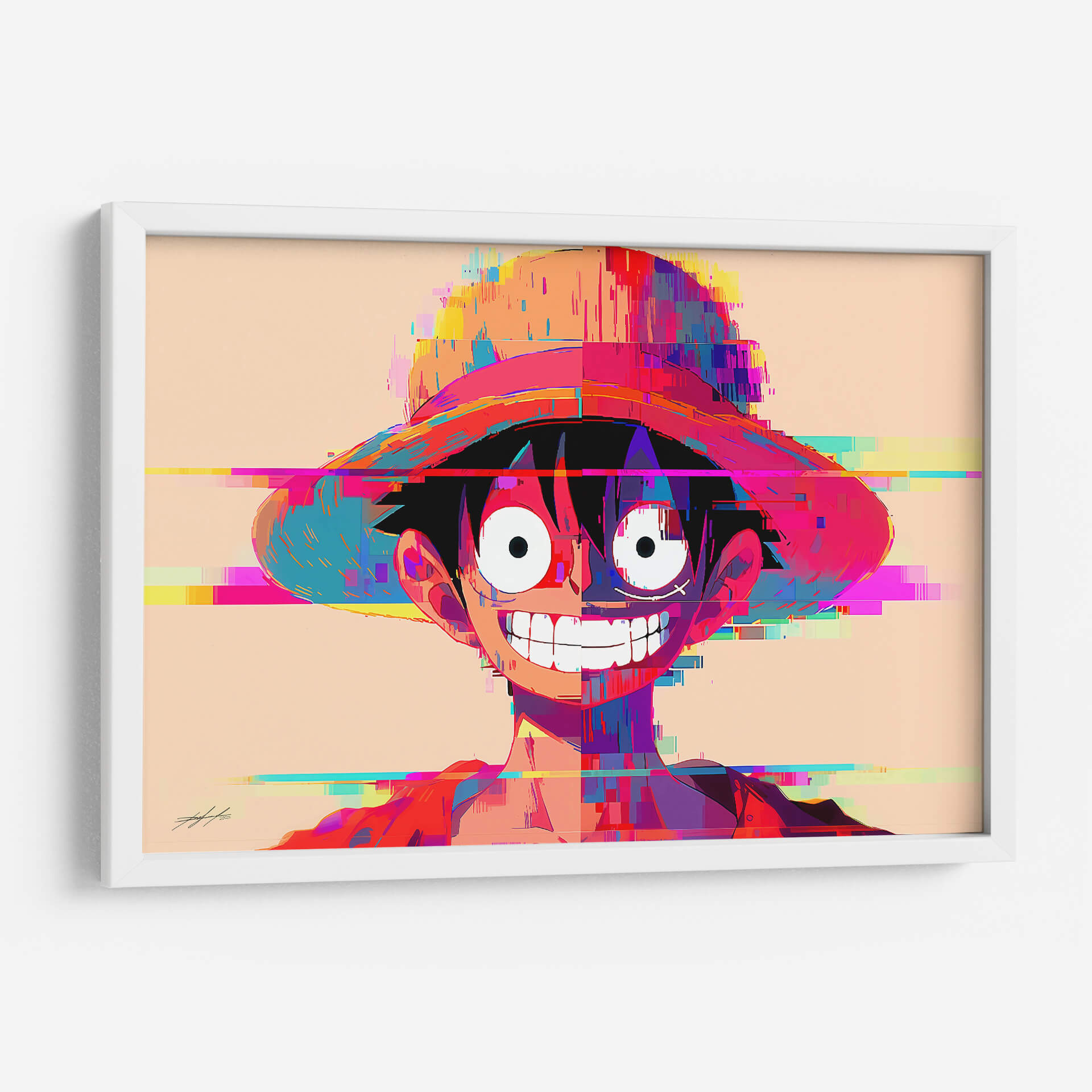 Sumérgete en el vibrante mundo de "Retrowave - Luffy" de DeLaVegaGaming, una obra de arte digital que redefine el retrato contemporáneo. Esta pieza cautiva con su audaz interpretación del personaje, fusionando elementos icónicos con una estética de "glitch art" y "retrowave" que irradia energía y nostalgia. La composición se centra en un primer plano expresivo, donde la sonrisa icónica y la mirada penetrante se desdibujan y reconstruyen a través de bloques de color vibrantes y líneas digitales. La paleta de colores, dominada por tonos cálidos de naranja y rosa, se ve contrastada con destellos de azul eléctrico, amarillo y púrpura, creando una sensación de dinamismo y profundidad. El estilo, que bebe de la cultura pop y la estética de los videojuegos, lo convierte en una pieza ideal para espacios juveniles, salas de estar modernas o estudios creativos. "Retrowave - Luffy" no es solo un cuadro decorativo; es una declaración de estilo, una explosión de color y una invitación a celebrar la cultura pop con un toque vanguardista. Su diseño único asegura que se convierta en el punto focal de cualquier habitación, aportando personalidad y un aire de originalidad inconfundible a tu decoración.