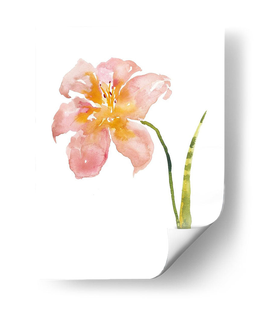 Sumérgete en la delicadeza y el encanto de "Acuarela Jardín Vi", una obra de arte que captura la esencia efímera de la naturaleza con una técnica de acuarela suave y evocadora. Esta pieza presenta una flor solitaria en tonos de rosa pálido y naranja vibrante, con detalles sutiles en amarillo que emanan desde su centro. El tallo verde, pintado con pinceladas sueltas y fluidas, añade un contraste natural y orgánico a la composición. El estilo, que recuerda al impresionismo por su tratamiento de la luz y el color, evoca una sensación de paz y serenidad, perfecta para transformar cualquier espacio. Las delicadas transiciones de color y la transparencia característica de la acuarela crean una atmósfera etérea y soñadora. Este cuadro decorativo es ideal para quienes buscan añadir un toque de frescura y elegancia botánica a su hogar u oficina. Imagina cómo este cuadro podría iluminar un dormitorio, aportar calma a un estudio o ser un acento sutil pero significativo en una sala de estar. "Acuarela Jardín Vi" no es solo una representación floral, sino una invitación a la contemplación y a la apreciación de la belleza en su forma más pura y artística, convirtiéndose en un punto focal inspirador y relajante.