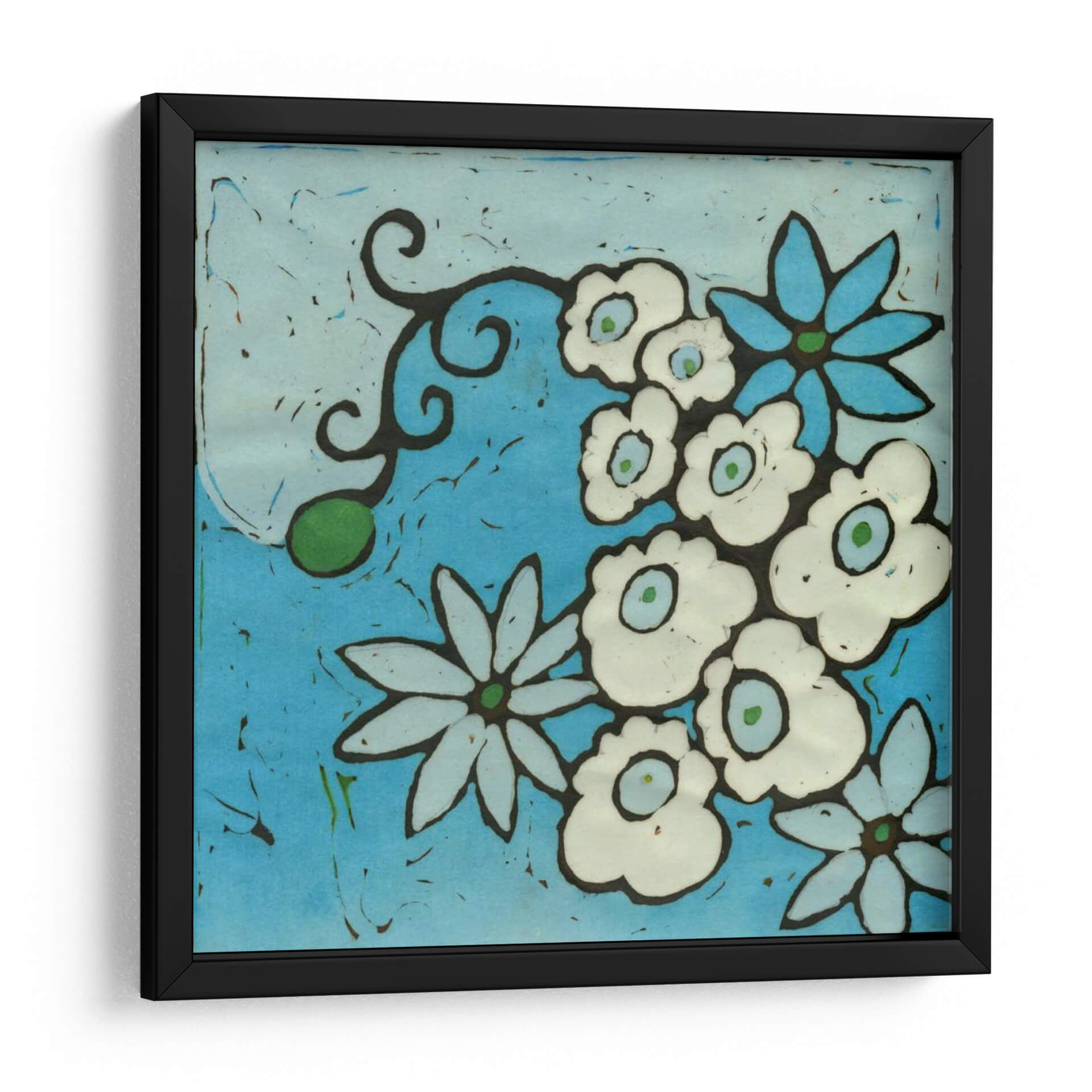 Sumérgete en la serenidad botánica con "Aqua Batik Botanical Iv", una obra de arte contemporáneo de Andrea Davis que evoca la delicadeza de la naturaleza en un vibrante lienzo. Esta pieza presenta una exquisita composición floral sobre un fondo azul profundo, con toques de blanco y verde que añaden un aire de frescura y vitalidad. Las formas orgánicas de las flores, ejecutadas con un estilo que recuerda a las técnicas de batik, crean un patrón visual cautivador. Los contornos negros definen cada pétalo y hoja, aportando una estructura gráfica que contrasta sutilmente con la suavidad de los colores. La atmósfera general es de calma y tranquilidad, perfecta para transformar cualquier espacio en un oasis de paz. Este cuadro decorativo es ideal para añadir un toque de color y sofisticación a salas de estar, dormitorios o estudios, aportando una conexión refrescante con el mundo natural. La versatilidad de su diseño lo convierte en una adición perfecta para interiores modernos, bohemios o escandinavos, invitando a la contemplación y al disfrute estético.