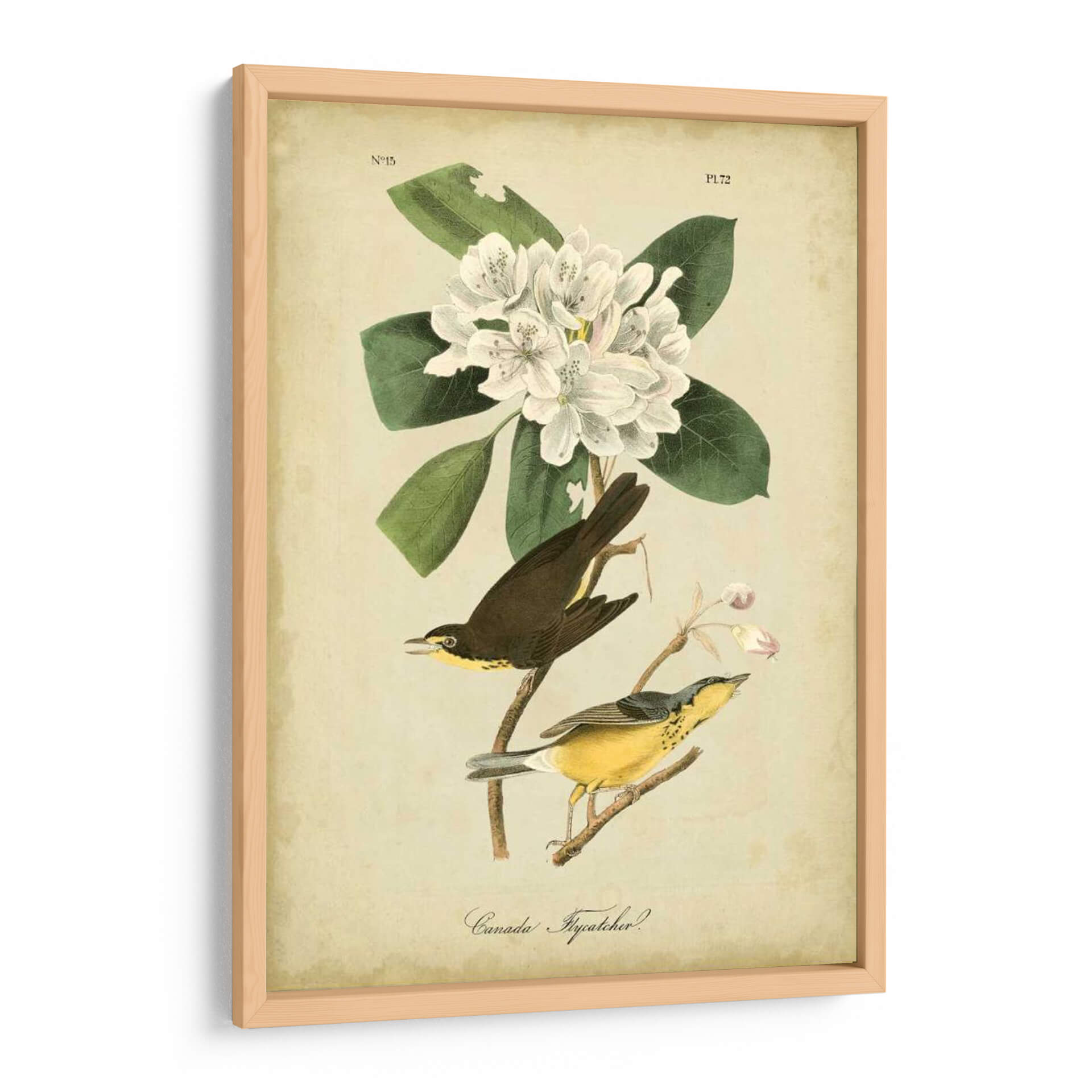 Descubre la exquisita obra 'Audubon Canada Flycatcher' de John James Audubon, una pieza que captura la delicadeza de la naturaleza con un estilo clásico y atemporal. Este cuadro decorativo presenta dos aves posadas sobre ramas, enmarcadas por el vibrante detalle de una flor de rododendro en plena floración. La paleta de colores, dominada por tonos tierra, verdes profundos y acentos de blanco cremoso, crea una atmósfera de serenidad y elegancia. La composición, equilibrada y detallada, invita a la contemplación, mientras que el estilo de ilustración científica aporta un toque de autenticidad y valor histórico. Ideal para salones, estudios o cualquier espacio que busque una conexión con la belleza natural y un aire de sofisticación vintage. Transforma tu hogar en una galería personal con esta reproducción fiel que evoca la tranquilidad del mundo natural y celebra la maestría artística de Audubon. Perfecta para amantes de la ornitología, la botánica y el arte clásico que desean añadir un toque de distinción a su decoración.