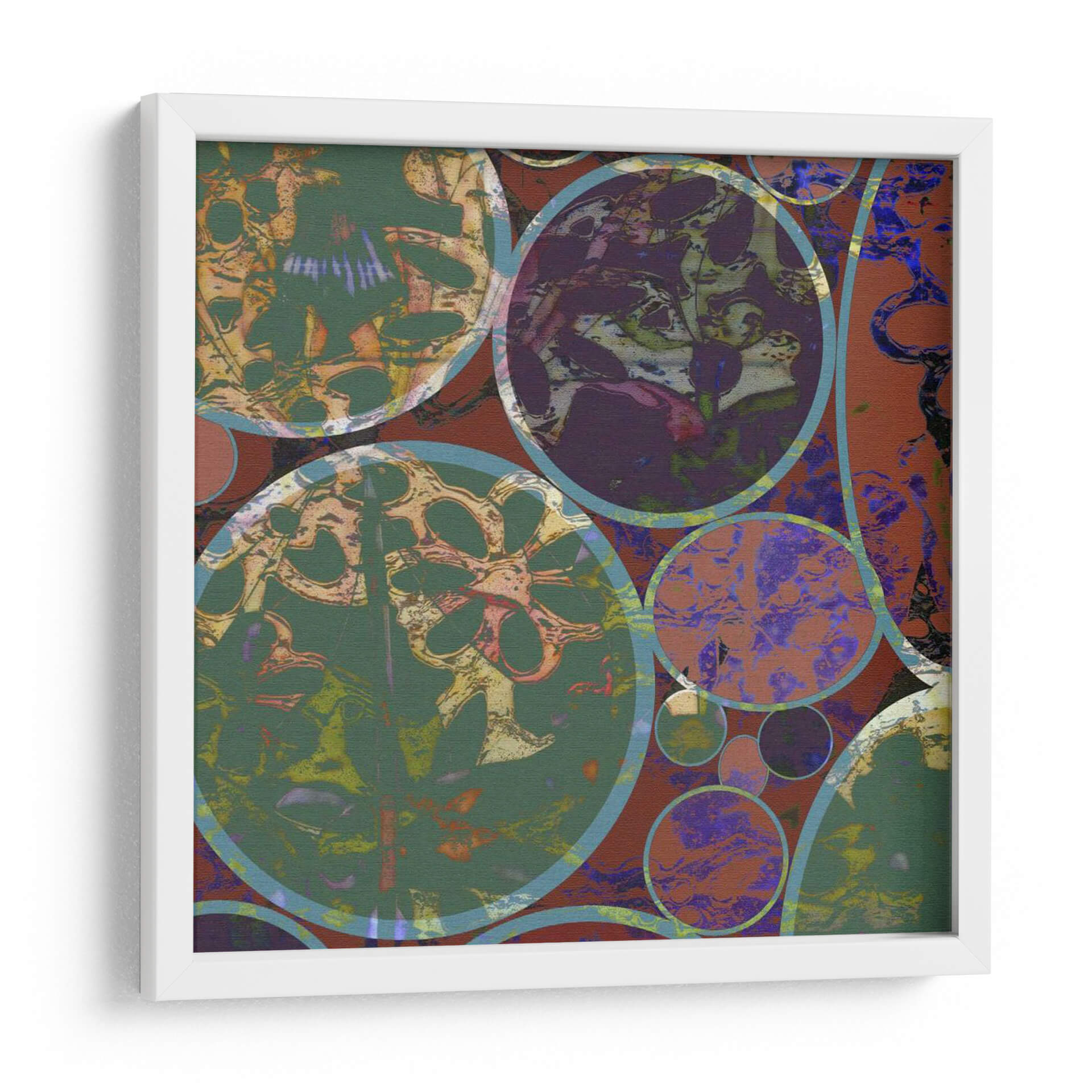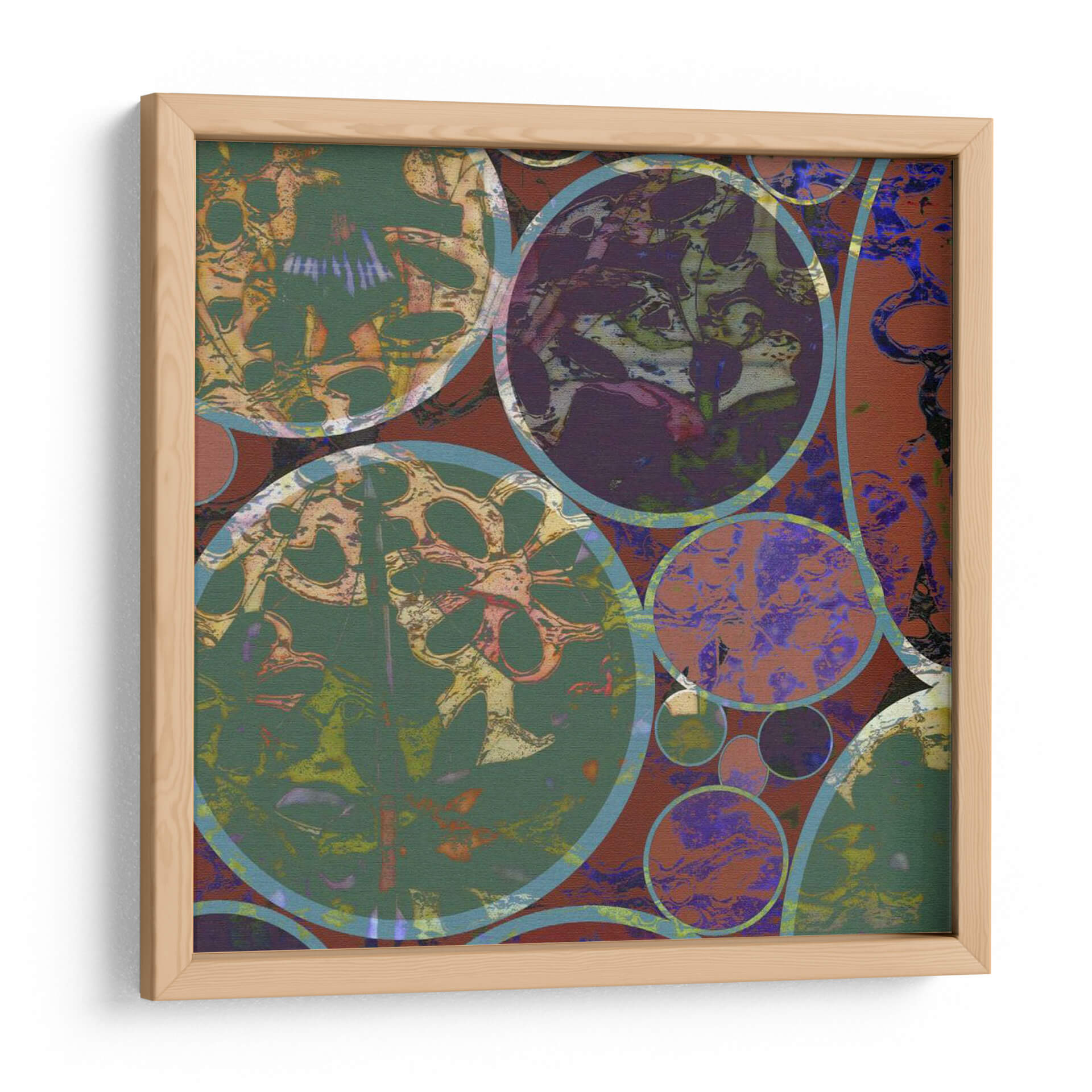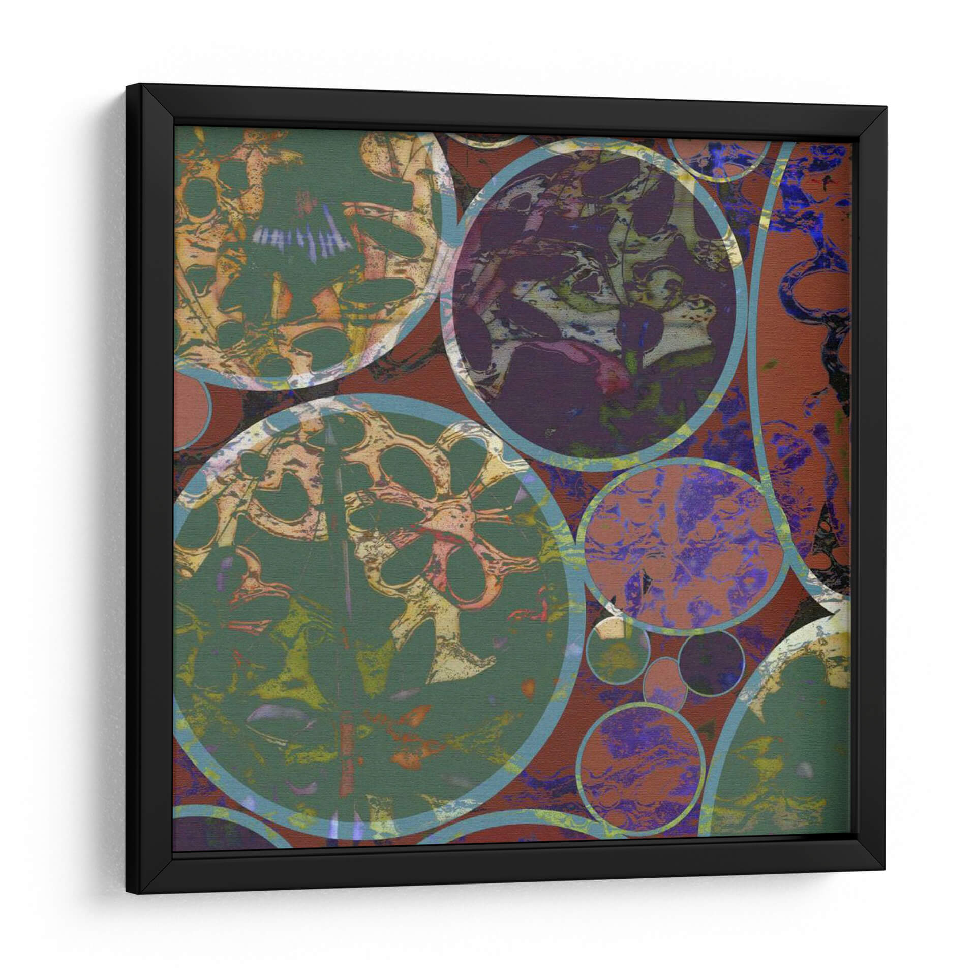 Sumérgete en la fascinante composición abstracta de "B-Jeweled Decó I", una obra de arte contemporáneo que evoca una sensación de misterio y sofisticación. Las formas circulares superpuestas y texturizadas, reminiscentes de vidrieras o mosaicos intrincados, invitan a la contemplación. La paleta de colores, dominada por profundos tonos verdes, morados y terracotas, salpicada de toques de azul y amarillo pálido, crea una atmósfera rica y envolvente. Los elementos orgánicos y patrones que se vislumbran dentro de cada círculo añaden una capa de profundidad y complejidad, sugiriendo una conexión con la naturaleza o la arquitectura. Este cuadro decorativo abstracto es ideal para añadir un toque de elegancia moderna y un punto focal intrigante a cualquier espacio, ya sea una sala de estar, un estudio o una oficina. Su diseño único y su vibrante interacción de colores lo convierten en una pieza de conversación, perfecta para aquellos que buscan arte que desafíe la percepción y enriquezca su entorno con una estética distintiva y audaz. Descubre la belleza en la abstracción.