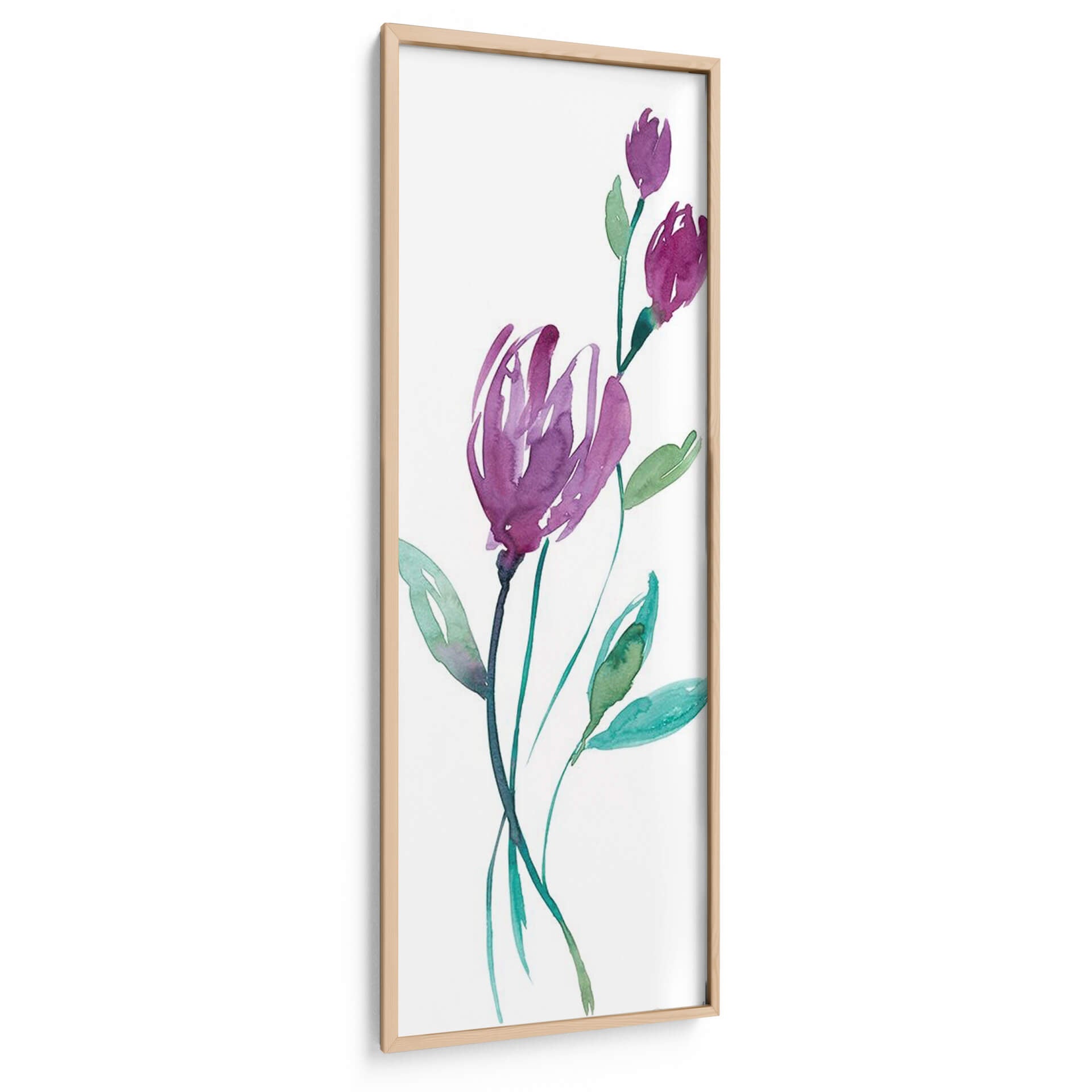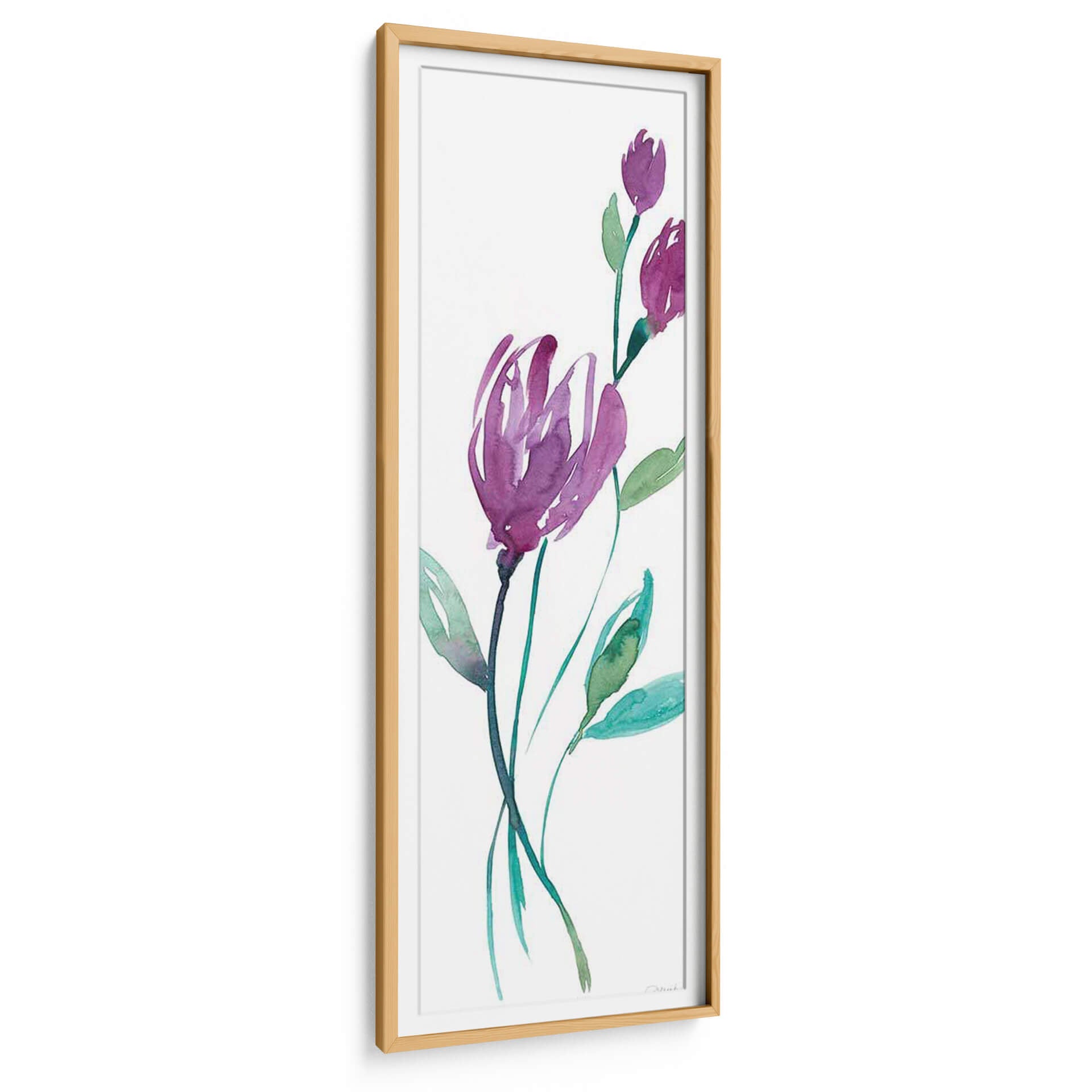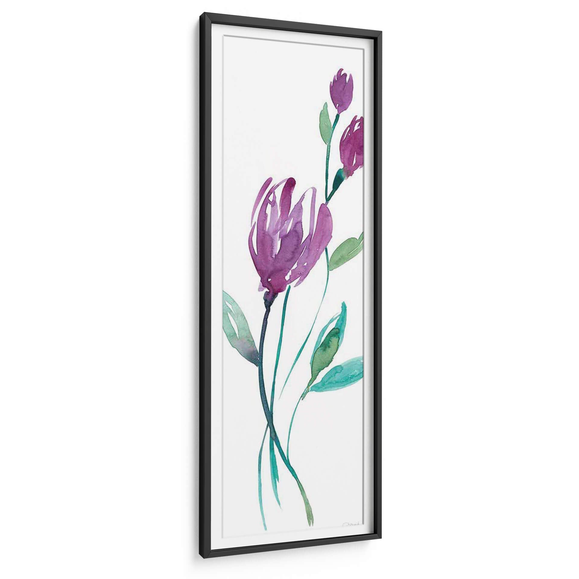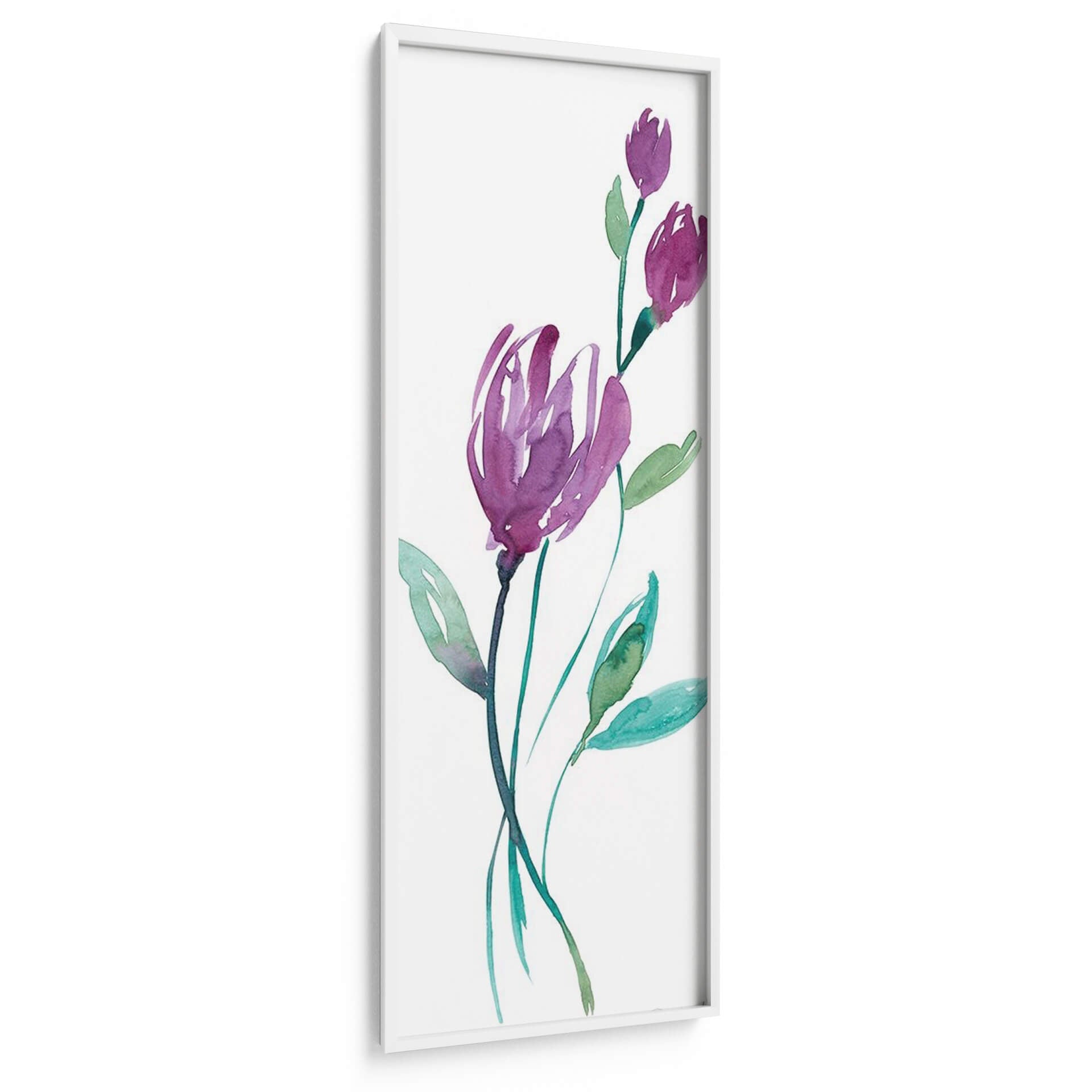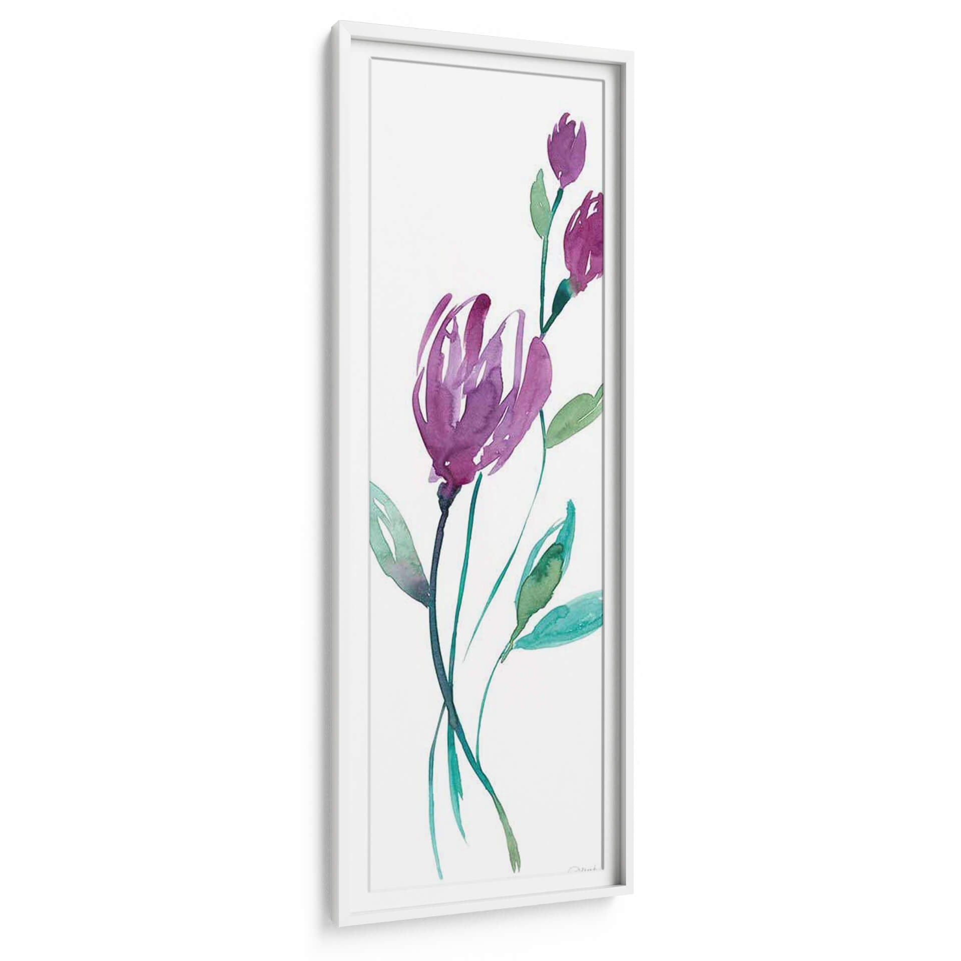 Sumérgete en la delicadeza floral con este exquisito cuadro decorativo, 'Bailando La Berenjena II', de Jennifer Goldberger. Esta obra captura la esencia etérea de las flores en una vibrante acuarela, con tonos púrpura y verdes que danzan sobre un fondo blanco luminoso. Los trazos fluidos y la técnica impresionista evocan una sensación de movimiento y ligereza, invitando a la contemplación y la serenidad. Ideal para espacios que buscan un toque de naturaleza y elegancia sutil, este cuadro es perfecto para añadir un acento de color y sofisticación a salones, dormitorios o estudios. Su composición vertical y estilo contemporáneo lo convierten en una pieza versátil que complementa tanto decoraciones modernas como clásicas. Deja que la belleza efímera de estas flores transforme tu hogar en un oasis de calma y estilo.