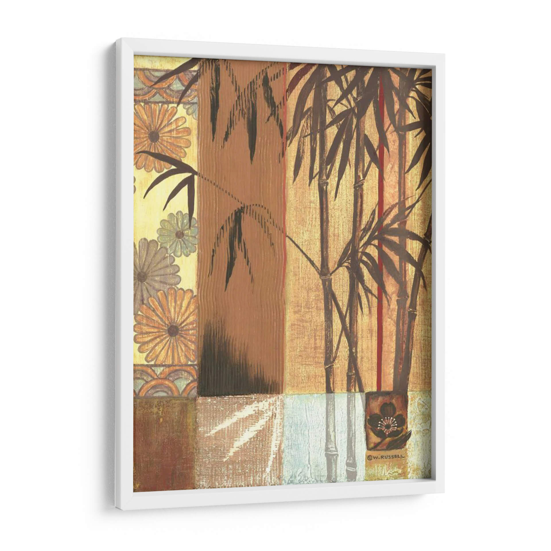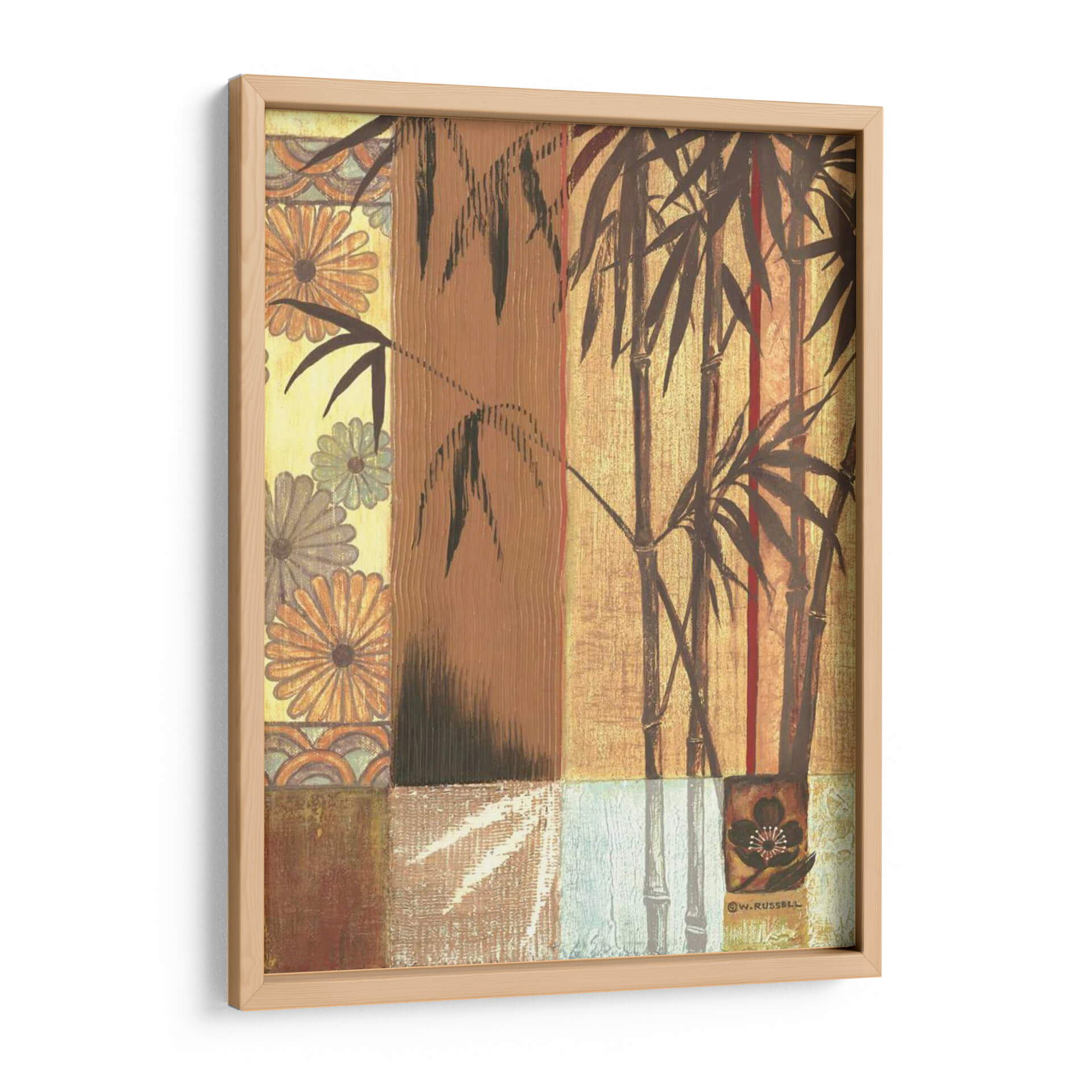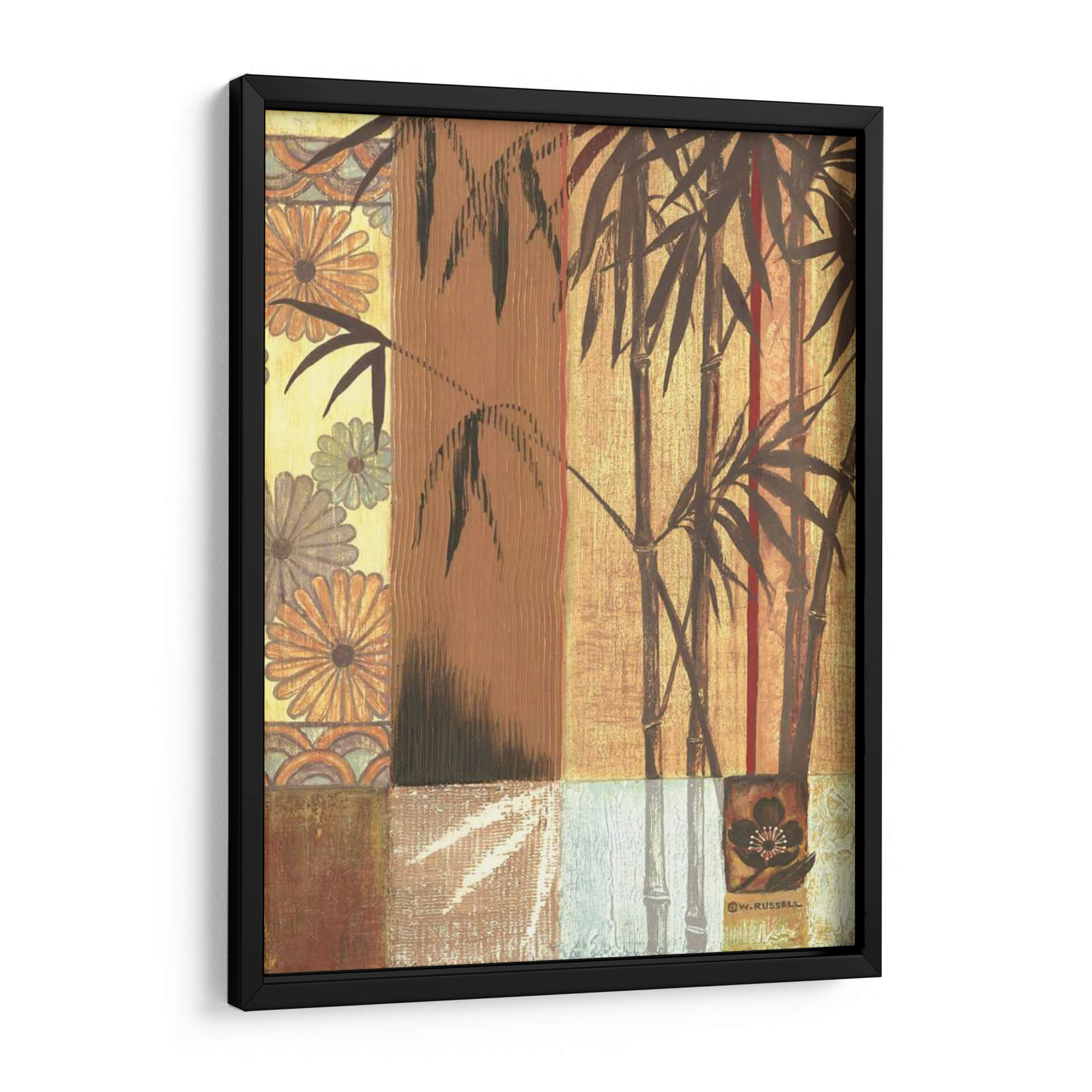 Embellece tu espacio con "Bambú Asiático", una cautivadora obra de arte contemporáneo de Wendy Russell. Este cuadro decorativo te transporta a un oasis de tranquilidad con sus delicadas cañas de bambú que se alzan sobre un fondo texturizado y patchwork de patrones sutiles. La paleta de colores, dominada por tonos tierra, ocres y toques de rojo vibrante, crea una atmósfera cálida y serena, perfecta para infundir paz en tu hogar u oficina. Los elementos florales integrados en el diseño añaden un toque de sofisticación y un guiño a la estética oriental. La composición, que juega con verticales y horizontales, y la técnica que evoca el arte tradicional, hacen de esta pieza un punto focal armonioso. Ideal para salones modernos, dormitorios que buscan serenidad, o como un toque de calma en un espacio de trabajo. "Bambú Asiático" no es solo una decoración, es una invitación a la contemplación y al bienestar, un lienzo que combina la belleza de la naturaleza con un estilo artístico único y contemporáneo, diseñado para resonar con tu sentido de la estética y la calma. Añade esta pieza a tu colección y transforma tu entorno en un santuario de estilo y serenidad.