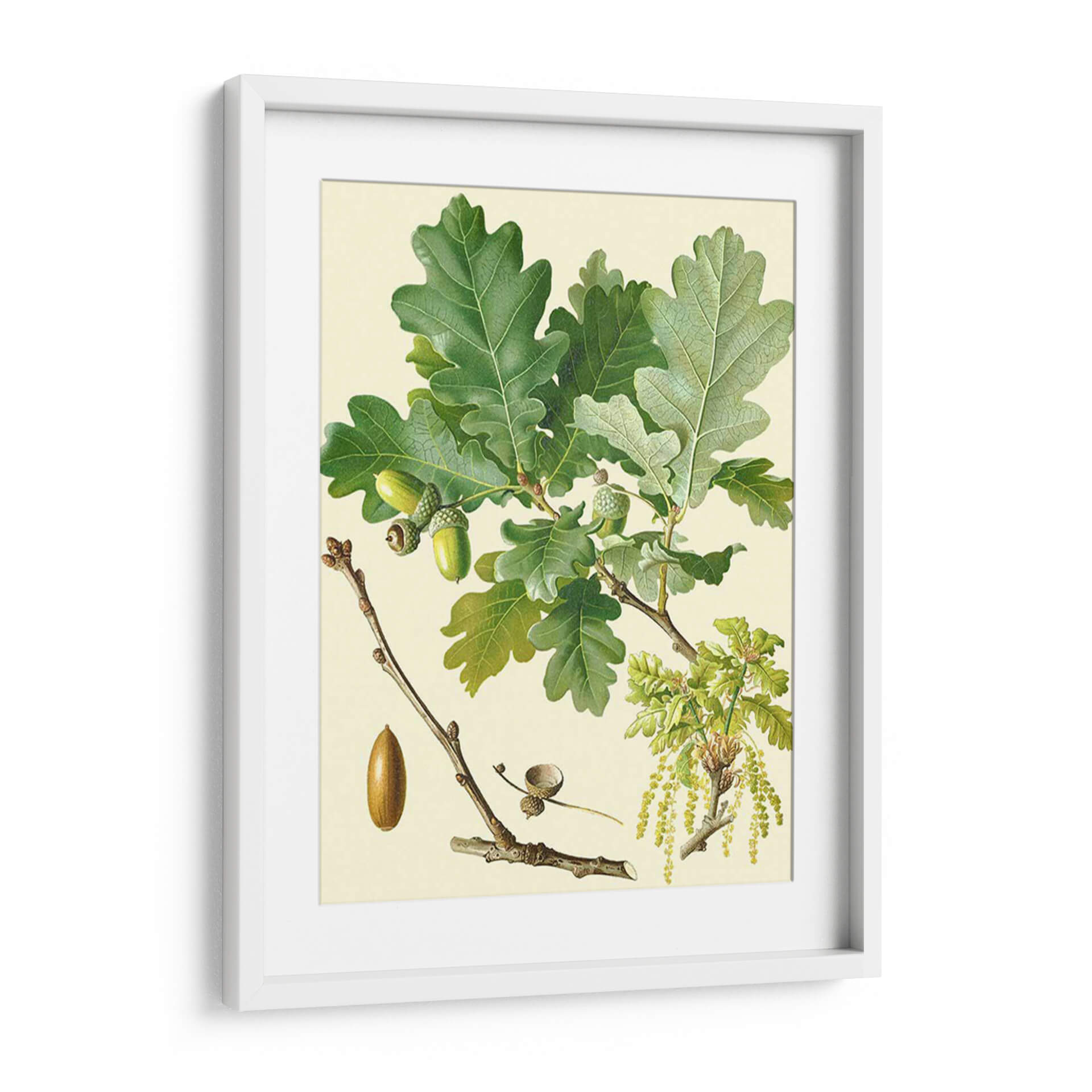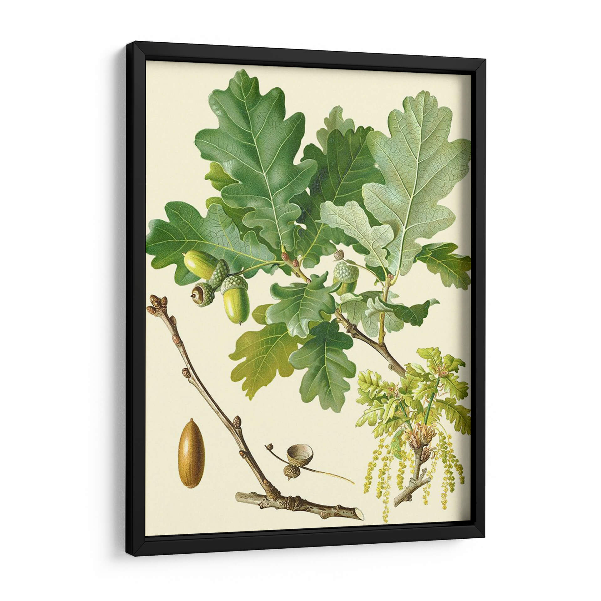 Embellece tu hogar con la serena belleza de 'Bellotas y Follaje II', una obra de arte de Vision Studio que captura la esencia botánica del roble con un detalle exquisito. Esta pieza, presentada en un estilo que recuerda a las ilustraciones científicas clásicas pero con un toque contemporáneo, ofrece una inmersión visual en los ciclos naturales. Las hojas verdes vibrantes y las bellotas en diferentes etapas de desarrollo se despliegan sobre un fondo suave y neutro, permitiendo que la riqueza de los tonos naturales sea la protagonista. Cada detalle, desde la textura de las hojas hasta la delicadeza de las ramas, está representado con una precisión que invita a la contemplación. 'Bellotas y Follaje II' es ideal para añadir un toque de naturaleza y sofisticación a cualquier espacio, ya sea una sala de estar, un estudio o una oficina. Su composición equilibrada y su paleta de colores terrosos y verdes la convierten en una adición versátil que complementa tanto decoraciones rústicas como modernas, aportando una sensación de calma y conexión con el entorno natural. Descubre la armonía de la naturaleza plasmada en un cuadro decorativo que inspirará tranquilidad y admiración.