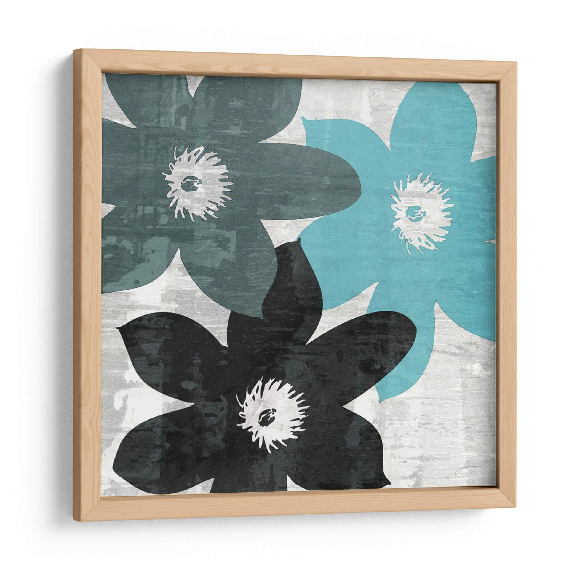 Transforma tu espacio con la cautivadora obra de arte "Bloomer Squares Xv" de James Burghardt. Este cuadro decorativo abstracto presenta un trío de flores estilizadas en tonos profundos de azul verdoso, un vibrante azul turquesa y un audaz negro, todas ellas emergiendo de un fondo texturizado en gris claro. La composición, con sus formas florales audaces y superpuestas, crea una sensación de profundidad y dinamismo, mientras que la paleta de colores contemporánea aporta un toque de sofisticación moderna. Ideal para aquellos que buscan añadir un acento de color y personalidad a su hogar u oficina, esta pieza abstracta invita a la contemplación y añade un aire de serenidad moderna a cualquier ambiente. Su estilo versátil la hace perfecta para salas de estar, dormitorios o estudios que buscan un punto focal artístico y una conexión con la naturaleza reinterpretada. "Bloomer Squares Xv" es más que una simple decoración; es una expresión de estilo y una invitación a la belleza abstracta.