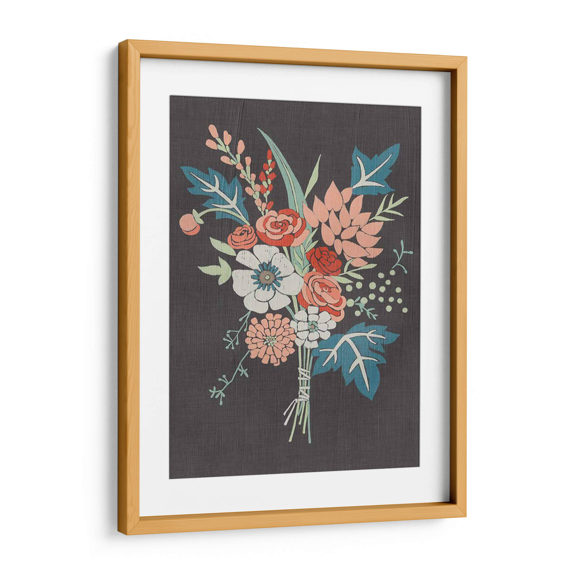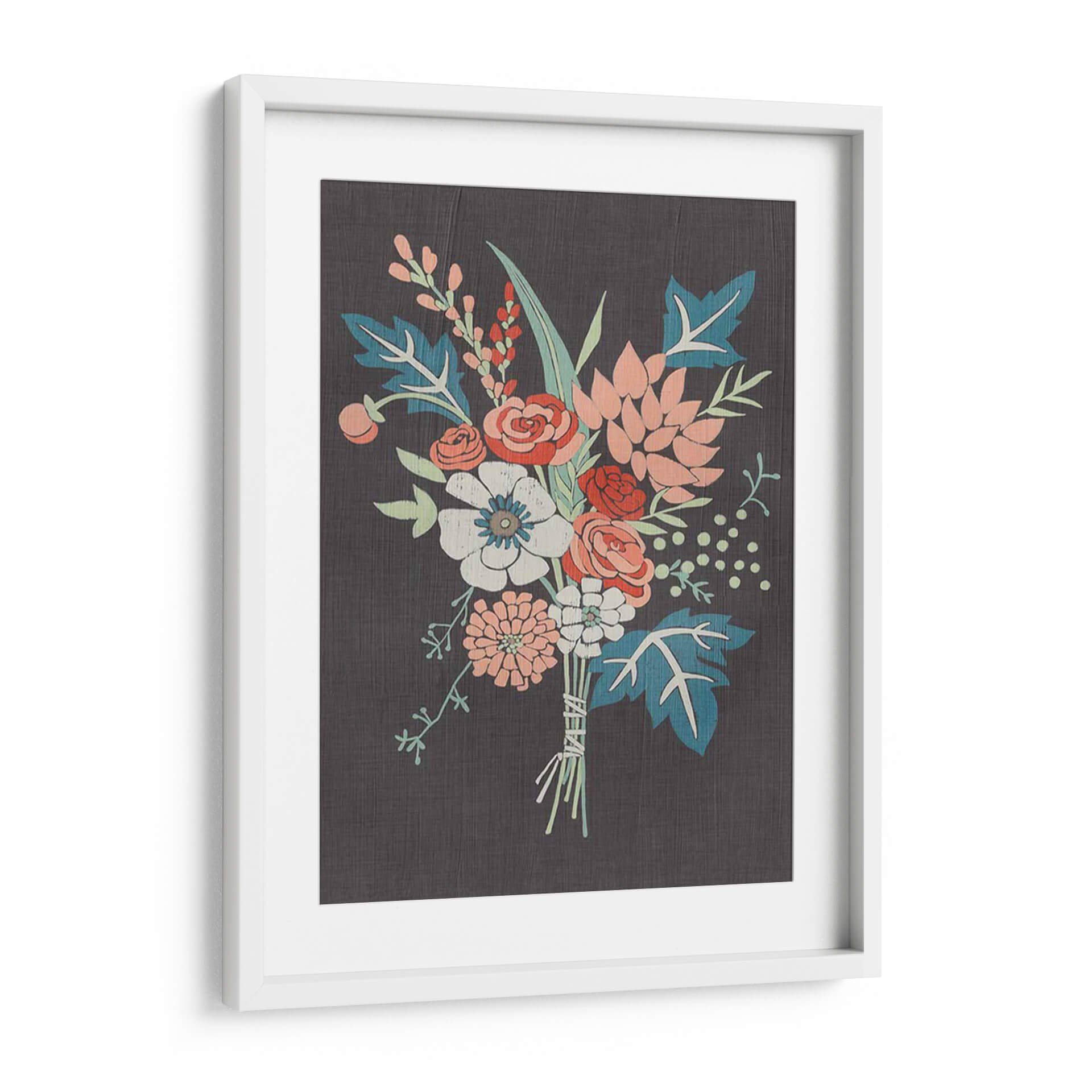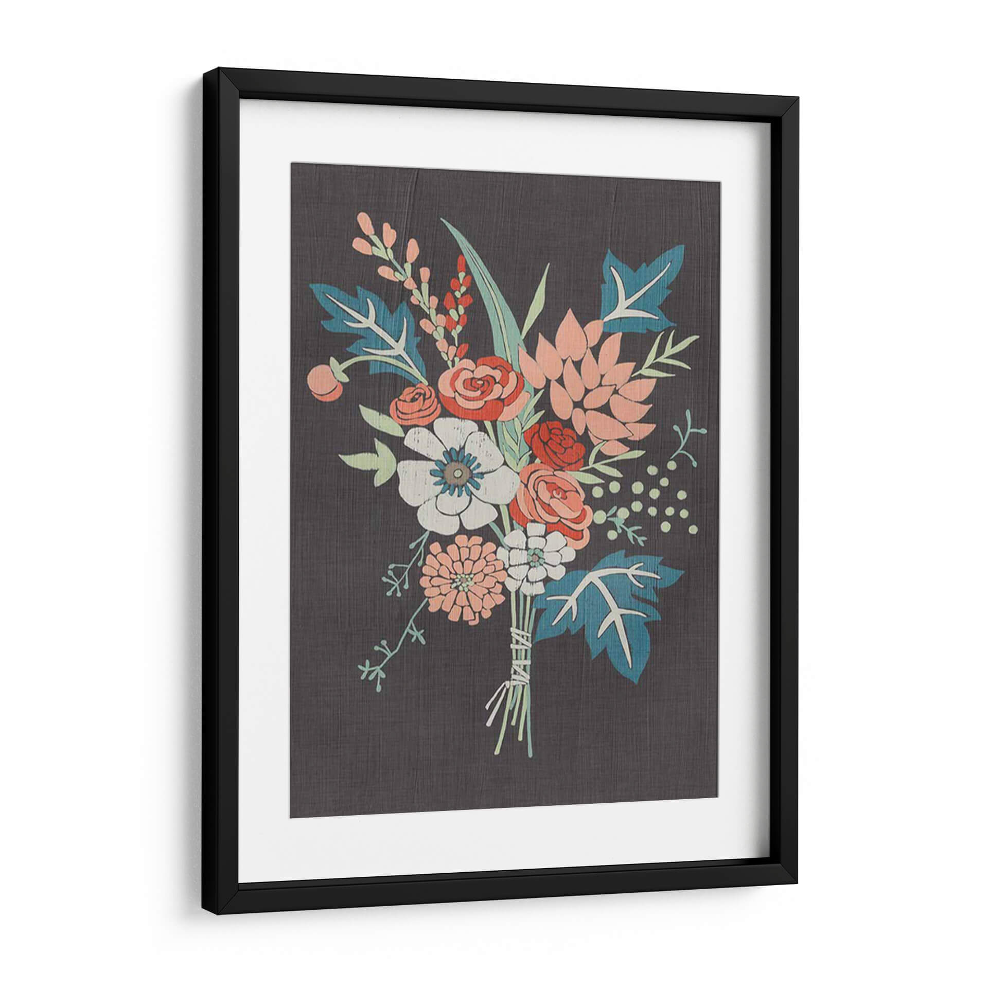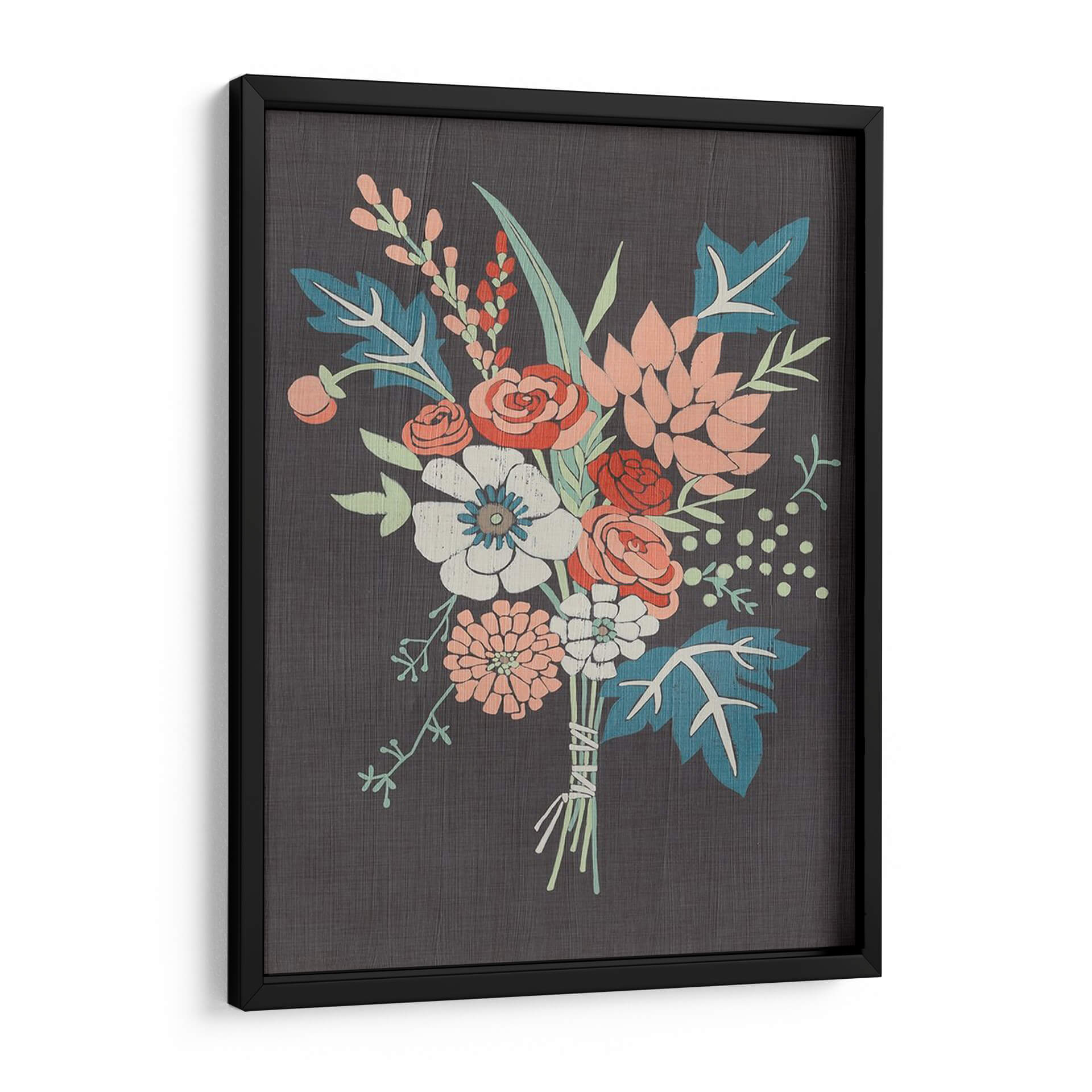 Embellece tu hogar con el cuadro decorativo 'Bouquet De Coral I' de Chariklia Zarris, una obra que captura la delicadeza de la naturaleza con un toque contemporáneo. Este lienzo presenta un vibrante arreglo floral sobre un fondo oscuro y texturizado, creando un contraste visual cautivador. Los tonos coral, blanco roto, azul verdoso y toques de rojo se entrelazan armoniosamente, evocando una sensación de frescura y vitalidad. La composición, centrada en un exuberante ramo atado con cuerdas rústicas, invita a la contemplación y aporta un aire de sofisticación orgánica a cualquier espacio. Ideal para salones modernos, dormitorios serenos o estudios creativos, este cuadro decorativo es perfecto para quienes buscan añadir un elemento de belleza natural y estilo artístico a su decoración. Su diseño versátil se integra a la perfección en diversas paletas de colores, convirtiéndose en un punto focal que inspira calma y elegancia. Descubre cómo 'Bouquet De Coral I' puede transformar tu ambiente, aportando una dosis de color y arte que perdura.