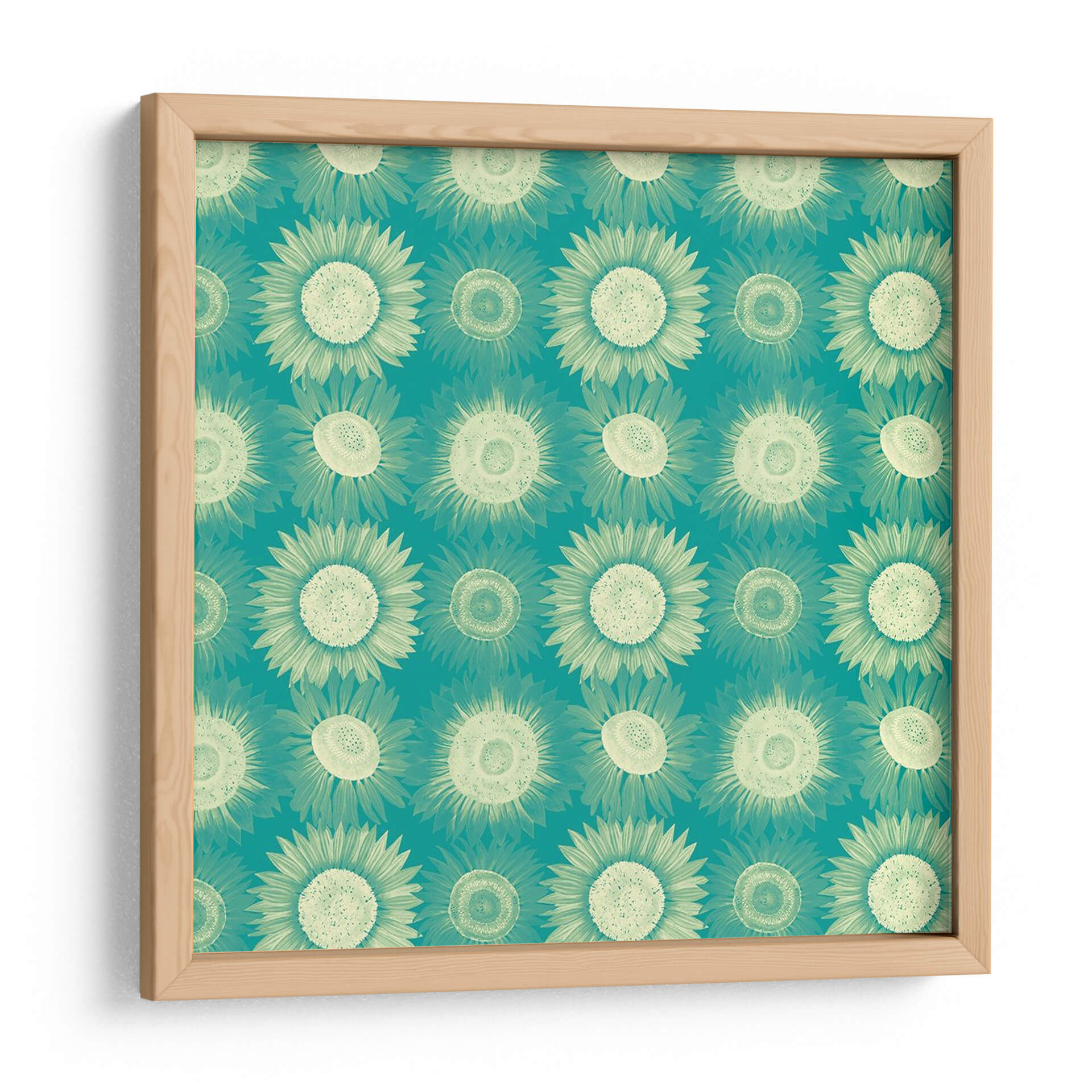 Sumérgete en la belleza botánica de "Colección De Flora De Granja F", una obra de arte contemporáneo que captura la esencia de los girasoles en un patrón encantador. Los vibrantes tonos turquesa del fondo contrastan armoniosamente con las delicadas flores de color crema, creando una atmósfera de alegría y vitalidad. Cada girasol, representado con un detalle exquisito, parece irradiar luz propia, aportando una sensación de calidez y optimismo. El estilo artístico, que combina elementos de ilustración botánica con un toque moderno y repetitivo, convierte a esta pieza en un elemento decorativo versátil, perfecto para infundir energía y un toque de naturaleza en cualquier espacio. Ideal para salas de estar, comedores o incluso oficinas, este cuadro decorativo invita a la contemplación y al disfrute de la belleza natural. Su composición rítmica y sus colores equilibrados la hacen una adición sofisticada y alegre a cualquier esquema de decoración, evocando la frescura de un campo de girasoles bajo un cielo brillante. Añade un toque de color y estilo a tus paredes con esta pieza única que celebra la exuberancia de la flora.