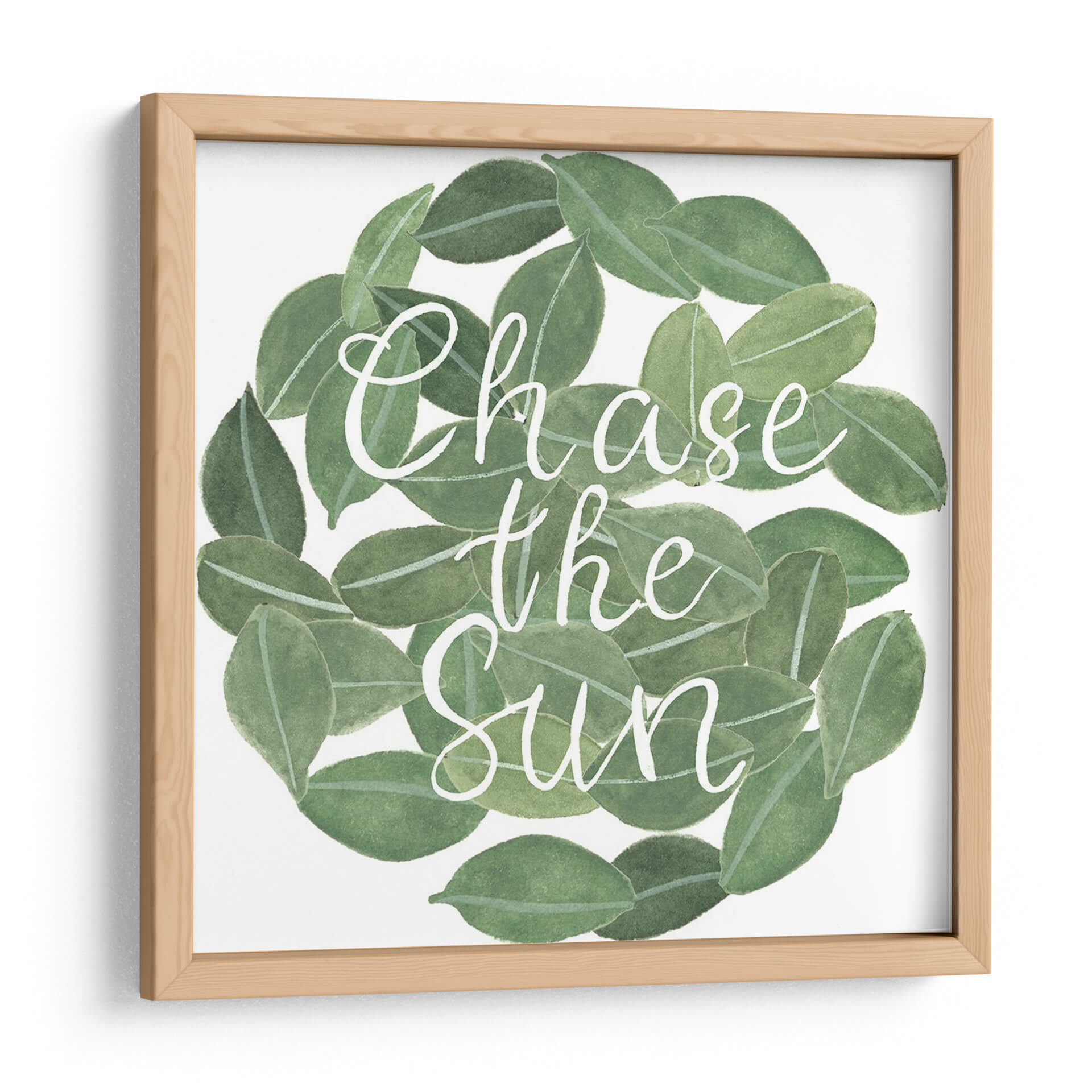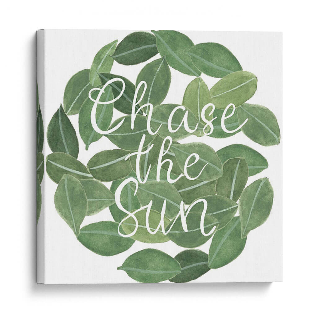 Aporta una dosis de optimismo y naturaleza a tu hogar con el cuadro decorativo "Colección De Mes Flantes C" de Melissa Wang. Esta cautivadora obra presenta una corona circular de hojas verdes, pintadas con una técnica que evoca la delicadeza de la acuarela, sobre un fondo blanco y limpio. La frescura de las tonalidades verdes, que varían entre un verde musgo profundo y un verde más esmeralda, crea una sensación de vitalidad y conexión con el entorno natural. Sobre este vibrante marco vegetal, se despliega un mensaje inspirador en una tipografía de guion elegante y fluida: "Chase the Sun" (Persigue el Sol). Esta combinación de elementos naturales y una cita motivacional convierte a este cuadro en una pieza ideal para infundir energía positiva y serenidad en cualquier espacio. Perfecto para decorar tu sala de estar, dormitorio o incluso un espacio de trabajo, este lienzo es un recordatorio diario para buscar la luz y la alegría. Su estilo contemporáneo y su paleta de colores armoniosa lo convierten en una adición versátil que complementará una variedad de estilos decorativos, desde el bohemio hasta el minimalista moderno. Dale vida a tus paredes con esta obra de arte que celebra la belleza de la naturaleza y el poder de un pensamiento positivo.