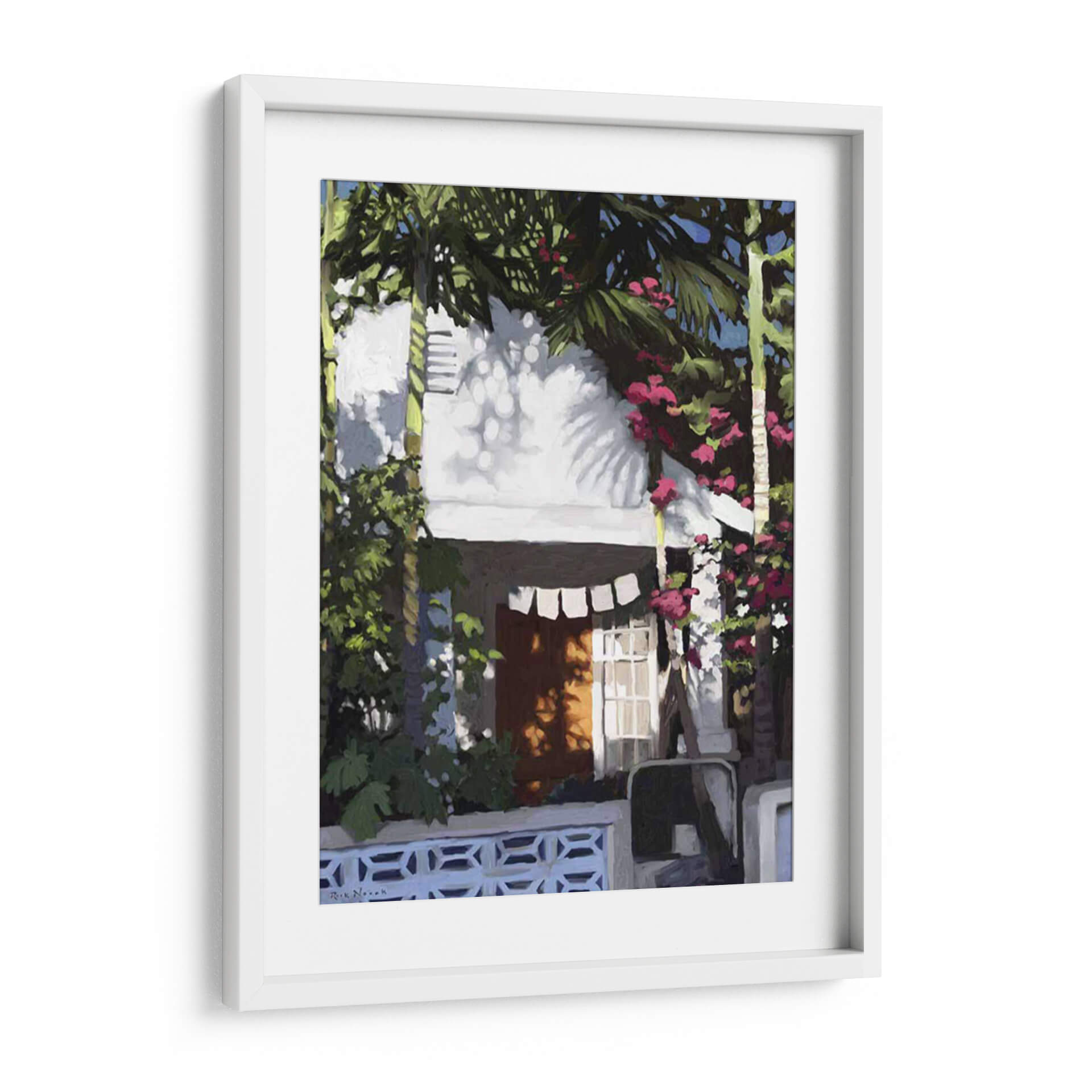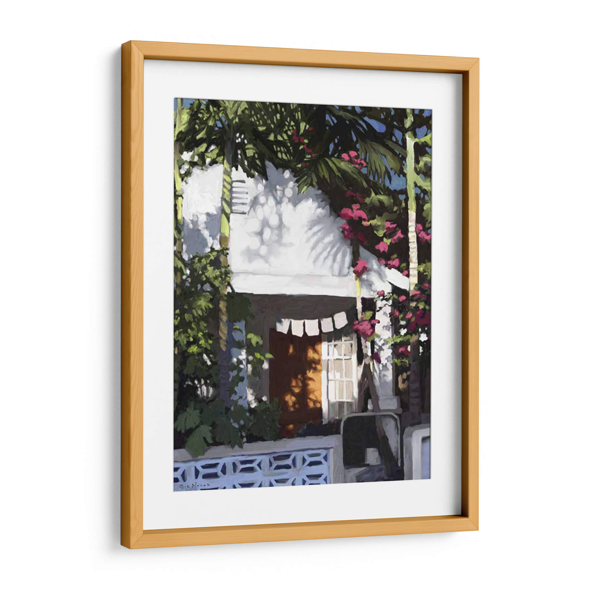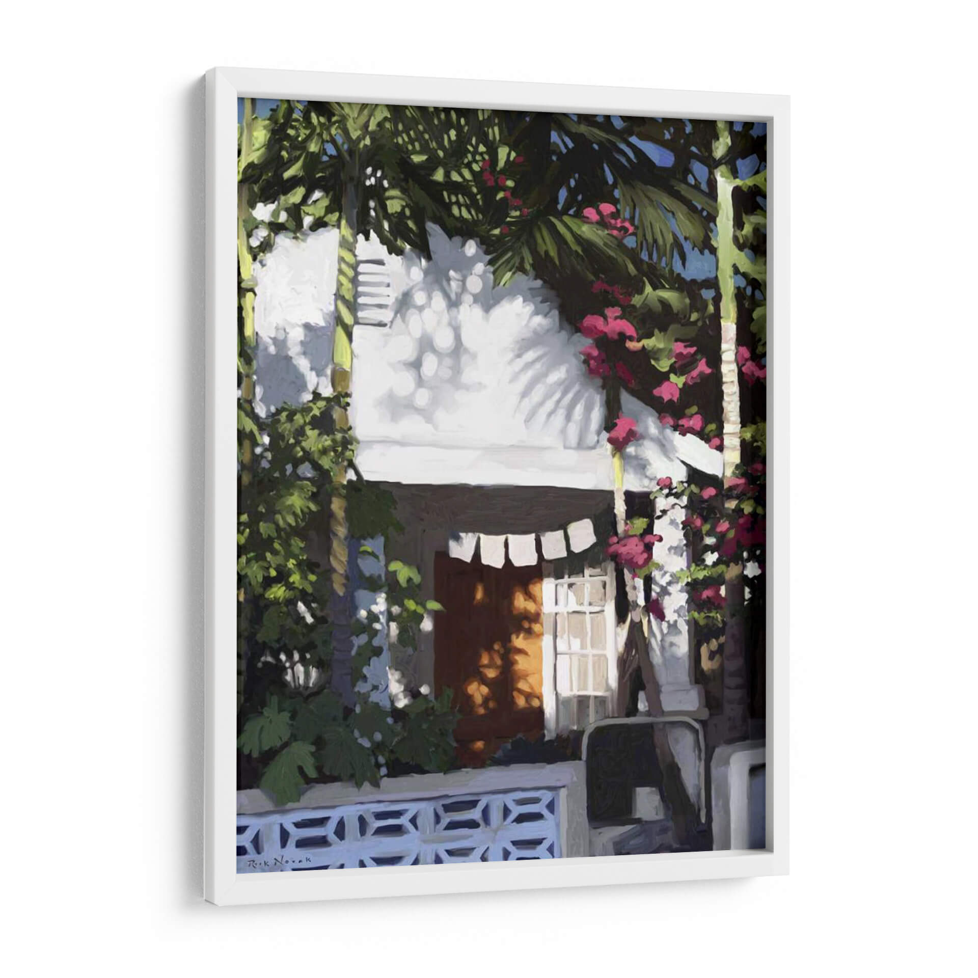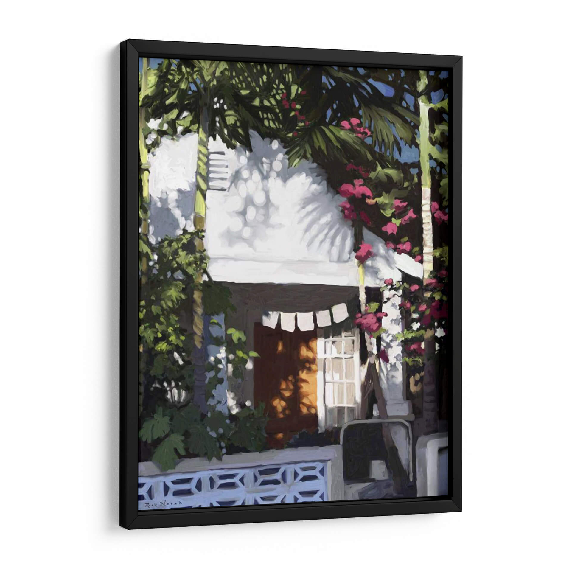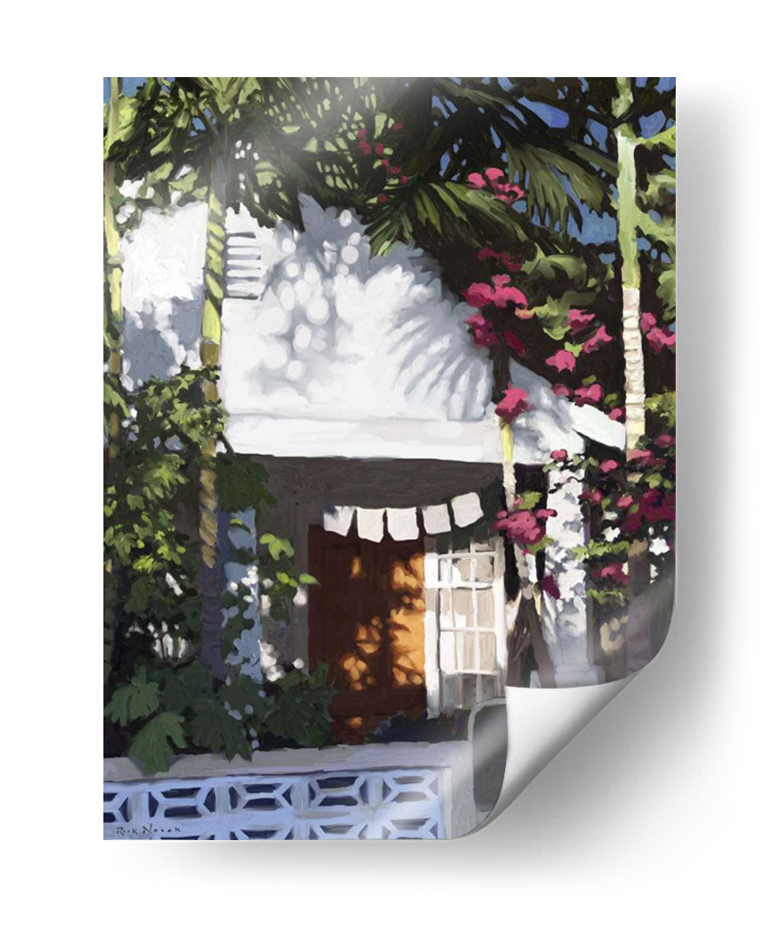Sumérgete en la calidez de "Conch Republic II" de Rick Novak, un cuadro decorativo que captura la esencia de un hogar tropical bañado por el sol. Esta obra vibrante te transporta a un paraíso de vegetación exuberante y arquitectura caribeña. Los verdes intensos de las palmeras y las enredaderas contrastan maravillosamente con el blanco luminoso de las paredes, salpicadas por las sombras danzantes del sol a través de las hojas. El toque de color lo aportan las flores fucsias, que añaden un estallido de vitalidad a la escena, mientras que la puerta de madera cálida y la ventana invitan a soñar con la vida interior. El artista utiliza una técnica pictórica que aporta textura y profundidad, creando una atmósfera acogedora y relajada. "Conch Republic II" es perfecto para añadir un aire de escapada y serenidad a tu sala de estar, dormitorio o estudio, transformando cualquier espacio en un refugio lleno de luz y color. Ideal para quienes buscan arte con alma, que evoque sensaciones de paz y vacaciones permanentes, esta pieza es un testimonio del encanto atemporal de los trópicos.