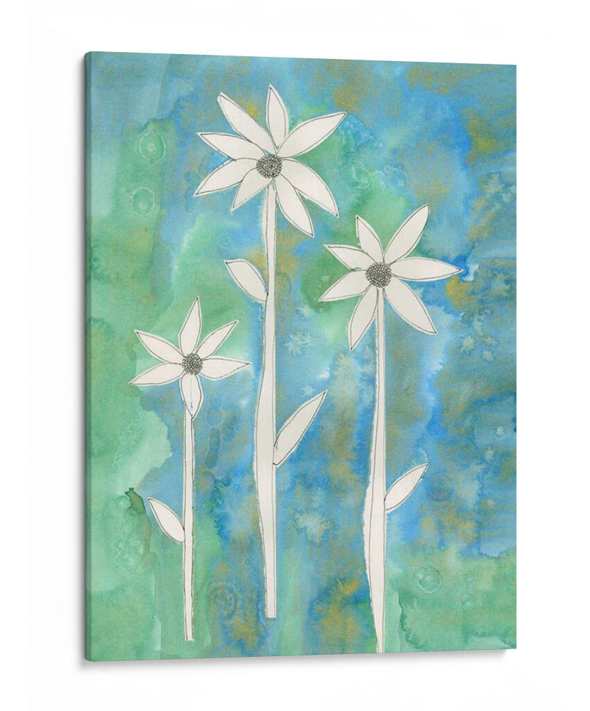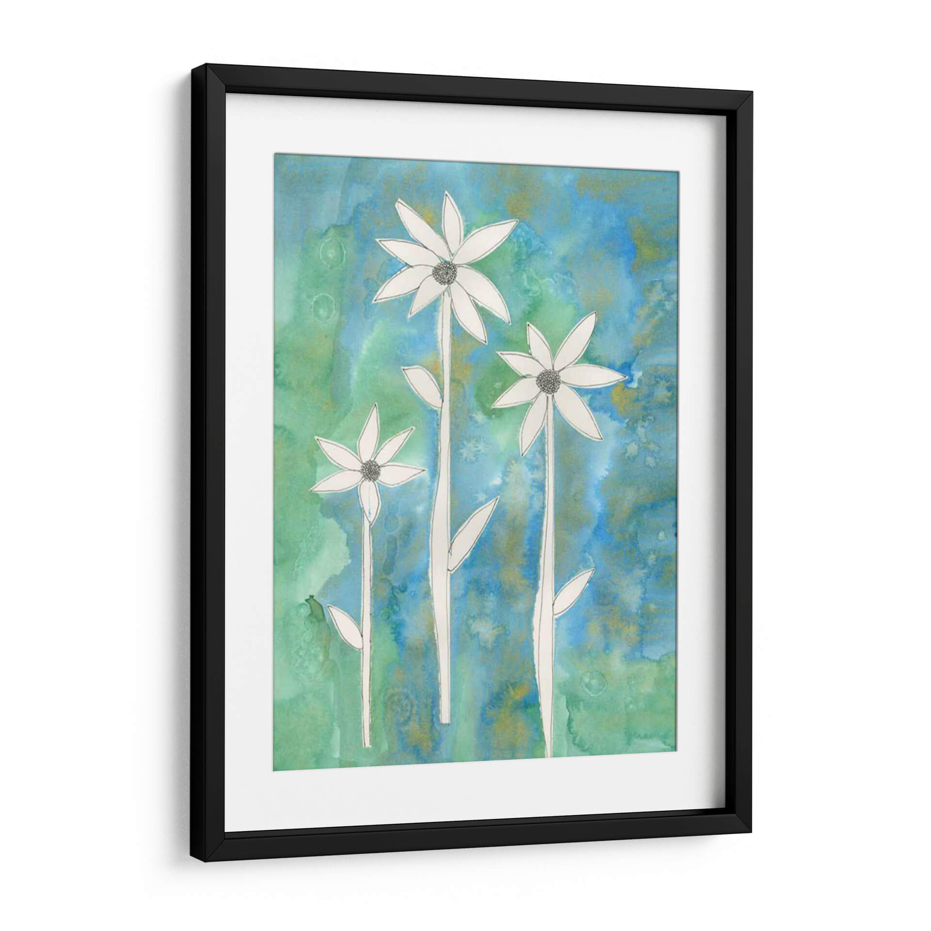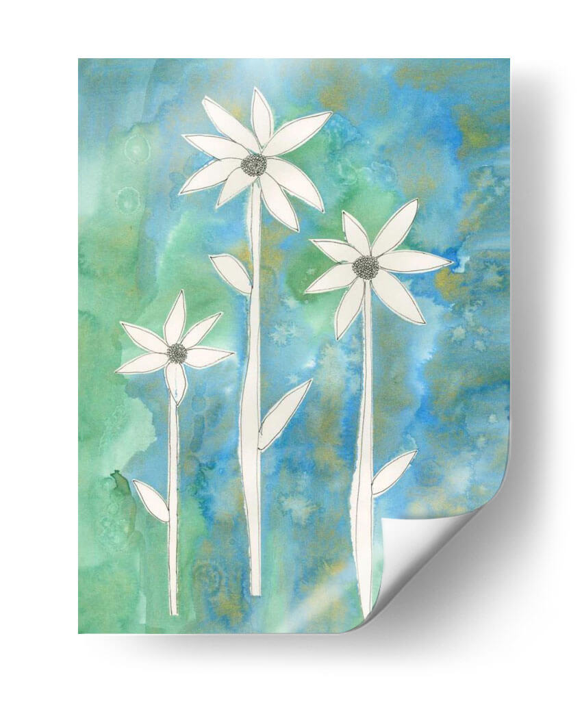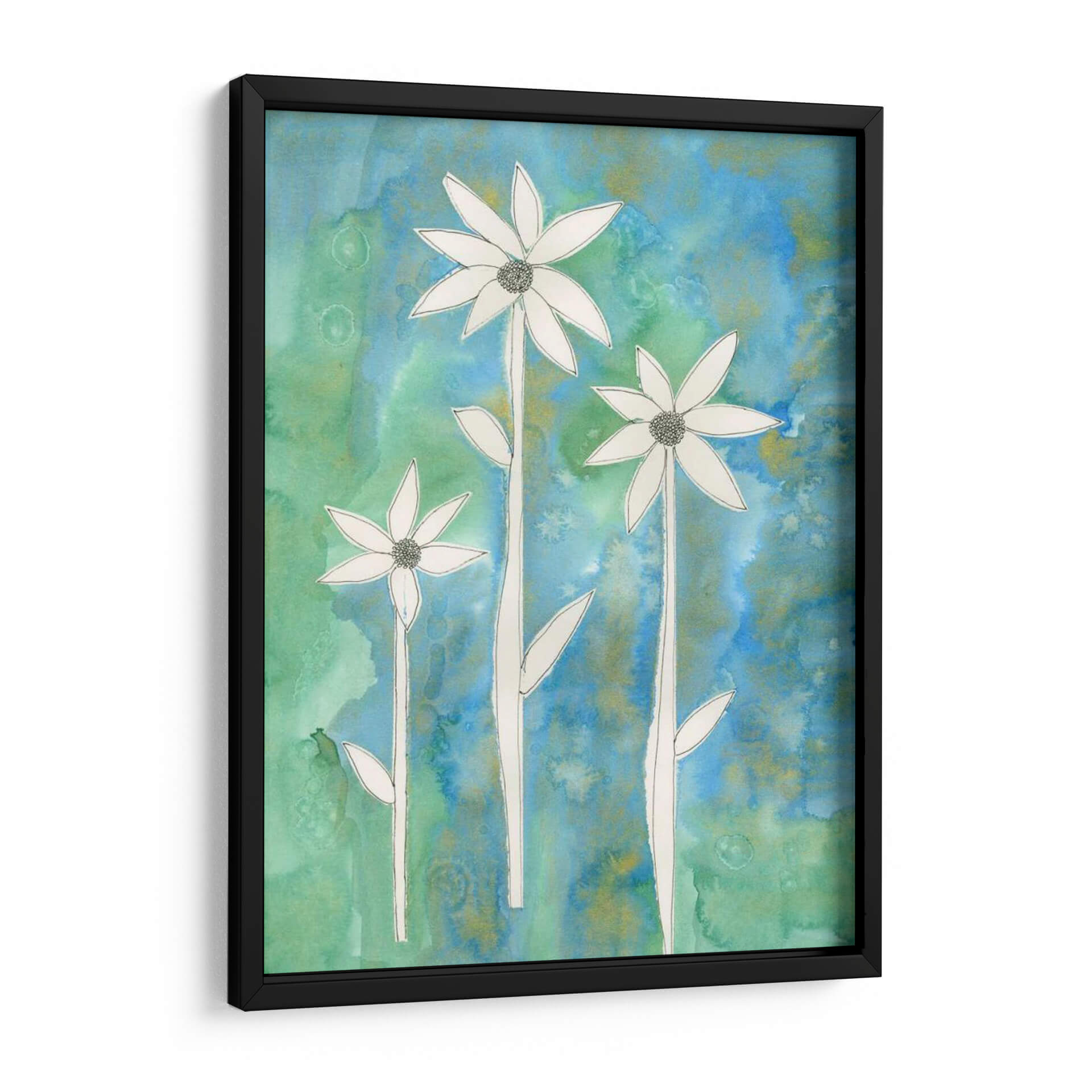 Embellece tu hogar u oficina con este cautivador cuadro decorativo 'Delicadas Margaritas Yo' de Alicia Ludwig. La obra presenta tres esbeltas flores de pétalos blancos y centros detallados, que se alzan con elegancia sobre un fondo vibrante y acuoso en tonos de azul y verde. La técnica pictórica, que recuerda a la acuarela con sus fluidas transiciones de color y texturas orgánicas, crea una atmósfera etérea y serena. Los trazos finos y definidos de las flores contrastan sutilmente con la expresividad del fondo, aportando un toque moderno y delicado. "Delicadas Margaritas Yo" es ideal para añadir un toque de frescura y vitalidad a cualquier espacio, evocando la belleza simple de la naturaleza y la tranquilidad de un jardín. Su paleta de colores azules y verdes es perfecta para crear un ambiente de calma y relajación en dormitorios, salas de estar o incluso en un espacio de trabajo que necesite un respiro visual. Este cuadro decorativo contemporáneo es una pieza versátil que complementa diversos estilos de decoración, desde el moderno hasta el bohemio, invitando a la contemplación y aportando una nota de color y optimismo a tus paredes.