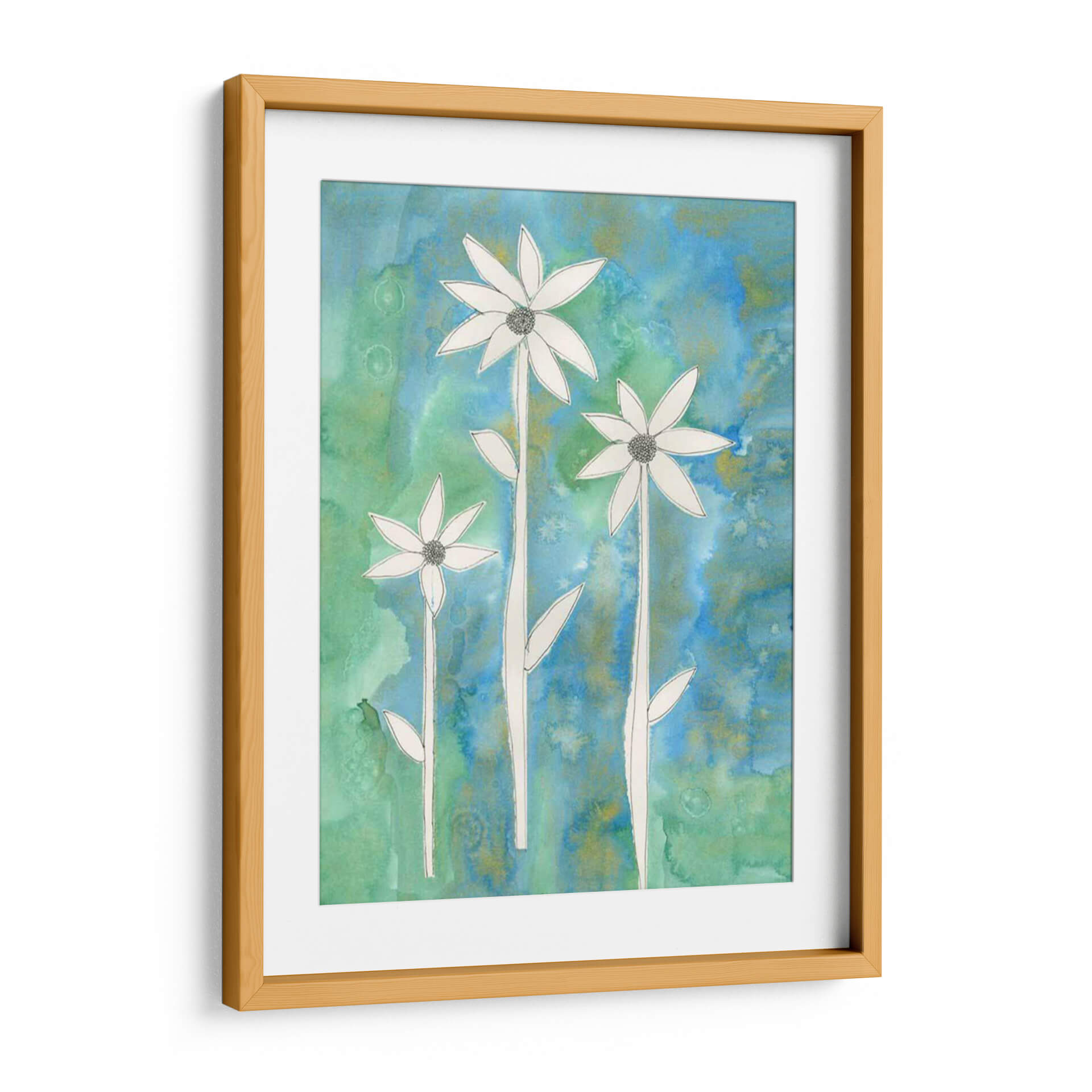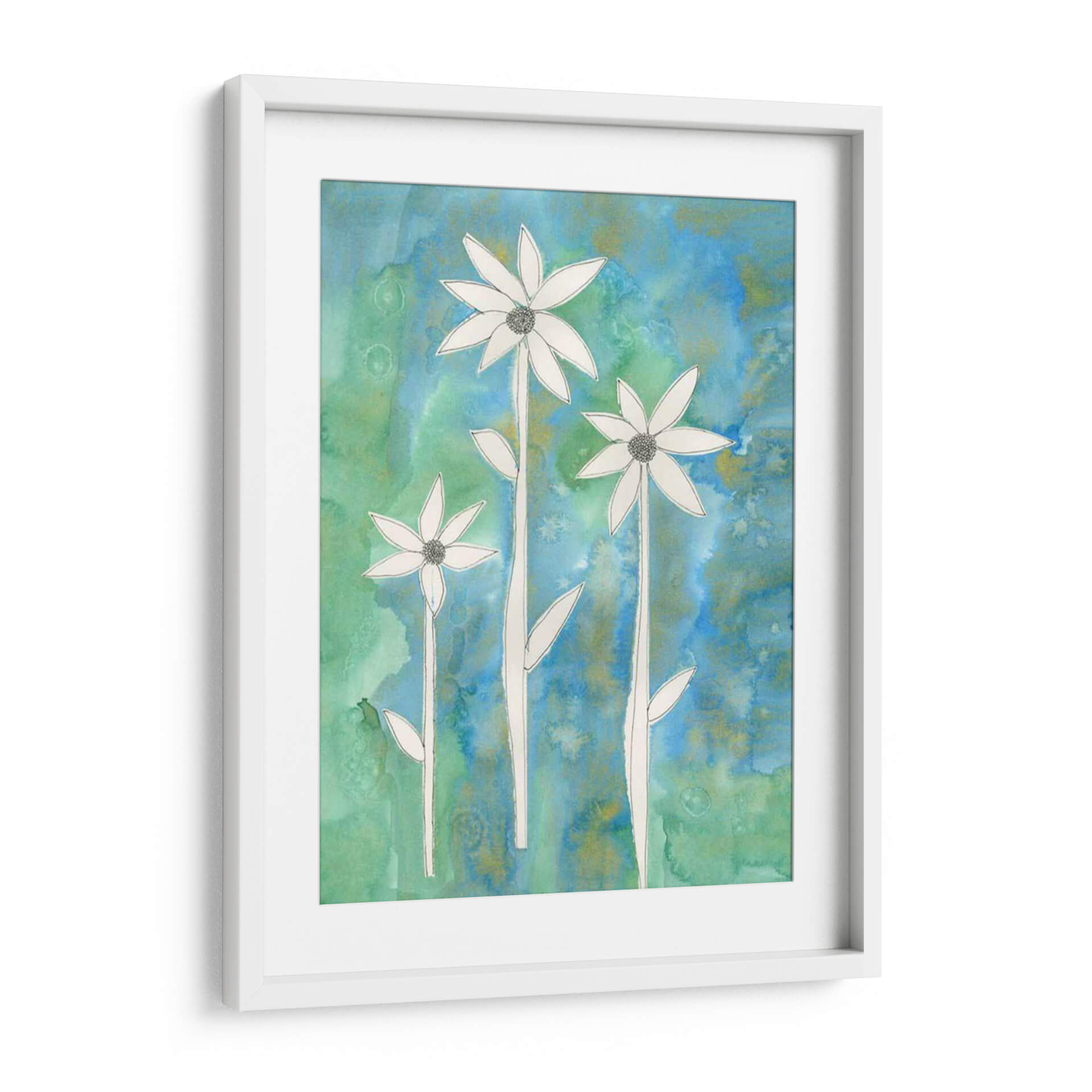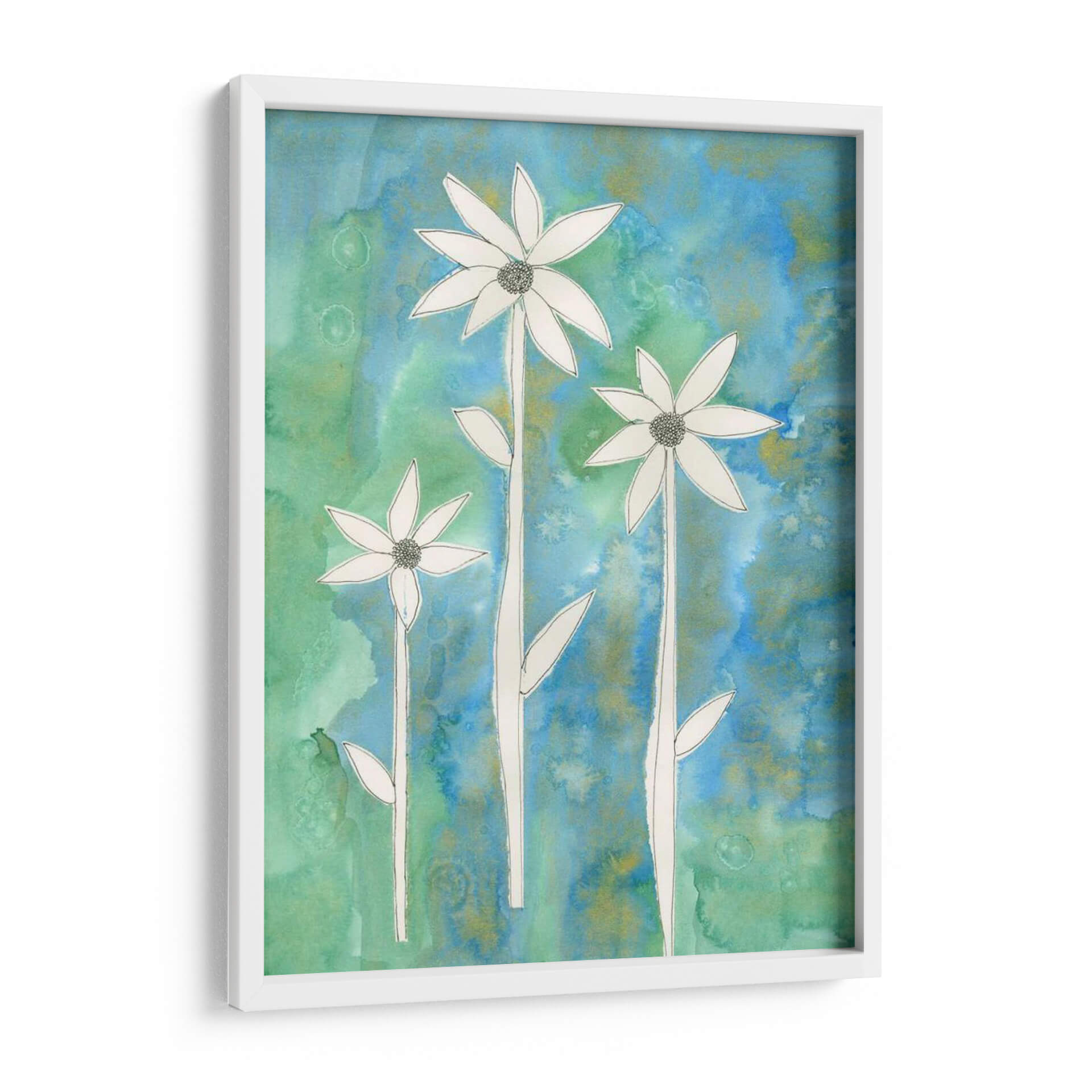 Embellece tu hogar u oficina con este cautivador cuadro decorativo 'Delicadas Margaritas Yo' de Alicia Ludwig. La obra presenta tres esbeltas flores de pétalos blancos y centros detallados, que se alzan con elegancia sobre un fondo vibrante y acuoso en tonos de azul y verde. La técnica pictórica, que recuerda a la acuarela con sus fluidas transiciones de color y texturas orgánicas, crea una atmósfera etérea y serena. Los trazos finos y definidos de las flores contrastan sutilmente con la expresividad del fondo, aportando un toque moderno y delicado. "Delicadas Margaritas Yo" es ideal para añadir un toque de frescura y vitalidad a cualquier espacio, evocando la belleza simple de la naturaleza y la tranquilidad de un jardín. Su paleta de colores azules y verdes es perfecta para crear un ambiente de calma y relajación en dormitorios, salas de estar o incluso en un espacio de trabajo que necesite un respiro visual. Este cuadro decorativo contemporáneo es una pieza versátil que complementa diversos estilos de decoración, desde el moderno hasta el bohemio, invitando a la contemplación y aportando una nota de color y optimismo a tus paredes.