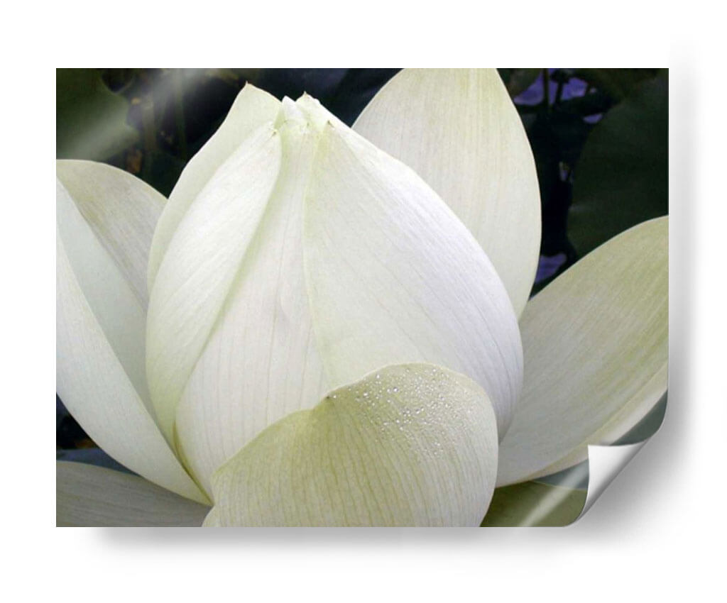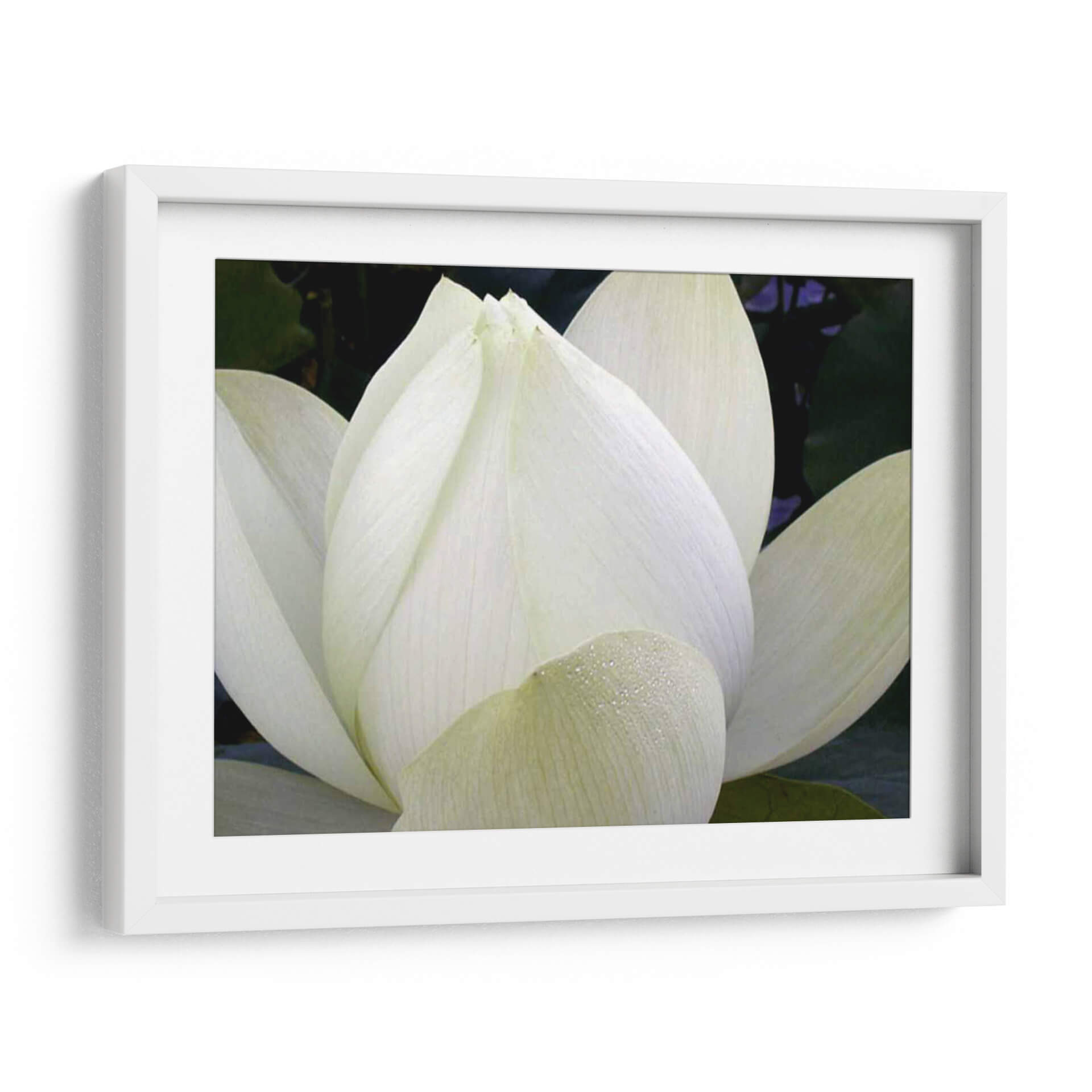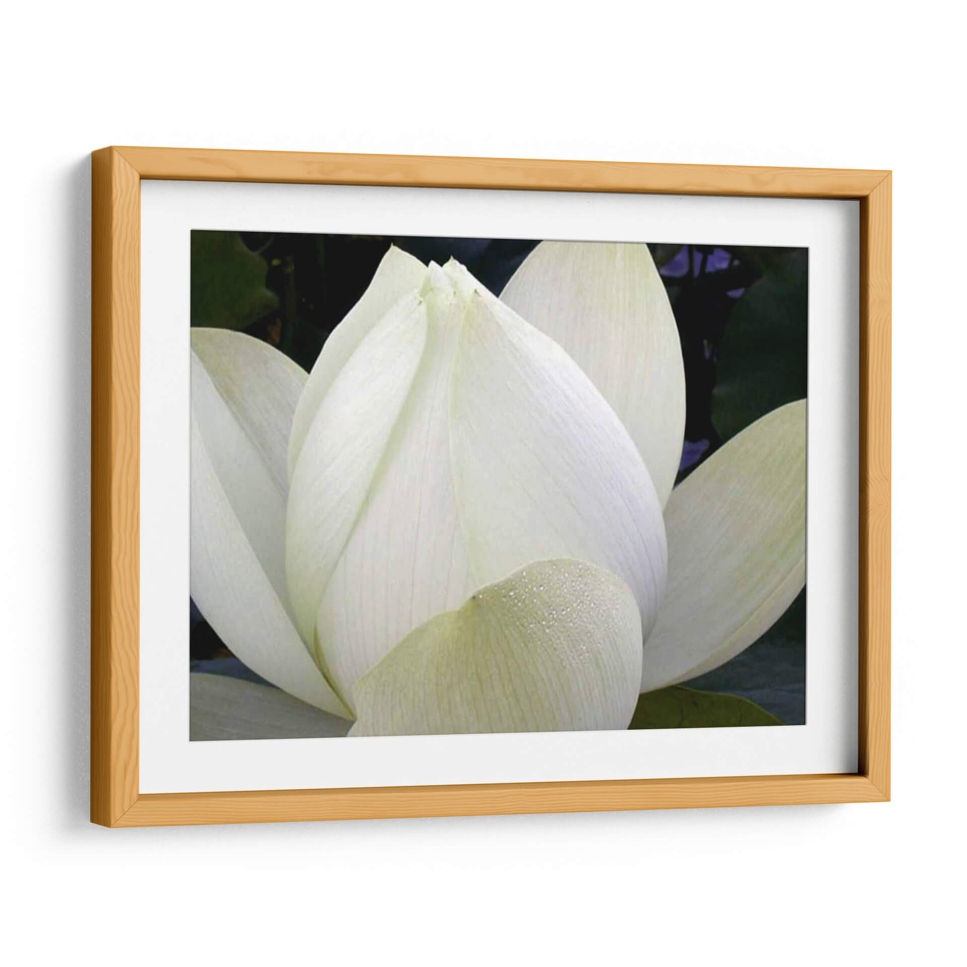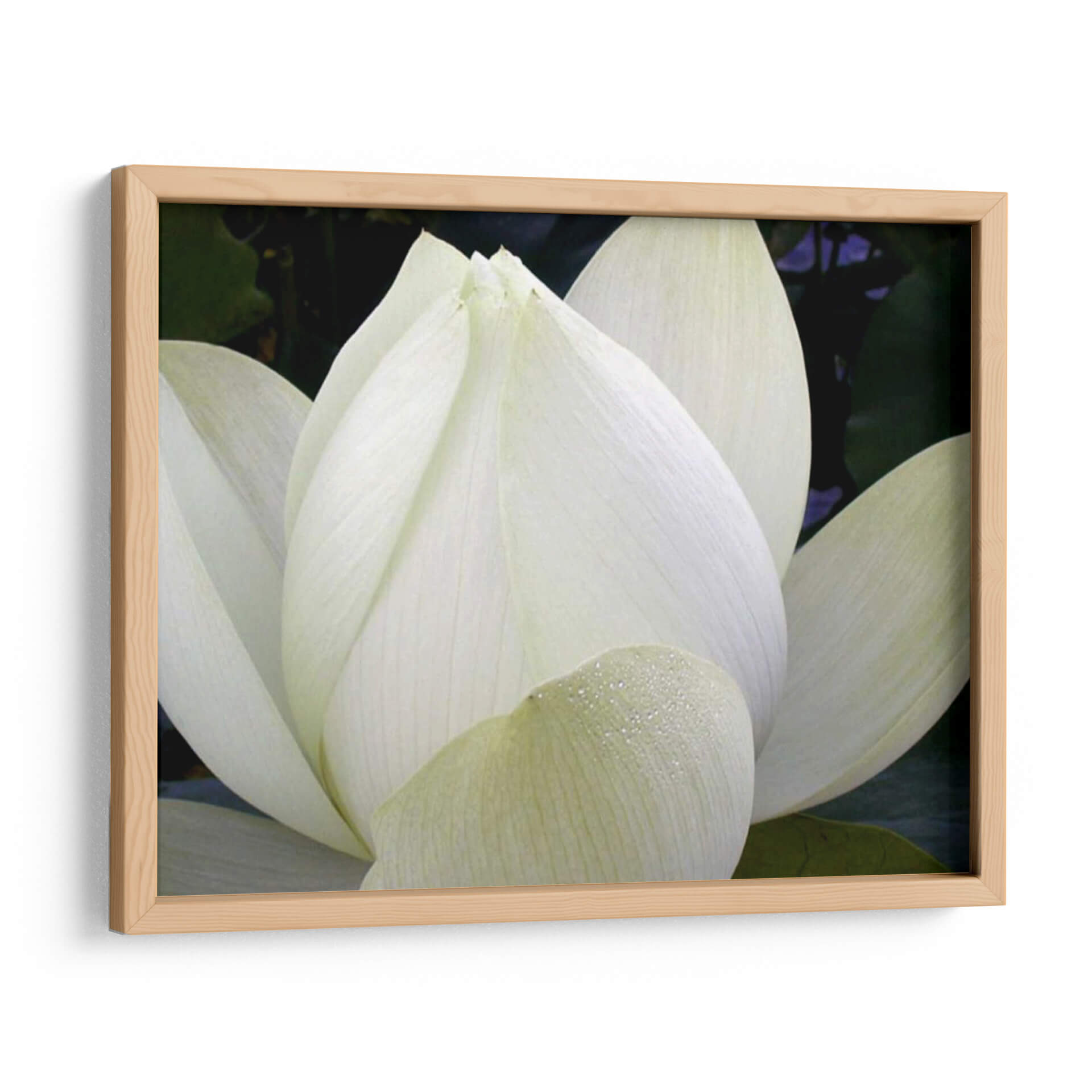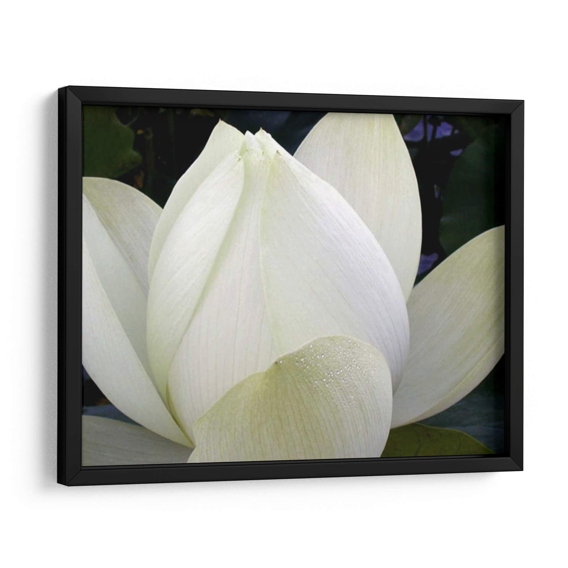 Sumérgete en la serena belleza del cuadro decorativo "Delicado Lotus Iv" de Jim Christensen. Esta obra captura la esencia de un capullo de loto blanco en su máxima expresión, invitando a la calma y la contemplación. Los pétalos, de un blanco inmaculado con sutiles matices cremosos, se despliegan con una gracia delicada, adornados por diminutas gotas de rocío que añaden un toque de frescura y realismo. El fondo oscuro y frondoso, con sus profundos verdes y toques de púrpura, contrasta magistralmente con la pureza de la flor, realzando su protagonismo y creando una atmósfera de paz y tranquilidad. El estilo fotorealista, casi escultórico, de la representación, permite apreciar la textura sedosa de los pétalos y la precisión de cada curva. Este cuadro decorativo es ideal para espacios que buscan un oasis de serenidad, como dormitorios, baños o salas de meditación. Su composición centrada y la elegancia de la flor lo convierten en un punto focal sofisticado que aporta equilibrio y armonía visual a cualquier ambiente. Añade un toque de naturaleza sublime y espiritualidad a tu hogar con esta pieza inspiradora y atemporal.