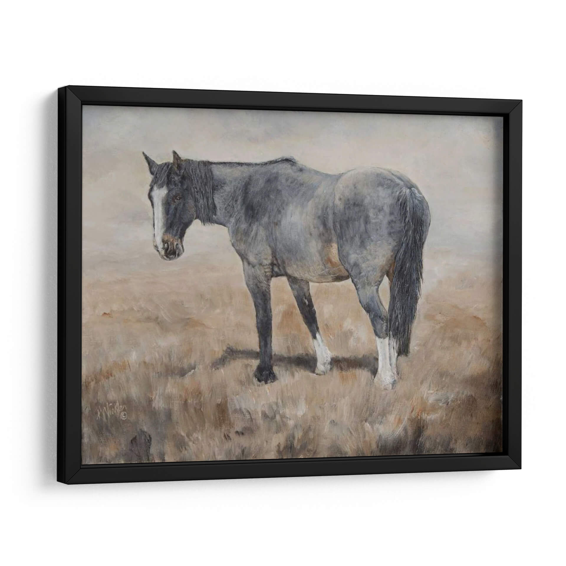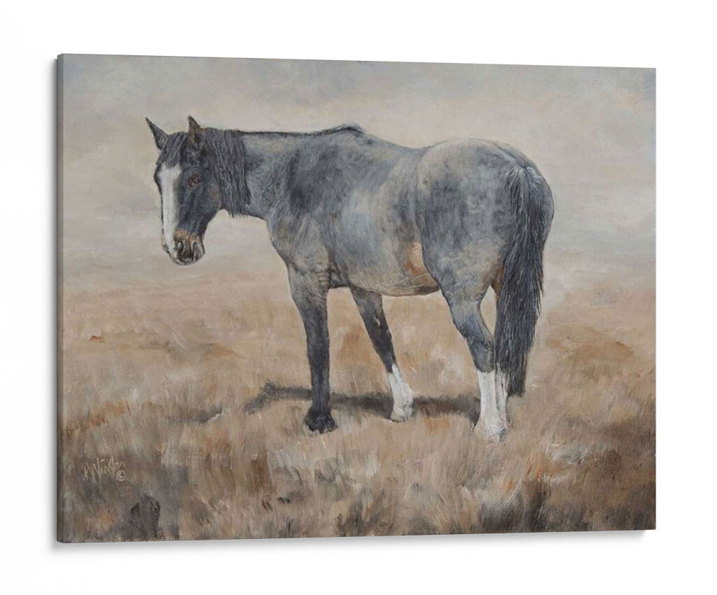 Sumérgete en la serenidad y la fuerza con "El Color Azul", una cautivadora obra de arte de Kathy Winkler. Este cuadro decorativo presenta un majestuoso caballo en tonos grises y azules, de pie en un paisaje etéreo de tonos tierra. La técnica pictórica de Winkler evoca una atmósfera de calma y contemplación, con pinceladas sueltas y texturizadas que dan vida a la escena. La paleta de colores, dominada por grises suaves, azules profundos y toques de beige, crea un ambiente de serenidad y elegancia atemporal. La composición centra la atención en la imponente figura del caballo, transmitiendo una sensación de nobleza y conexión con la naturaleza. Ideal para espacios que buscan un toque de sofisticación y tranquilidad, este cuadro es perfecto para salones, dormitorios o estudios donde se desee una pieza que inspire paz y admiración. La sutileza en la representación del caballo y el entorno lo convierten en un elemento decorativo versátil, capaz de complementar una amplia gama de estilos interiores, desde el contemporáneo hasta el rústico.