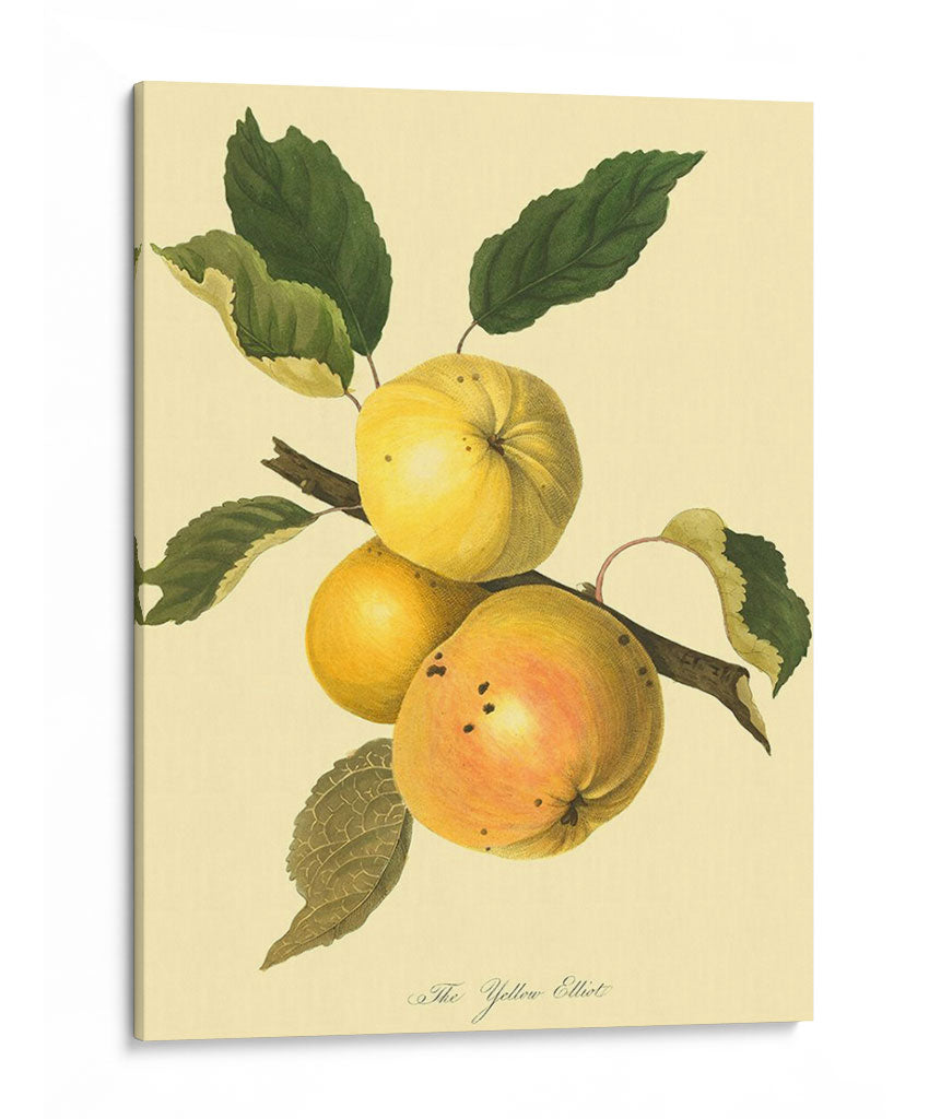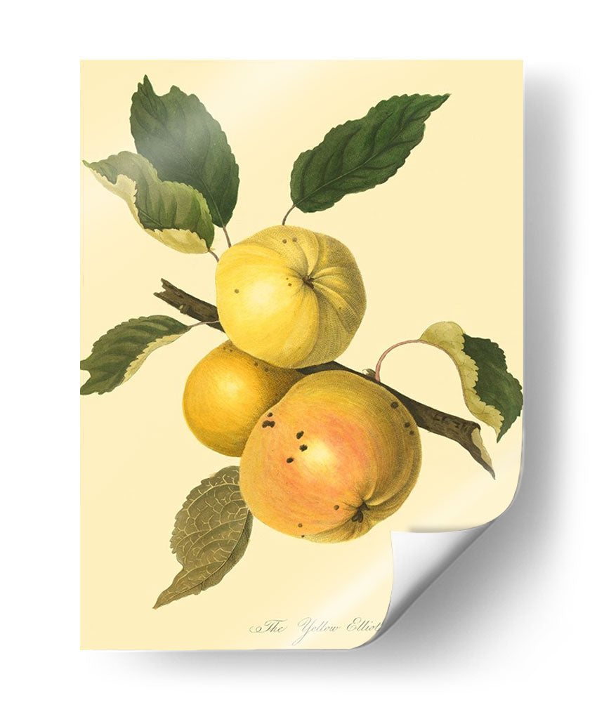 Emb uevo en un viaje visual con "El Elliot Amarillo", un cuadro decorativo que captura la esencia de la naturaleza con una elegancia atemporal. Esta obra maestra presenta tres manzanas amarillas, algunas con sutiles matices anaranjados y delicadas imperfecciones, colgando de una rama robusta adornada con hojas verdes vibrantes. La paleta de colores, dominada por tonos amarillos cálidos y verdes profundos, evoca una sensación de frescura y vitalidad, ideal para infundir calidez en cualquier espacio. El estilo, reminiscent de las ilustraciones botánicas clásicas, ofrece un toque de nostalgia y sofisticación, con un nivel de detalle que invita a la contemplación. La composición centrada en el fruto y su entorno natural crea un punto focal sereno pero atractivo. Este cuadro decorativo es perfecto para quienes buscan añadir un elemento orgánico y artístico a su hogar u oficina, ya sea en una cocina, comedor o sala de estar, aportando un aire de serenidad y aprecio por la belleza simple de la fruta. "El Elliot Amarillo" no es solo una imagen, es una invitación a celebrar la riqueza de la naturaleza en tu decoración.