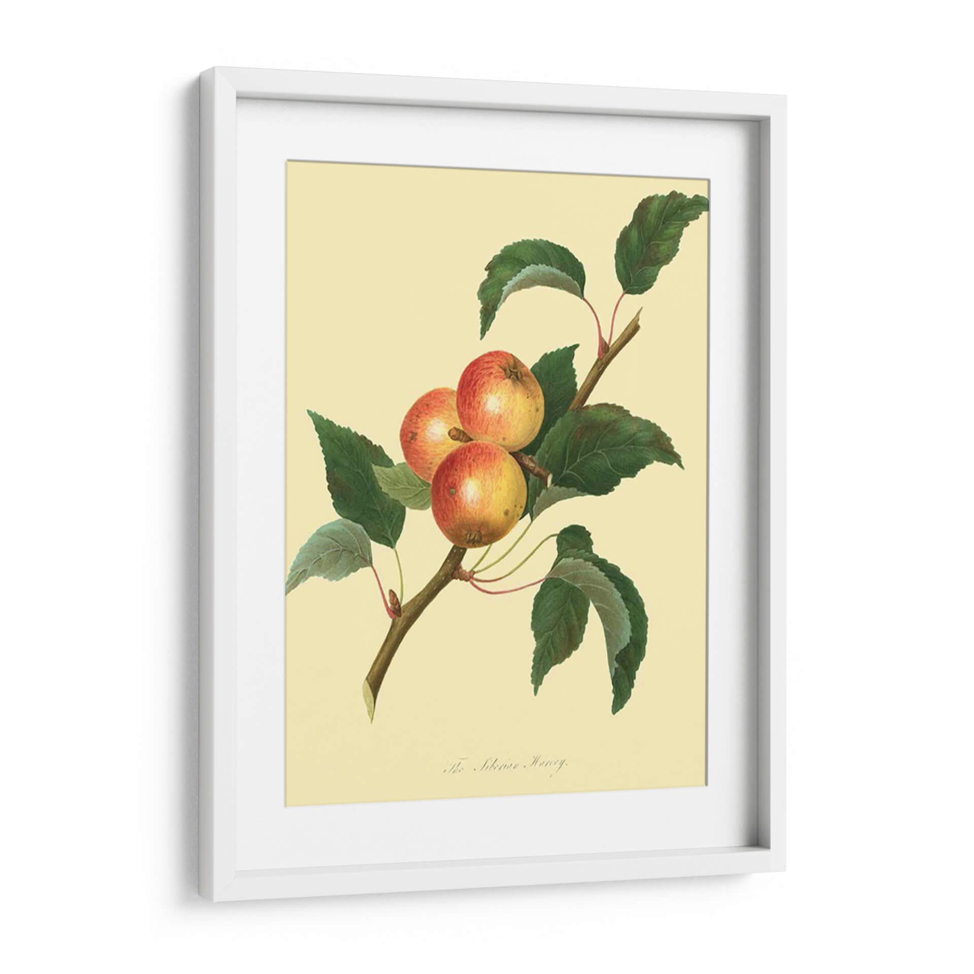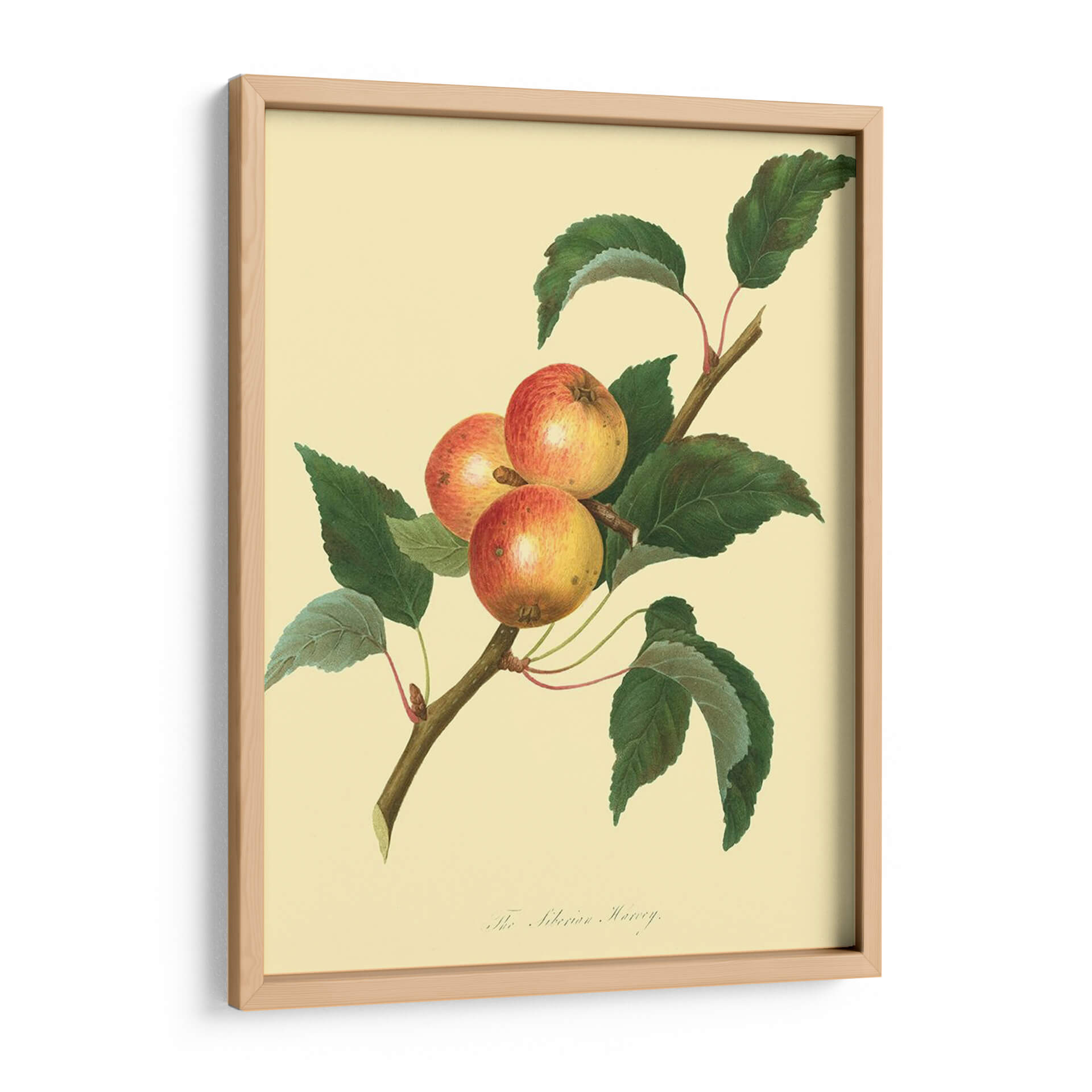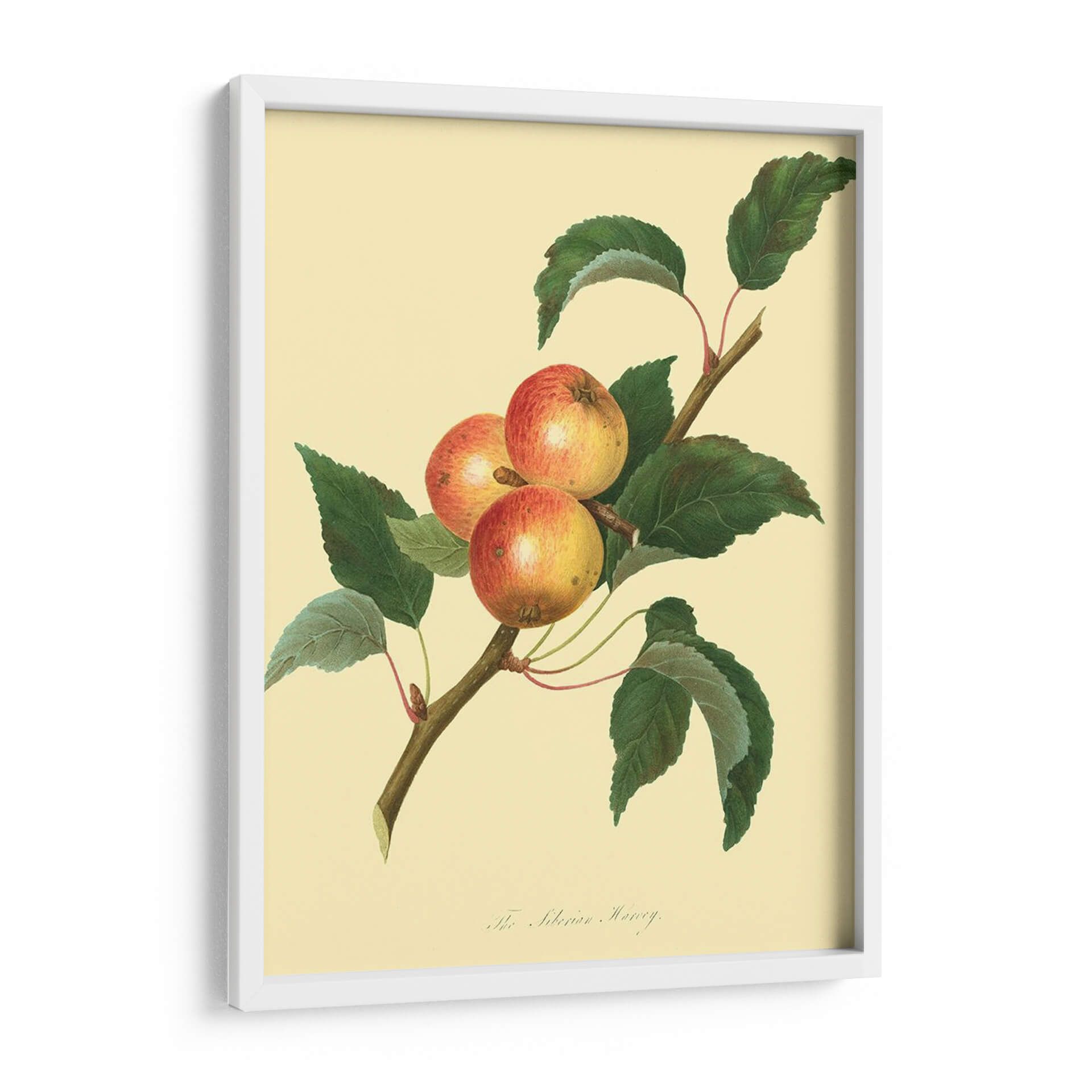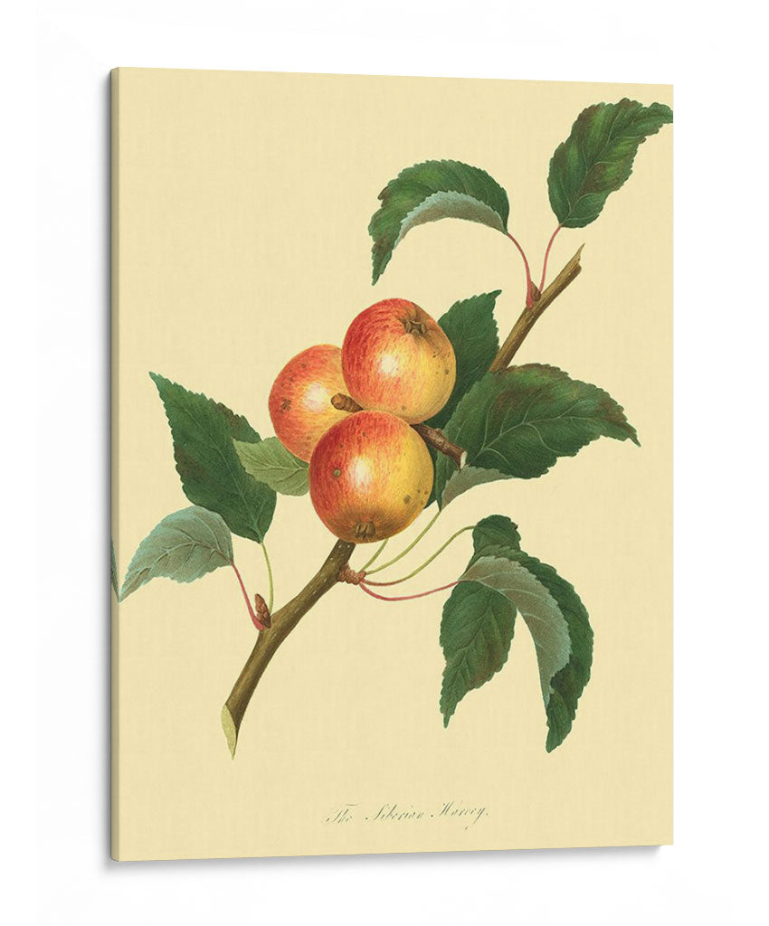 Embárcate en un viaje botánico con "El Harvey Siberiano", una obra de arte que captura la belleza rústica de las manzanas en su estado más puro. Este cuadro decorativo presenta una rama robusta adornada con tres manzanas de tonos rojizos y dorados, rodeadas de exuberantes hojas de un verde profundo. La paleta de colores, dominada por tonos cálidos y naturales, crea una atmósfera de serenidad y conexión con la naturaleza. El estilo de ilustración botánica, detallado y preciso, evoca una sensación de calma y aprecio por la simplicidad. Ideal para cocinas, comedores o cualquier espacio que busque un toque de elegancia natural y un recordatorio de la abundancia de la tierra. Este cuadro es perfecto para quienes valoran el arte clásico y desean infundir a su hogar un ambiente acogedor y orgánico. Añade una pincelada de sofisticación y frescura a tu decoración con esta pieza atemporal que celebra la sencillez y la belleza de la fruta.