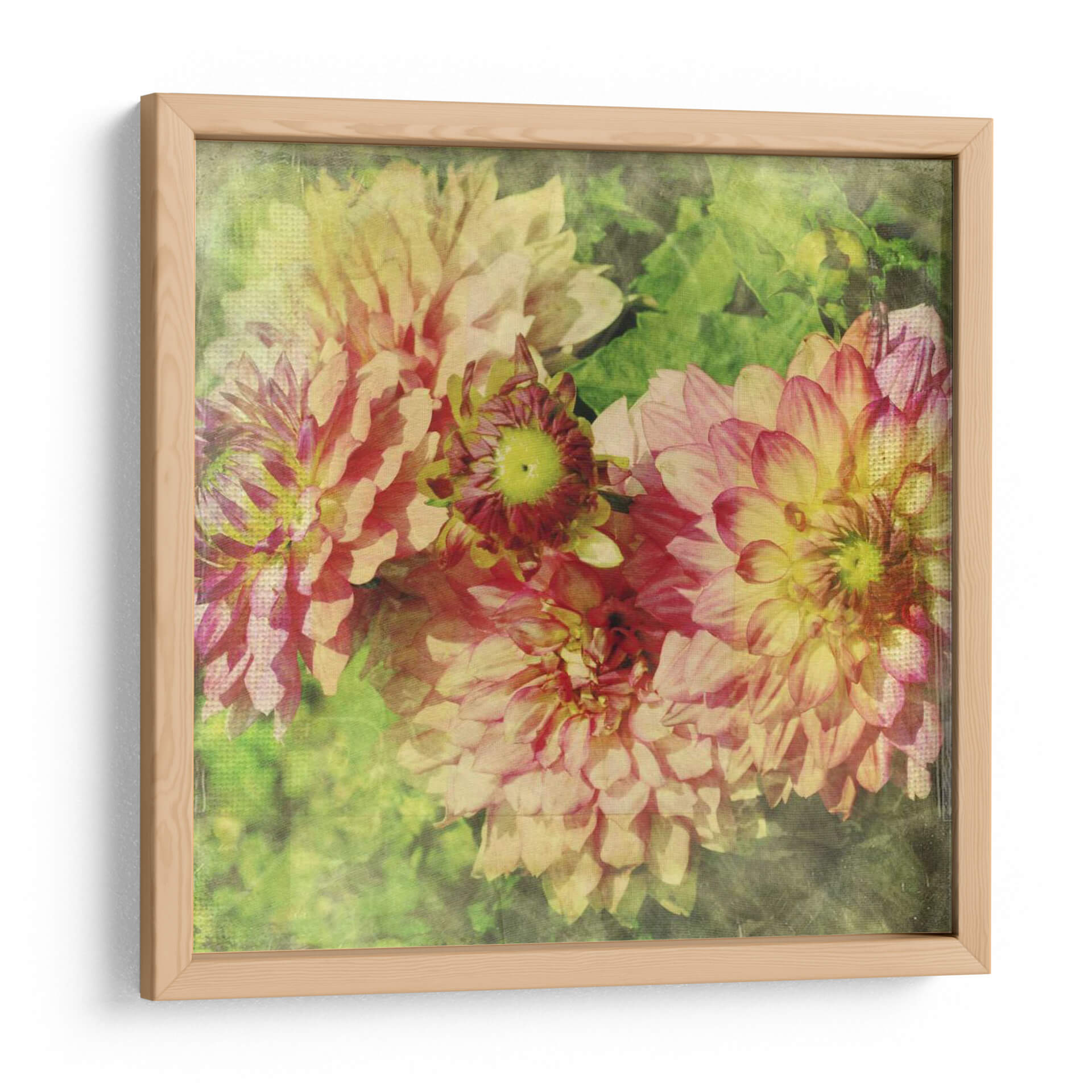 Captura la belleza efímera de la naturaleza con "El Momento En Que", una obra de arte digital que inmortaliza la delicadeza de las dalias en plena floración. Los pétalos se despliegan en una sinfonía de tonos rosas, melocotón y amarillos cálidos, contrastando suavemente con el verde vibrante del follaje que las rodea. La técnica pictórica, que evoca un estilo vintage o de acuarela con sutiles texturas, añade una capa de profundidad y nostalgia, haciendo que cada flor parezca contar una historia. Esta pieza es perfecta para quienes buscan infundir serenidad y un toque de color orgánico en sus espacios. Ideal para salones, dormitorios o estudios, este cuadro decorativo "El Momento En Que" de Jennifer Jorgensen es un recordatorio poético de la belleza que nos rodea, aportando una atmósfera de calma y sofisticación atemporal a cualquier ambiente, creando un punto focal que invita a la contemplación y al disfrute de la delicadeza floral.