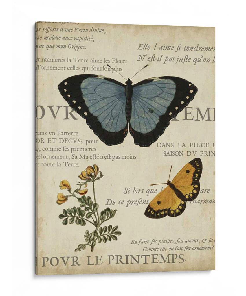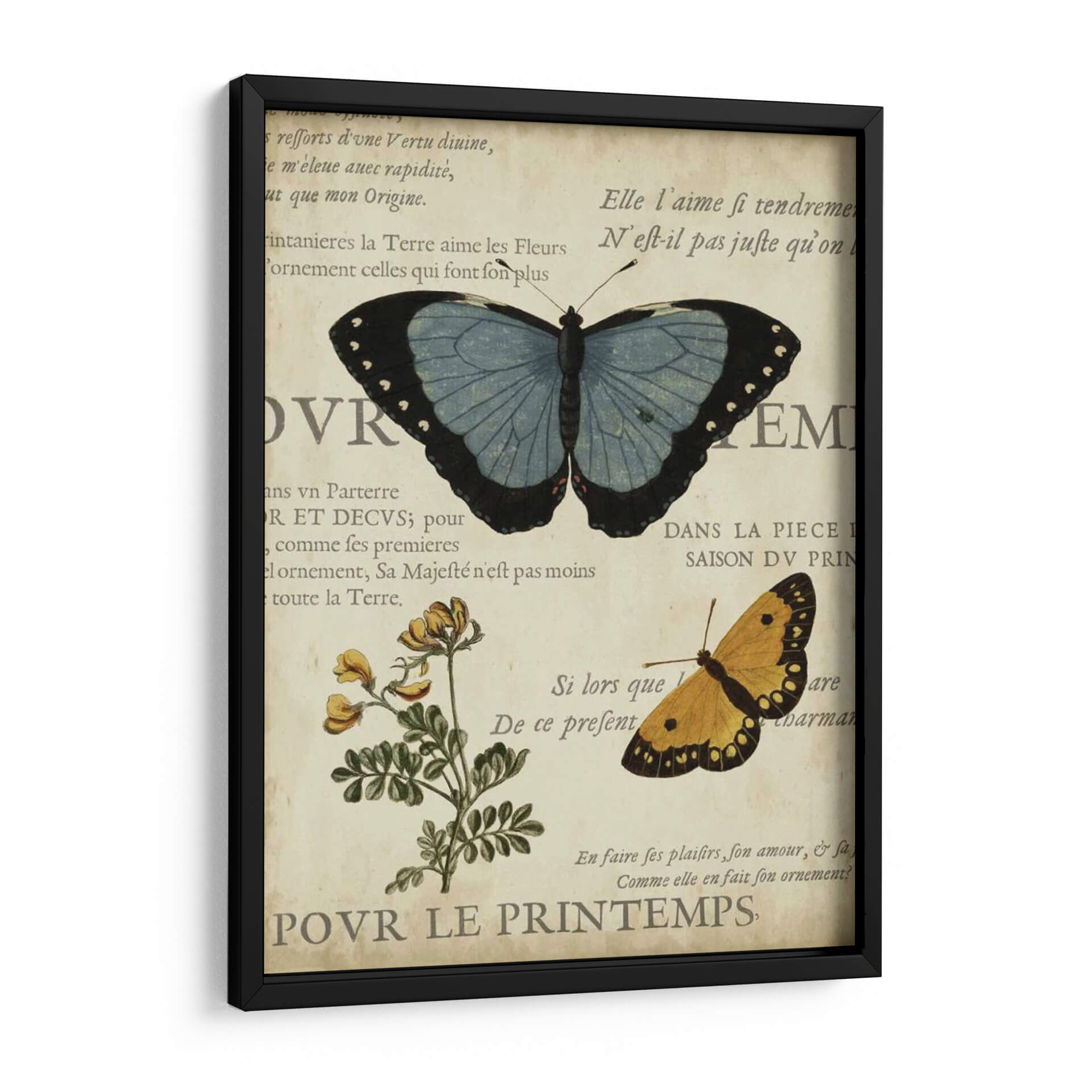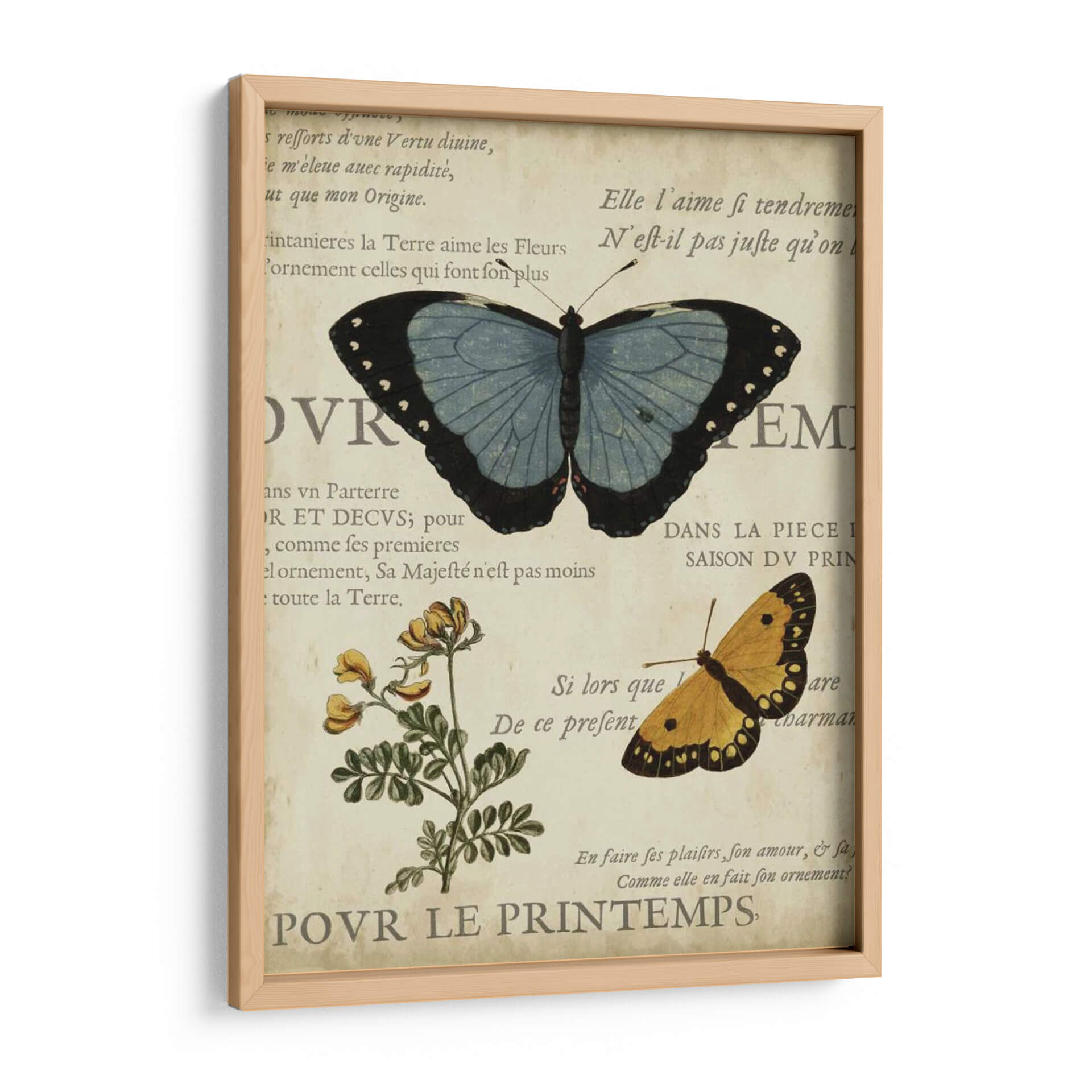 Sumérgete en la delicada belleza de la naturaleza con 'Espécimen De La Belleza Natural I', una obra de arte que evoca la elegancia y la intriga del mundo natural. Este cuadro decorativo presenta una composición magistral con dos mariposas detalladas y un delicado ramo de flores, todo ello sobre un fondo de textura antigua que recuerda a manuscritos botánicos y textos históricos. La mariposa principal, de un sereno azul con bordes negros y puntos distintivos, se posa majestuosamente, mientras que una mariposa más pequeña, de vibrante color amarillo con intrincados patrones, añade un toque de calidez y vitalidad. La rama florida, con sus pétalos amarillos y verdes follajes, aporta un elemento terroso y orgánico, completando una imagen que celebra la flora y fauna con un aire de sofisticación clásica. Los tonos neutros del fondo, con fragmentos de texto en francés antiguo, crean un ambiente nostálgico y distinguido. Ideal para quienes buscan añadir un toque de encanto vintage y conexión con la naturaleza a su hogar u oficina, esta pieza es perfecta para salas de estar, estudios o dormitorios, aportando serenidad y un sofisticado aire de colección botánica. Un recordatorio visual de la efímera pero impactante belleza que nos rodea.