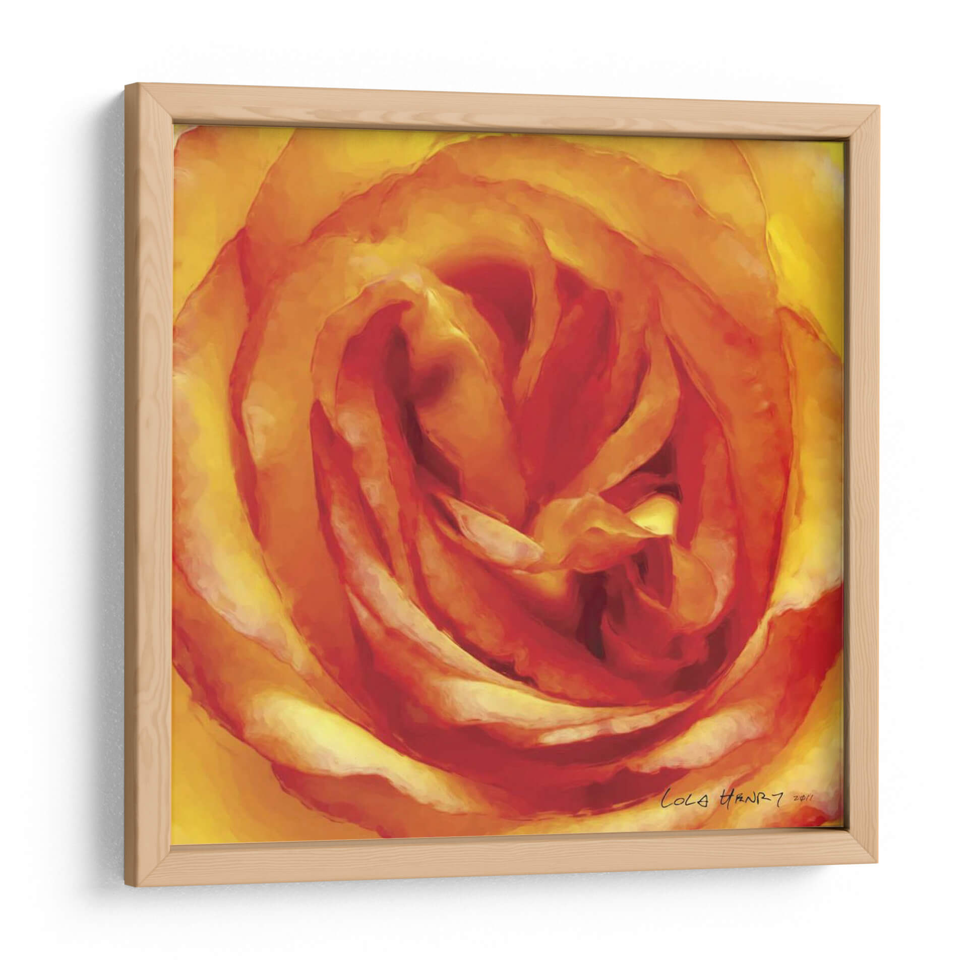 Sumérgete en la vibrante belleza de "Flor Pintor" de Lola Henry, una obra de arte que captura la esencia apasionada de una rosa en plena floración. Este cuadro decorativo destaca por su audaz paleta de colores, dominada por intensos rojos y cálidos amarillos, que crean un efecto visual cautivador y lleno de energía. Las pinceladas expresivas y el enfoque cercano invitan a contemplar las intrincadas texturas y los matices sutiles de los pétalos, evocando una sensación de intimidad y admiración por la naturaleza. La composición, centrada en el detalle y la forma orgánica de la flor, aporta un toque de sofisticación y calidez a cualquier espacio. Ideal para quienes buscan infundir vitalidad y un aire de romanticismo en su hogar u oficina, "Flor Pintor" se convierte en un punto focal que atrae miradas y estimula conversaciones. Este cuadro decorativo es perfecto para salas de estar modernas, dormitorios acogedores o incluso como pieza central en un estudio, aportando un toque de color y arte contemporáneo. Añade esta pieza única a tu colección y deja que la pasión de Lola Henry ilumine tu entorno.