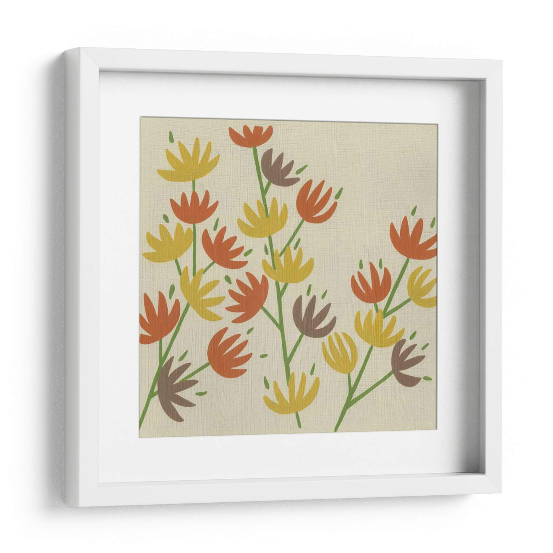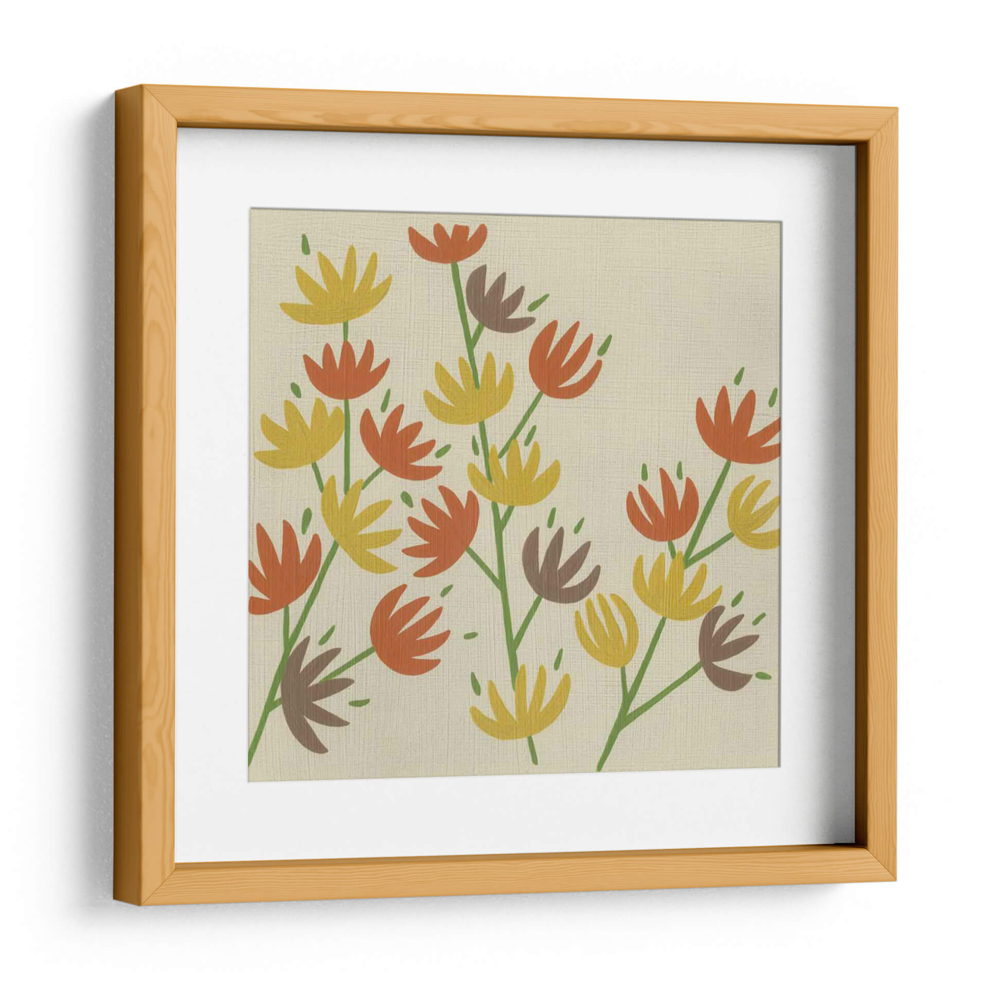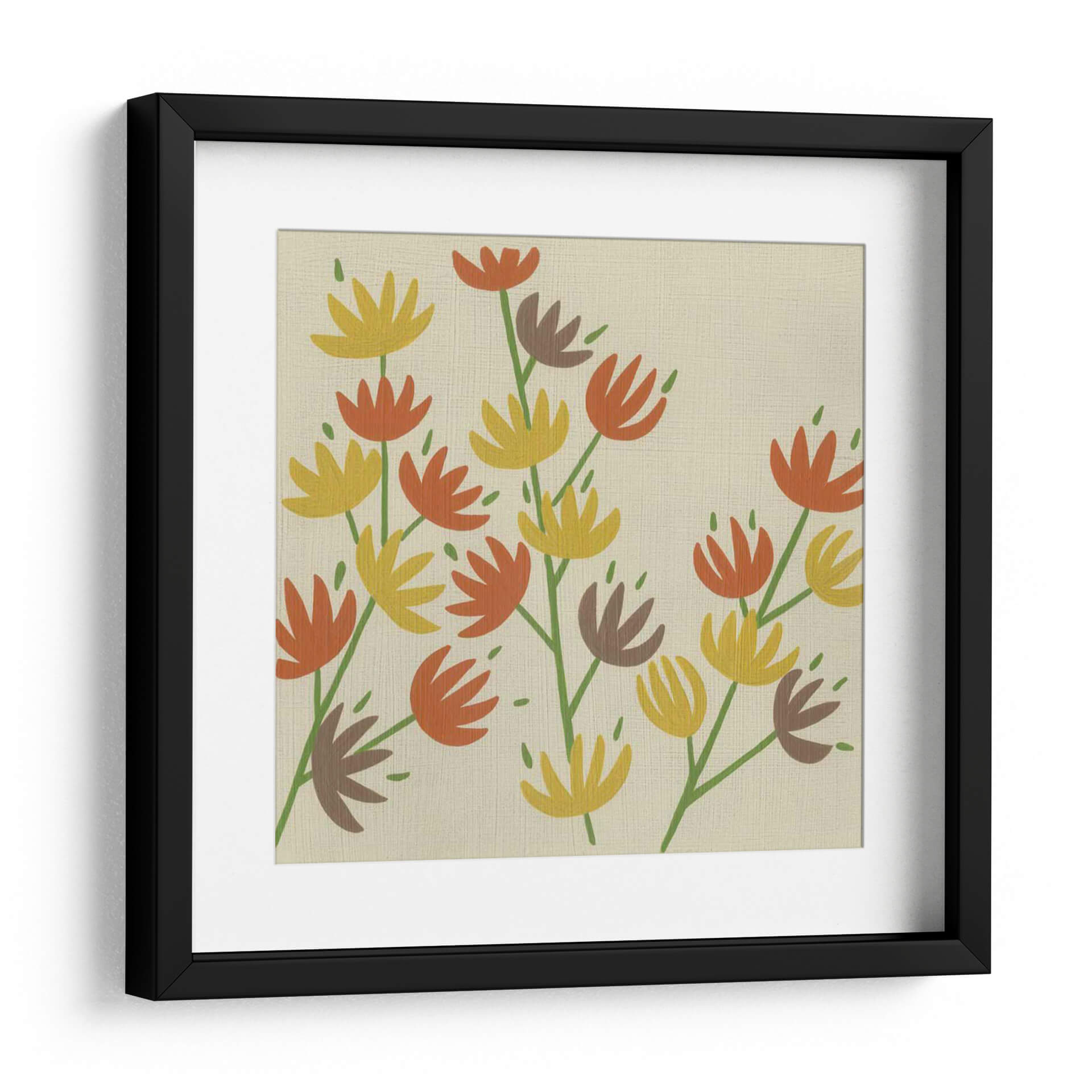 Celebra la belleza de la naturaleza con "Flores Retro Iii", una obra de arte contemporánea que inyecta vitalidad y un toque de nostalgia a cualquier espacio. Este cuadro decorativo presenta un encantador arreglo de flores estilizadas en tonos cálidos de naranja, amarillo y marrón, delicadamente dispuestas sobre un fondo neutro y texturizado que evoca la calidez de la época retro. La composición, con sus tallos verdes que se extienden grácilmente, crea un movimiento orgánico que atrae la mirada y genera una sensación de ligereza y optimismo. El estilo artístico, una mezcla de lo abstracto y lo figurativo, permite que cada espectador encuentre su propia interpretación, mientras que los colores evocan una atmósfera acogedora y alegre. "Flores Retro Iii" es ideal para añadir un acento de color y personalidad a salas de estar, comedores o cualquier habitación que necesite un toque de alegría primaveral durante todo el año. Esta pieza es una elección perfecta para quienes buscan arte decorativo de pared que combine diseño moderno con un guiño a lo vintage, creando un ambiente sereno y lleno de estilo. Transforma tu hogar u oficina con esta pieza única y vibrante que captura la esencia de la naturaleza de una manera fresca y artística, asegurando que tu espacio refleje tu gusto exquisito y tu aprecio por el arte.