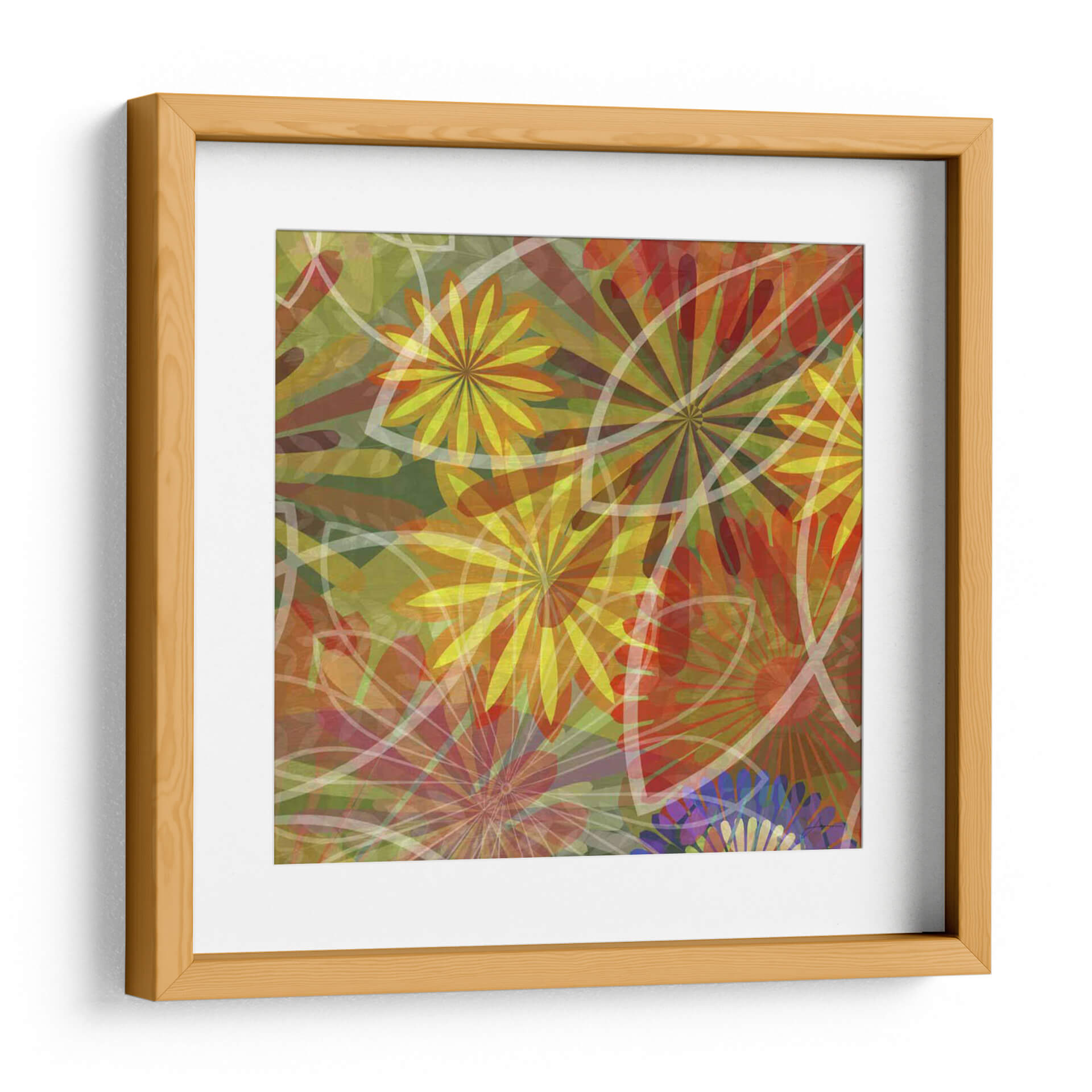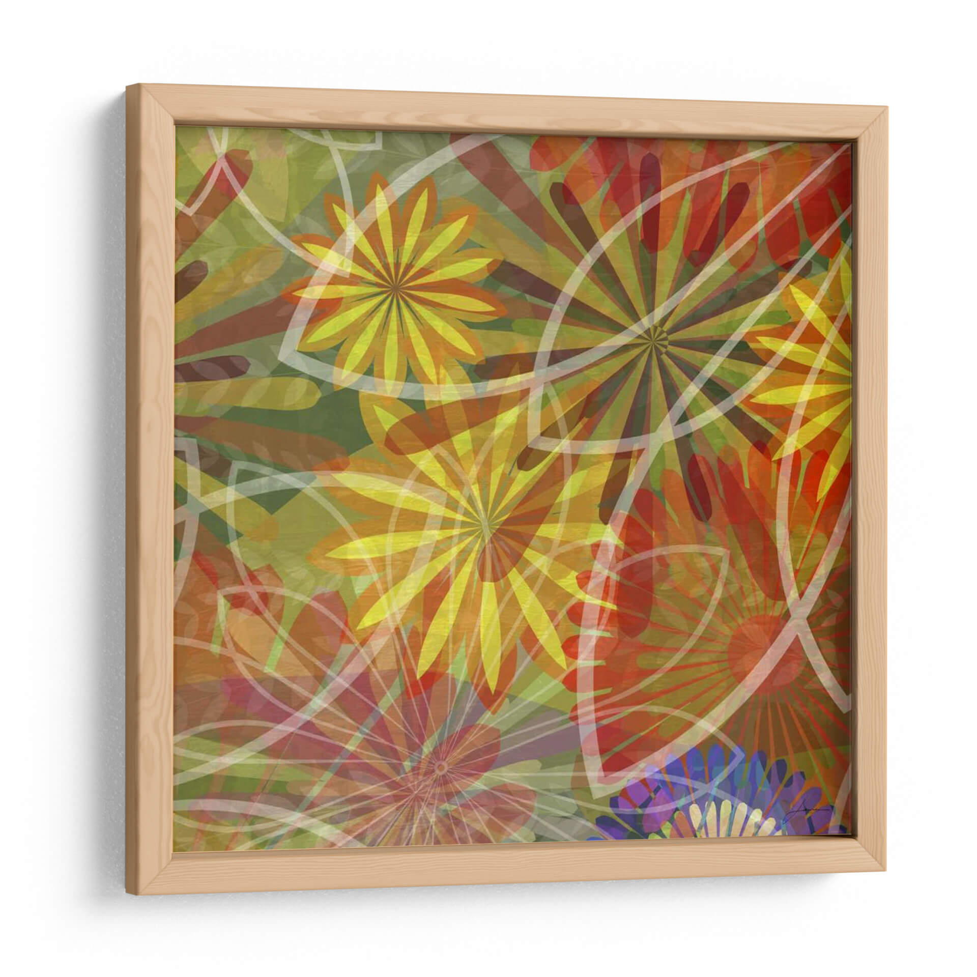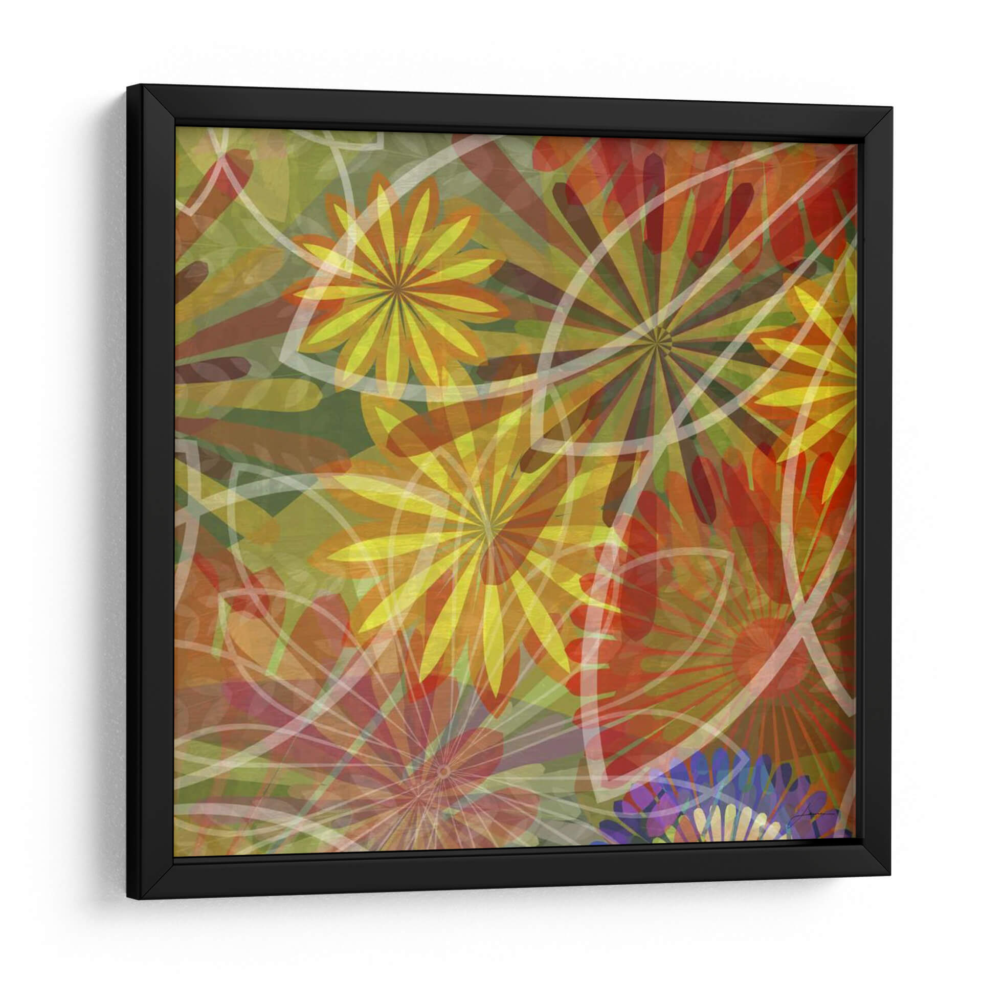 Sumérgete en la vibrante explosión de color y forma de "Fluoresce III", una obra de arte contemporáneo del artista James Burghardt. Este cuadro decorativo es una celebración de la naturaleza estilizada, donde formas florales abstractas y orgánicas se entrelazan en una composición dinámica. Los tonos cálidos de amarillo, naranja y rojo se fusionan con verdes profundos y toques sutiles de azul, creando una atmósfera energética y alegre. Las líneas blancas translúcidas añaden un elemento de ligereza y modernidad, contrastando con la densidad del fondo. "Fluoresce III" es ideal para infundir vitalidad a cualquier espacio, desde una sala de estar moderna hasta un estudio creativo u oficina. Su estilo abstracto y su rica paleta de colores lo convierten en un punto focal cautivador que invita a la contemplación y estimula la imaginación. Añade un toque de arte contemporáneo audaz a tu decoración y deja que esta pieza inspire conversaciones y admiración.