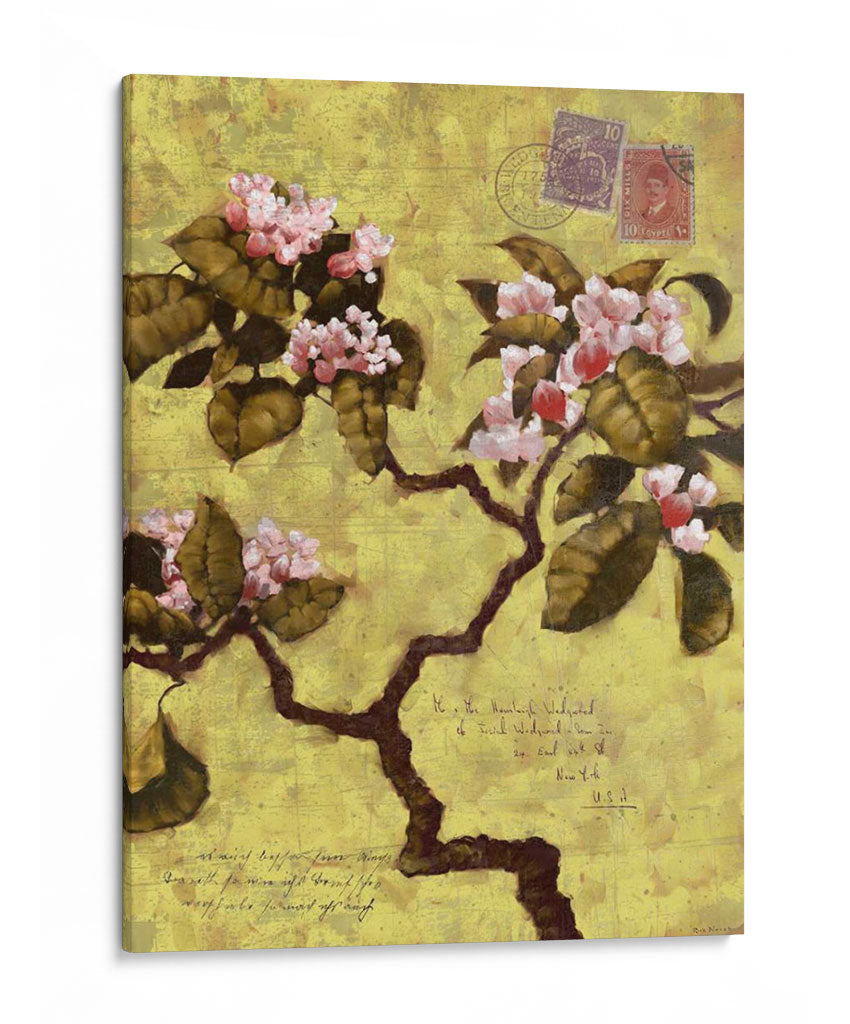 Transforma tu espacio con la delicada belleza del cuadro decorativo 'Franqueo V' de Rick Novak. Esta obra de arte contemporánea captura la esencia de las flores en flor con una paleta de colores vibrantes que combina tonos dorados, verdes profundos y delicados rosas. La composición, con ramas oscuras y detalladas que se extienden sobre un fondo texturizado que evoca sellos postales y manuscritos antiguos, crea una atmósfera de nostalgia y elegancia atemporal. El estilo artístico, que fusiona elementos realistas con un toque abstracto en el fondo, aporta profundidad y carácter a la pieza. Imagina este cuadro decorativo como el punto focal perfecto para una sala de estar moderna, un estudio sereno o un dormitorio acogedor, añadiendo un toque de sofisticación natural y un recordatorio de la belleza efímera. 'Franqueo V' no es solo una decoración, es una invitación a la contemplación y al aprecio por el arte que trasciende el tiempo, ideal para quienes buscan infundir a sus hogares una sensación de calma y refinamiento.
