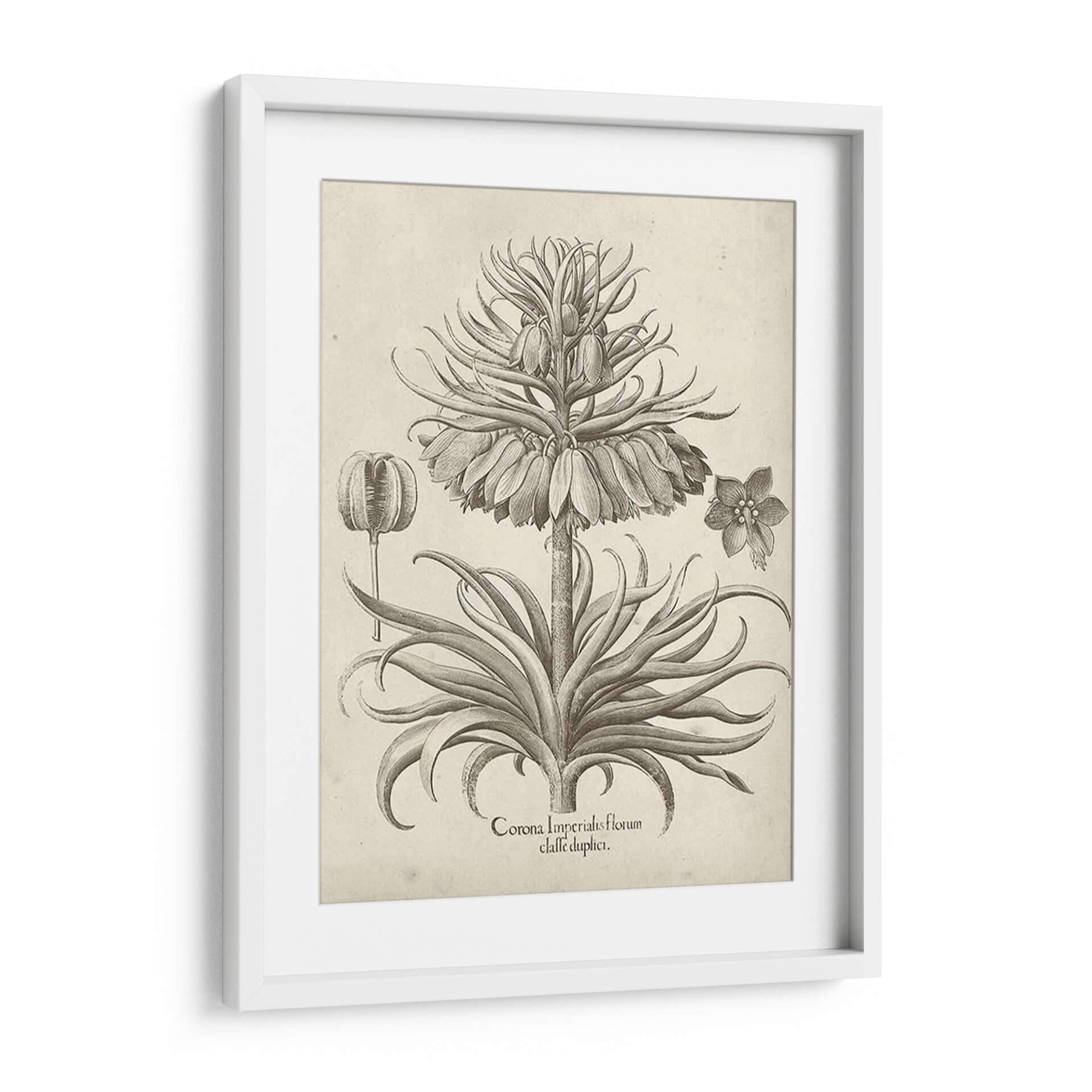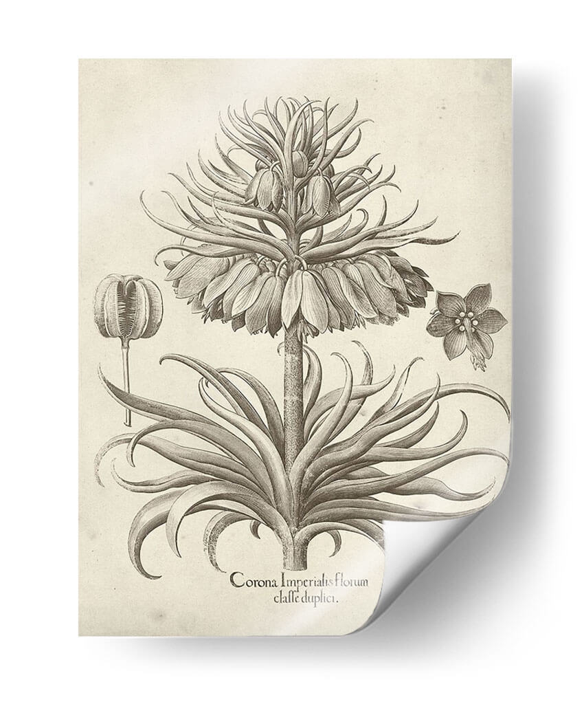 Emb uevo en un viaje botánico con el cuadro decorativo "Fresco Crown Imperial Iii" de Vision Studio. Esta obra de arte, que captura la majestuosidad de la Corona Imperial, te transporta a un jardín de antaño con su detallada ilustración botánica en tonos sepia. La composición se centra en la imponente flor principal, con sus pétalos colgantes y una corona de hojas exuberantes, complementada por representaciones de un capullo y una flor secundaria que ofrecen una visión completa de su ciclo de vida. El estilo de grabado clásico evoca una sensación de elegancia atemporal y conocimiento científico, perfecto para añadir un toque de sofisticación a cualquier espacio. Ideal para tu estudio, biblioteca o sala de estar, este cuadro decorativo en sepia es una oda a la belleza natural y la precisión artística. Transforma tu pared en una ventana a la maravilla botánica, atrayendo miradas y conversaciones. Descubre la serenidad y el encanto histórico que "Fresco Crown Imperial Iii" aportará a tu decoración.