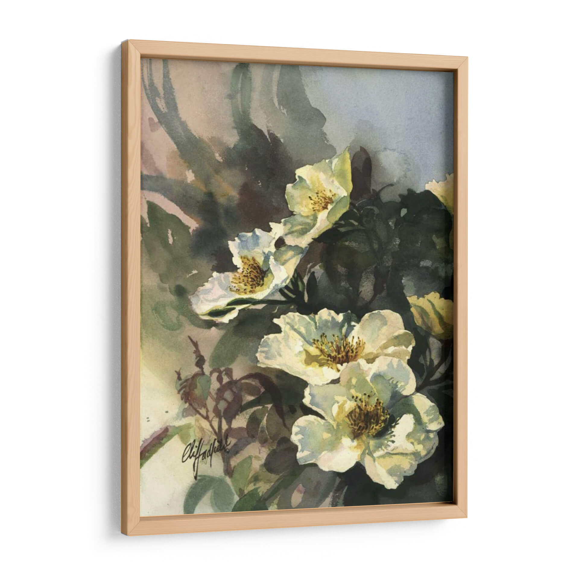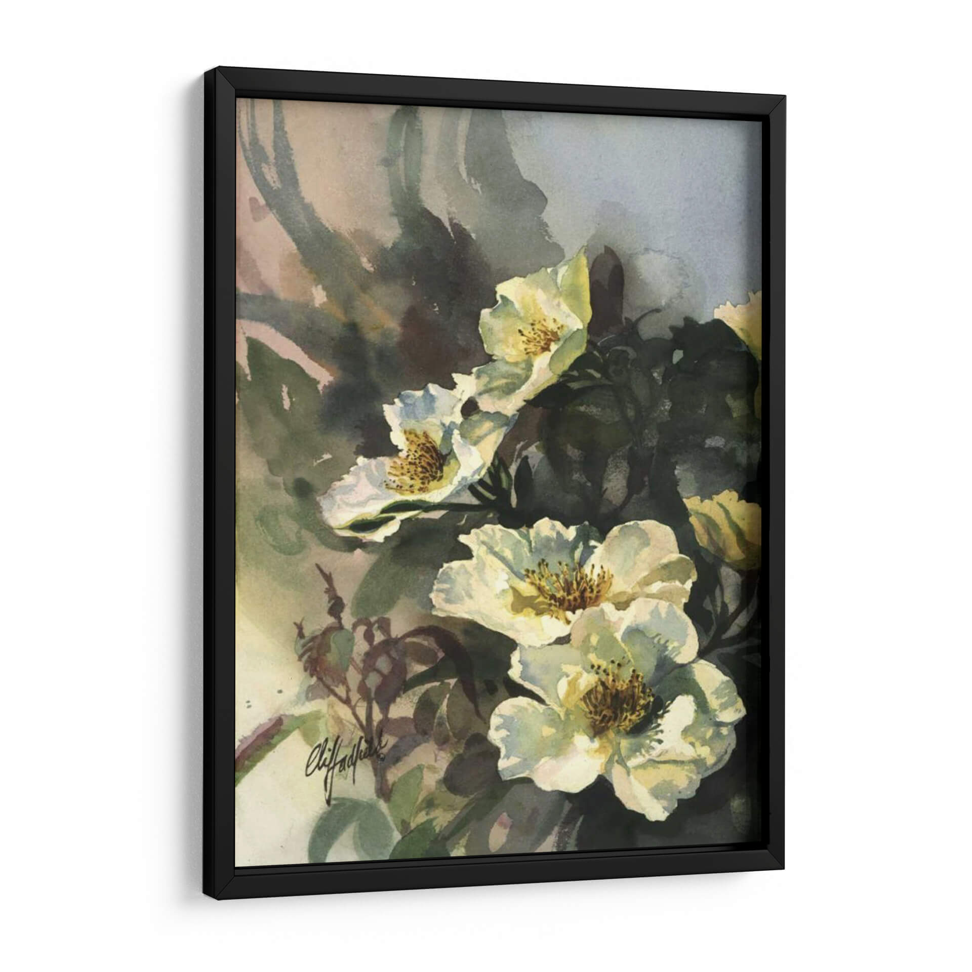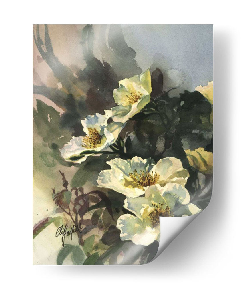 Sumérgete en la delicadeza y belleza atemporal de "Hadfield Roses II", una obra de arte que captura la esencia de las rosas con una maestría acuarela excepcional. Este cuadro decorativo presenta un grupo de rosas blancas y amarillas en plena floración, con sus pétalos suaves y texturizados que invitan a la contemplación. El artista, Clif Hadfield, utiliza una paleta de colores sutil y armoniosa, donde los tonos verdes profundos del follaje contrastan elegantemente con la luminosidad de las flores. La técnica de acuarela aporta una cualidad etérea y fluida a la composición, creando un ambiente de serenidad y calma. Las sombras y luces se manejan con exquisitez, dando profundidad y volumen a cada pétalo y hoja. Esta pieza es perfecta para añadir un toque de naturaleza y sofisticación a cualquier espacio, ya sea un dormitorio tranquilo, una sala de estar luminosa o una oficina que busque inspiración. Su estilo clásico pero fresco la convierte en una adición versátil para decoraciones modernas o tradicionales. Imagina la frescura y el encanto que este cuadro puede aportar a tu hogar, transformando tu pared en un jardín de paz y belleza. Ideal para amantes de la botánica y del arte floral, "Hadfield Roses II" es una invitación a disfrutar de la belleza efímera de la naturaleza capturada para siempre.