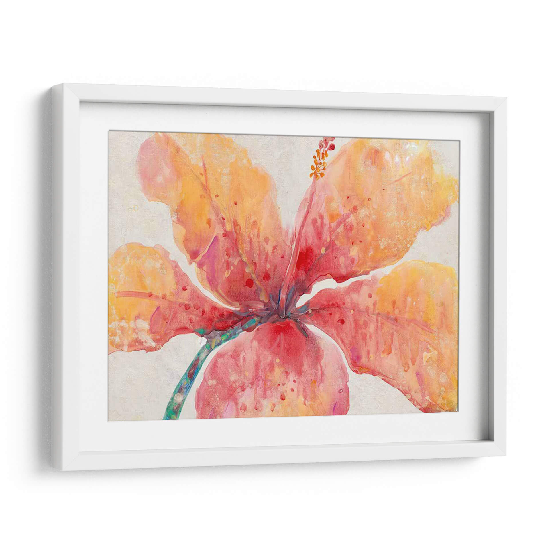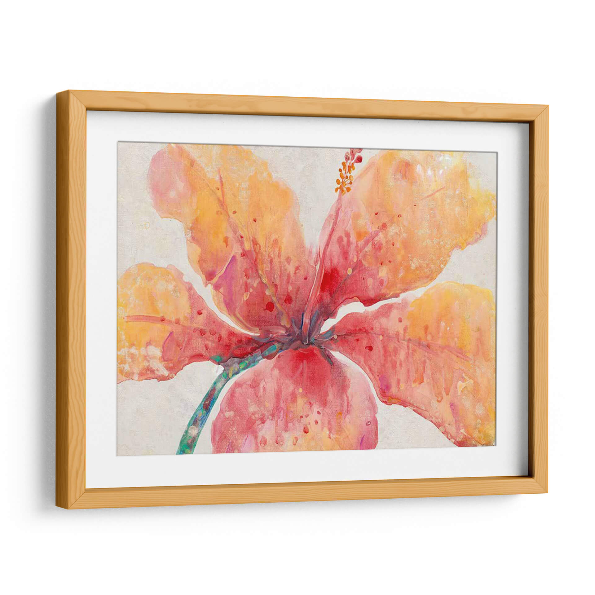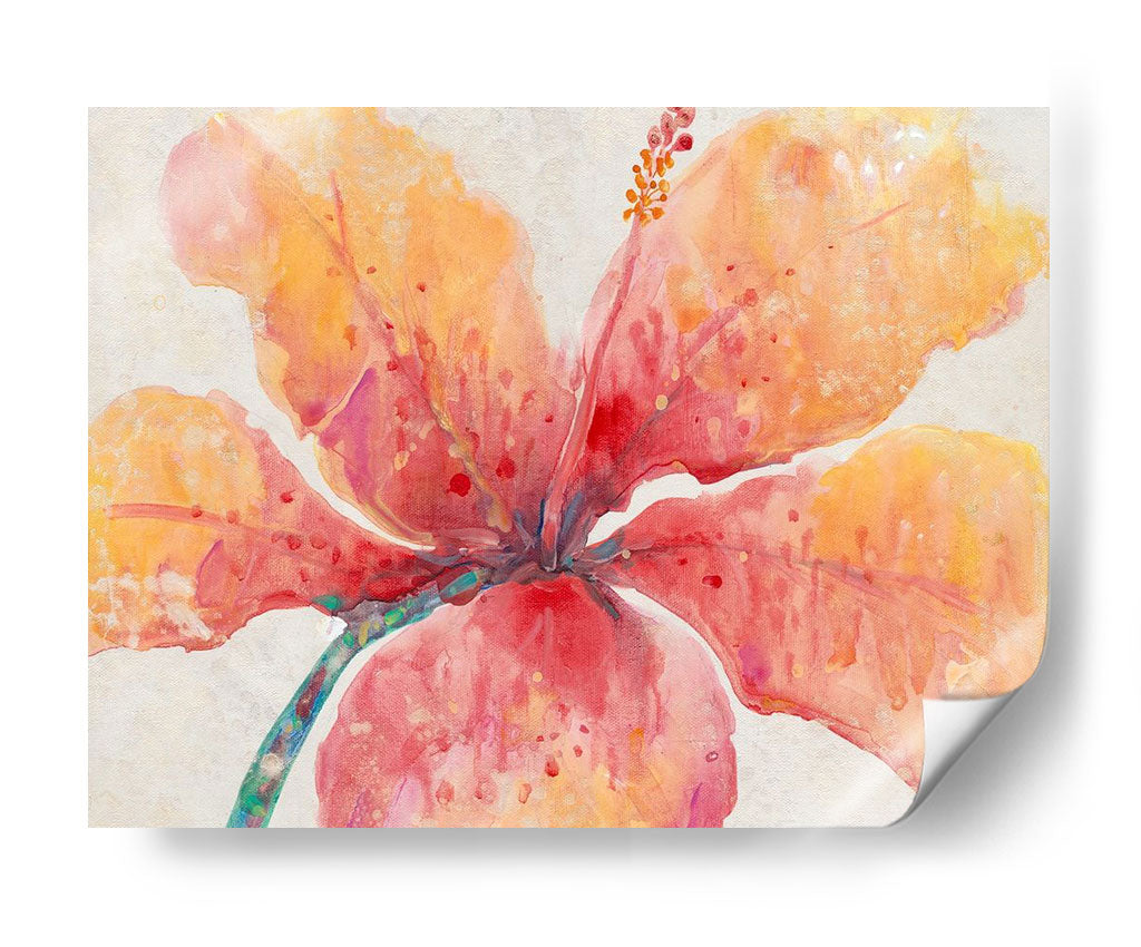 Embellece tu hogar con el cautivador cuadro decorativo "Hibisco Floreciente", una obra maestra de Tim O'Toole que captura la esencia vibrante de la naturaleza. Este impresionante cuadro presenta un primer plano de un hibisco en plena floración, con pétalos que se despliegan en una cascada de tonos cálidos que van desde el coral profundo y el rosa intenso hasta el naranja brillante y el amarillo dorado. La técnica acuarela evoca una sensación etérea y delicada, con salpicaduras y matices que añaden profundidad y textura. El fondo neutro y texturizado realza la belleza de la flor, permitiendo que cada detalle resalte y se convierta en el punto focal de cualquier habitación. "Hibisco Floreciente" es más que una simple pieza decorativa; es una invitación a la alegría y la vitalidad. Su atmósfera radiante y sus colores vivos lo convierten en el complemento perfecto para salas de estar modernas, dormitorios serenos o incluso espacios de oficina que buscan un toque de frescura y optimismo. Este cuadro decorativo es ideal para quienes aprecian el arte floral contemporáneo y desean infundir sus espacios con energía positiva y belleza natural. Añade un toque de primavera y exuberancia a tu decoración con esta exquisita representación artística.