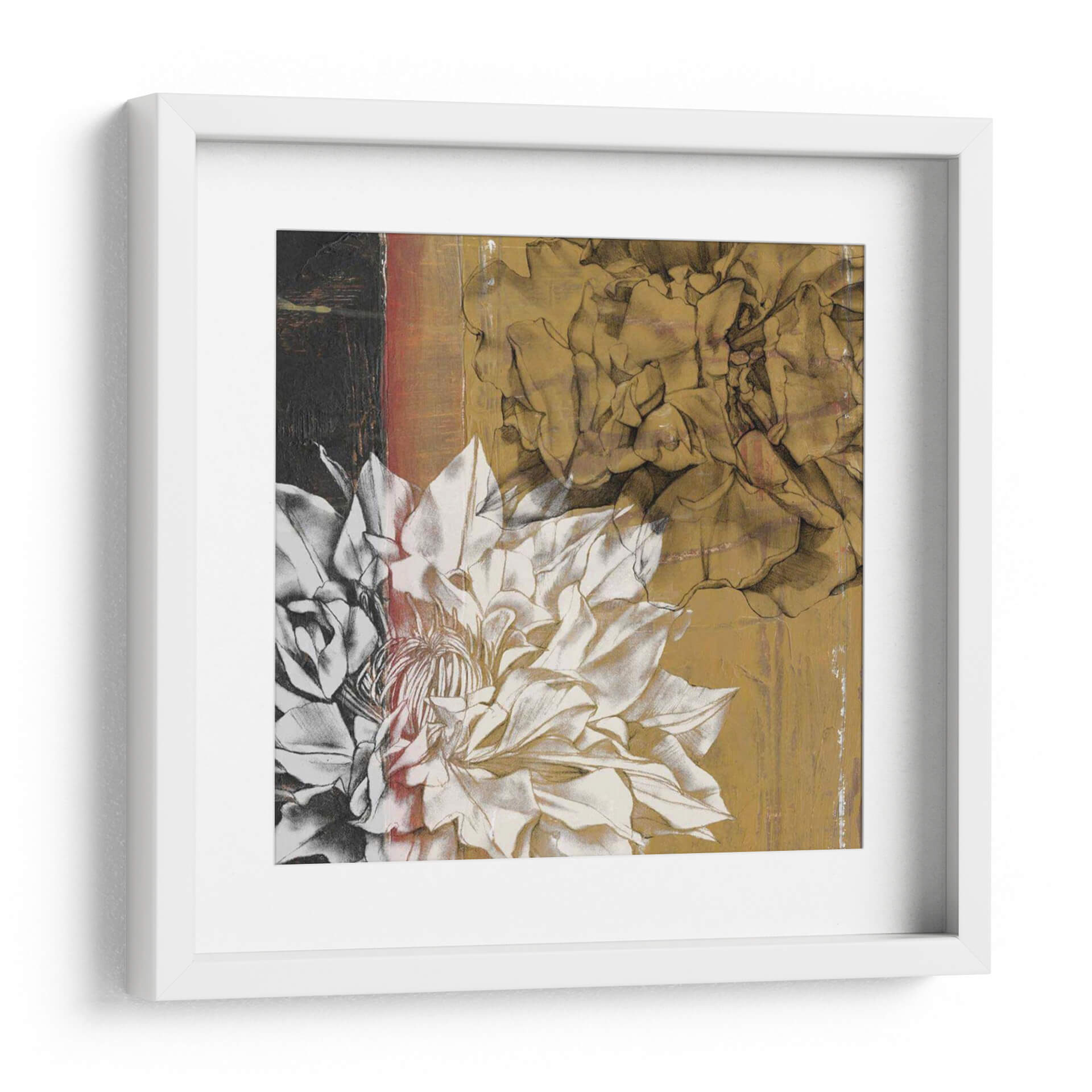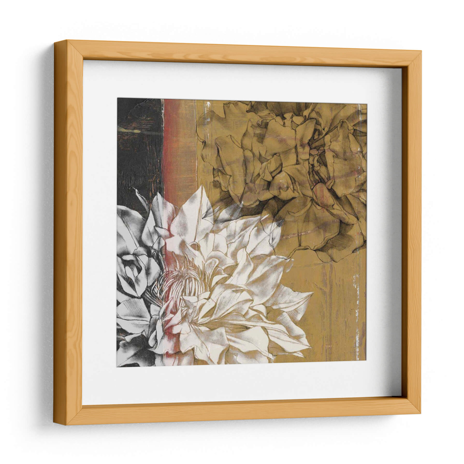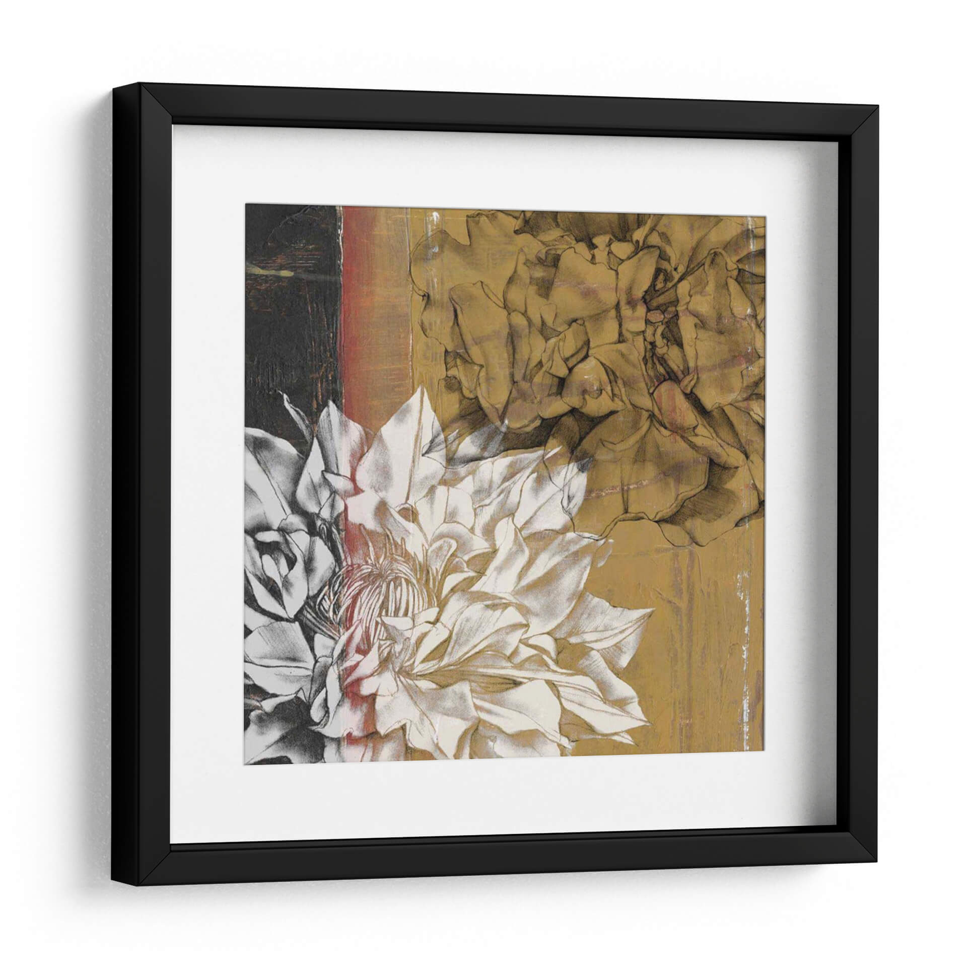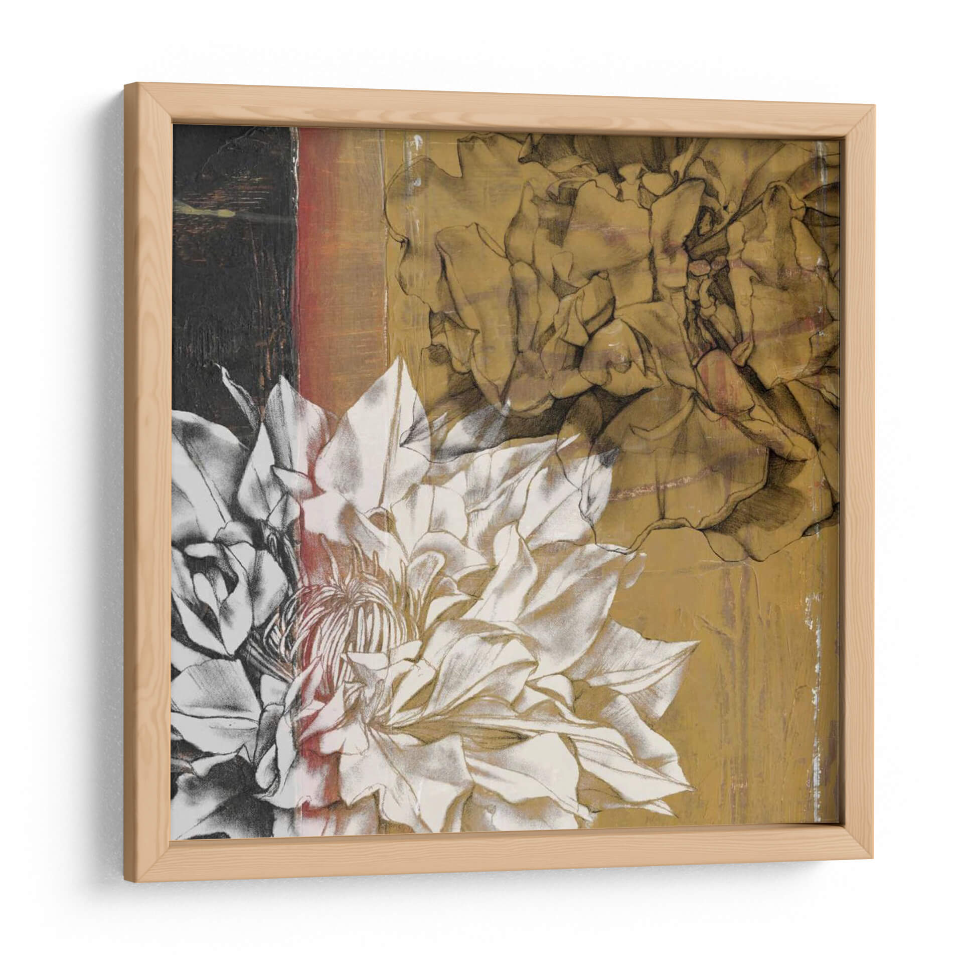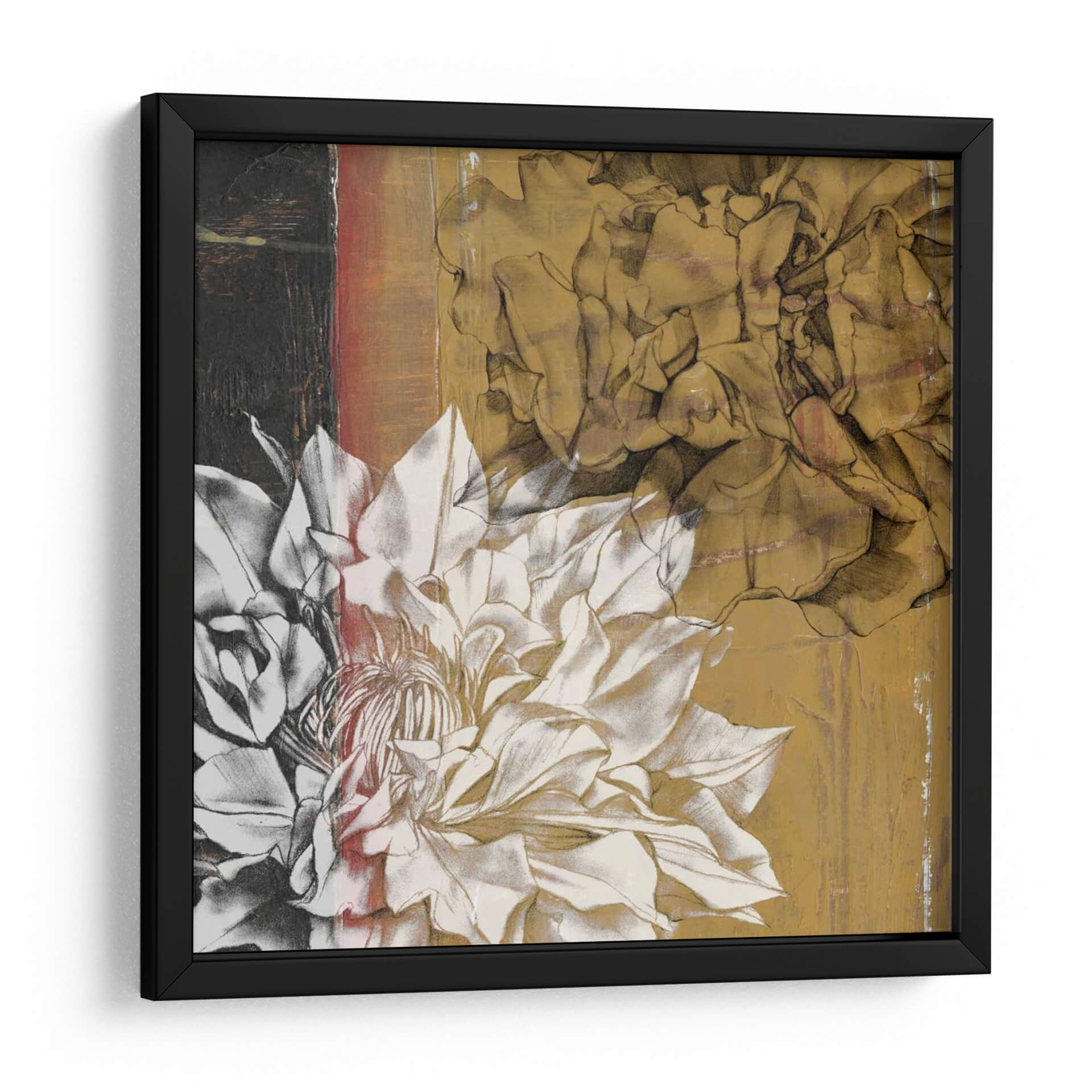 Sumérgete en la delicada belleza de "Ilusión De Flores I", una cautivadora obra de arte de Jennifer Goldberger que transforma lo floral en una experiencia visual etérea. Este cuadro decorativo presenta un estudio detallado de capullos y pétalos, capturados con un trazo que evoca tanto la precisión botánica como la suavidad del dibujo a mano alzada. La paleta de colores, dominada por tonos ocre, dorados, negros y toques de rojo, crea una atmósfera rica y sofisticada, capaz de aportar profundidad y calidez a cualquier estancia. La composición juega con el contraste entre las flores representadas en blanco y negro, y aquellas que se funden en un cálido tono sepia, generando una intrigante sensación de ilusión y movimiento. Ideal para quienes buscan añadir un toque de elegancia atemporal y un punto focal artístico a su sala de estar, dormitorio o estudio, este cuadro inspira tranquilidad y admiración. "Ilusión De Flores I" no es solo una decoración, sino una invitación a contemplar la belleza efímera de la naturaleza a través de una perspectiva contemporánea y artística, perfecta para coleccionistas y amantes del arte que aprecian la maestría técnica y la expresión emocional.