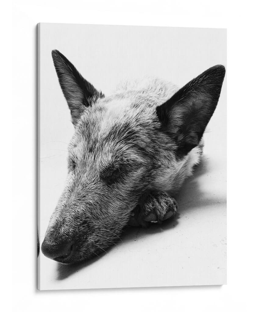 Captura la esencia de la tranquilidad y la conexión animal con "Indiana", un cuadro decorativo que inmortaliza un momento íntimo y sereno. Esta obra, a través de un retrato en blanco y negro de un perro con los ojos cerrados, evoca una profunda sensación de paz y confianza. La detallada textura del pelaje y la delicada pose del animal invitan a la contemplación, transformando cualquier espacio en un refugio de calma. El estilo fotográfico, con un enfoque limpio y minimalista, resalta la belleza de la simplicidad y la profundidad emocional. Los sutiles contrastes de luz y sombra añaden una dimensión melancólica y reflexiva a la pieza, haciéndola ideal para dormitorios, estudios o cualquier rincón donde se busque un toque de serenidad y una conexión con la naturaleza. "Indiana" no es solo una decoración, sino una ventana a la empatía y al amor incondicional que nos brindan nuestros compañeros caninos, aportando un aire de sofisticación y calidez atemporal a tu hogar u oficina.