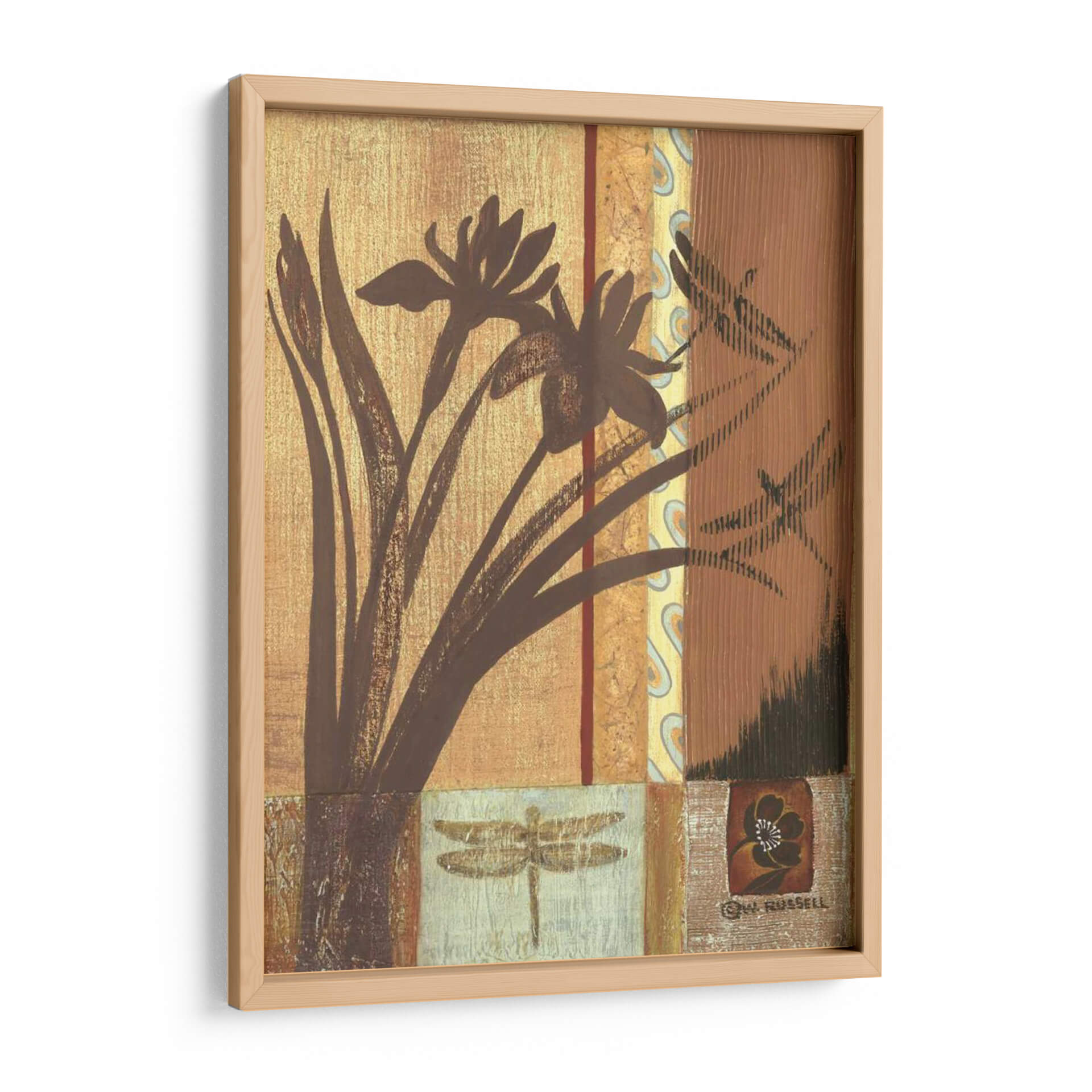 Sumérgete en la serenidad y la elegancia natural con este cautivador cuadro decorativo de 'Iris Asiático', una obra maestra de Wendy Russell. La pieza presenta una silueta estilizada de iris en tonos oscuros y terrosos, contrastando armoniosamente con un fondo texturizado que evoca la calidez de la naturaleza. La composición se enriquece con sutiles detalles de libélulas, elementos que aportan una sensación de movimiento y tranquilidad al conjunto. La paleta de colores, dominada por ocres, marrones y acentos sutiles de rojo y azul pálido, crea una atmósfera de calma y sofisticación, ideal para cualquier espacio que busque un toque de distinción orgánica. El estilo, una mezcla de arte botánico estilizado y abstracción, permite que la obra sea versátil, adaptándose a decoraciones contemporáneas, rústicas o de inspiración asiática. Este cuadro decorativo no solo embellece tu hogar u oficina, sino que también invita a la contemplación y al disfrute de la belleza efímera de la naturaleza. Es una adición perfecta para salas de estar, dormitorios o estudios, aportando un aire de paz y refinamiento.