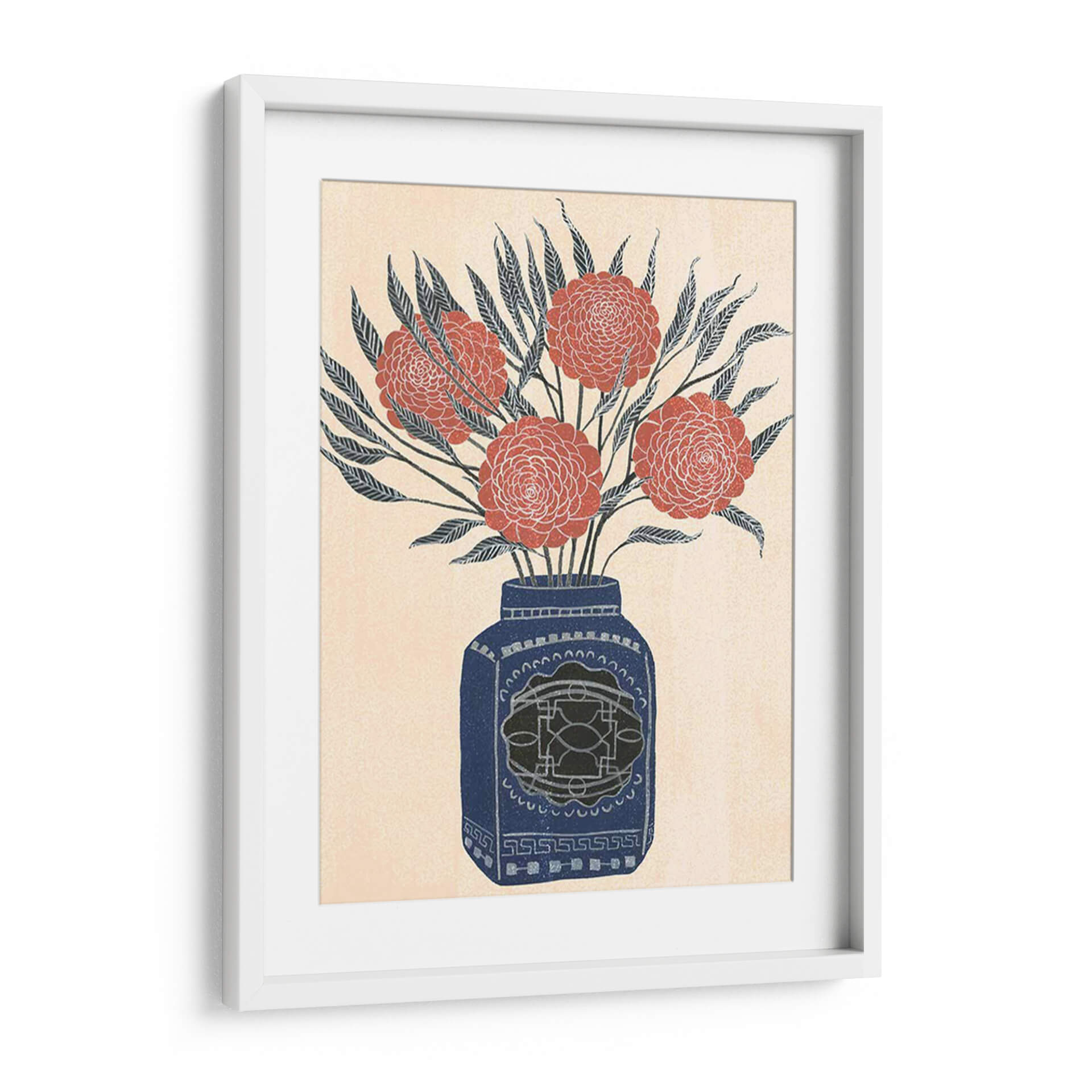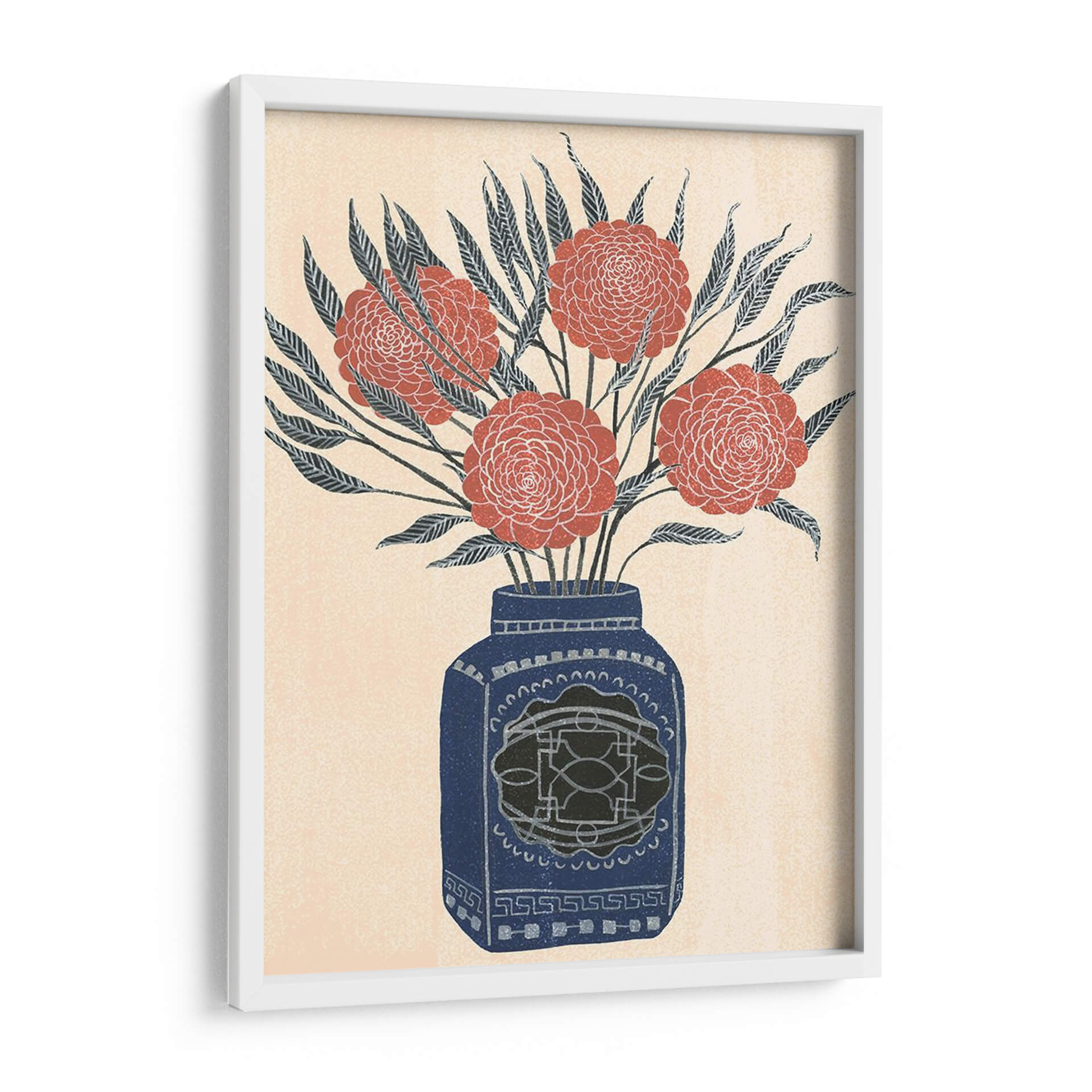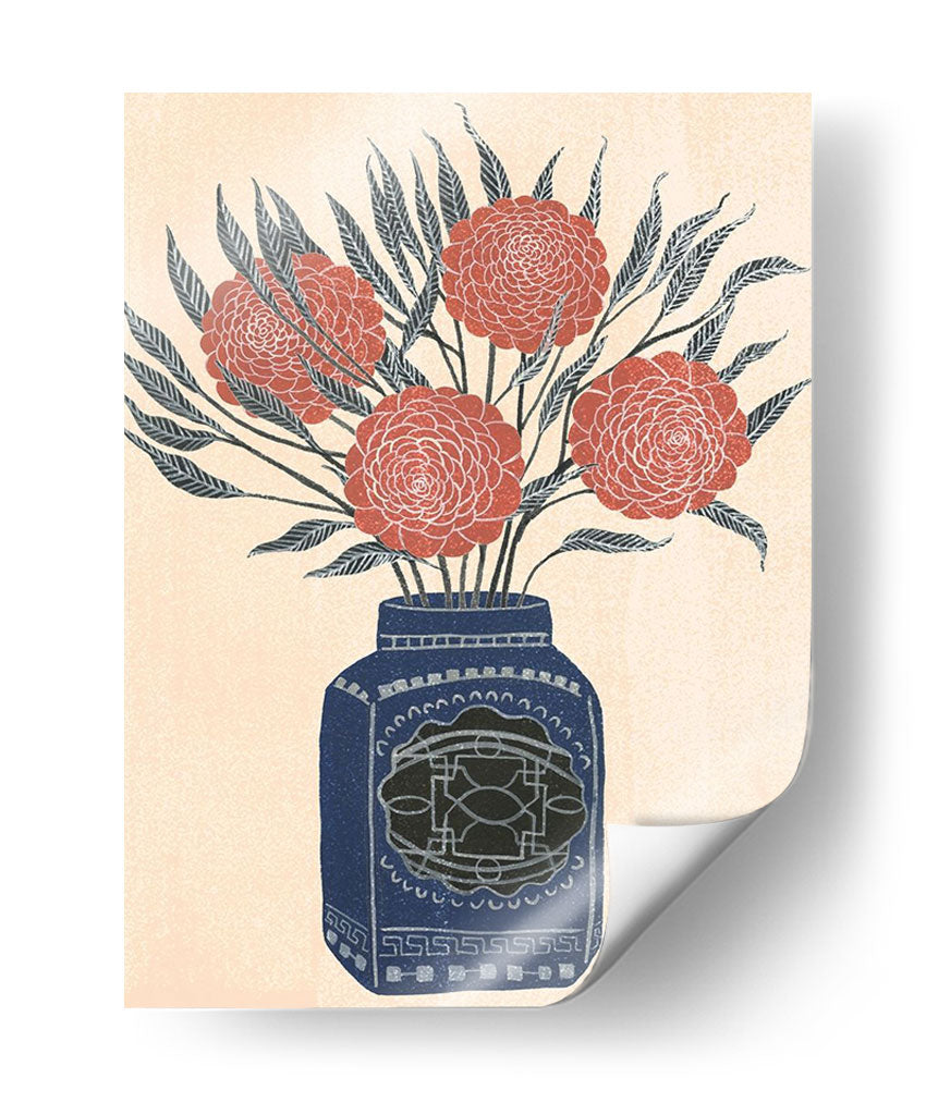 Inyecta vida y elegancia a tu espacio con "Jarrón De Flores Iv", una cautivadora obra de arte de Melissa Wang que celebra la belleza atemporal de la naturaleza. Este cuadro decorativo presenta un vibrante arreglo floral en tonos rojizos y coral, enmarcado por un follaje de un profundo azul índigo, todo ello contenido en un jarrón de cerámica azul ricamente decorado con patrones intrincados y un aire de sofisticación oriental. La paleta de colores cálidos de las flores contrasta sutilmente con el fondo neutro y el jarrón detallado, creando una composición visualmente rica que atrae la mirada y evoca una sensación de tranquilidad y aprecio por las formas orgánicas. El estilo, que combina elementos de arte botánico y un toque moderno, lo hace perfecto para añadir un punto focal de color y serenidad a salones, comedores o cualquier rincón que necesite un toque de refinamiento. "Jarrón De Flores Iv" no es solo una pieza decorativa, sino una invitación a disfrutar de la belleza del arte floral en tu hogar u oficina, aportando un aire de calma y una explosión de color que alegra el ambiente.