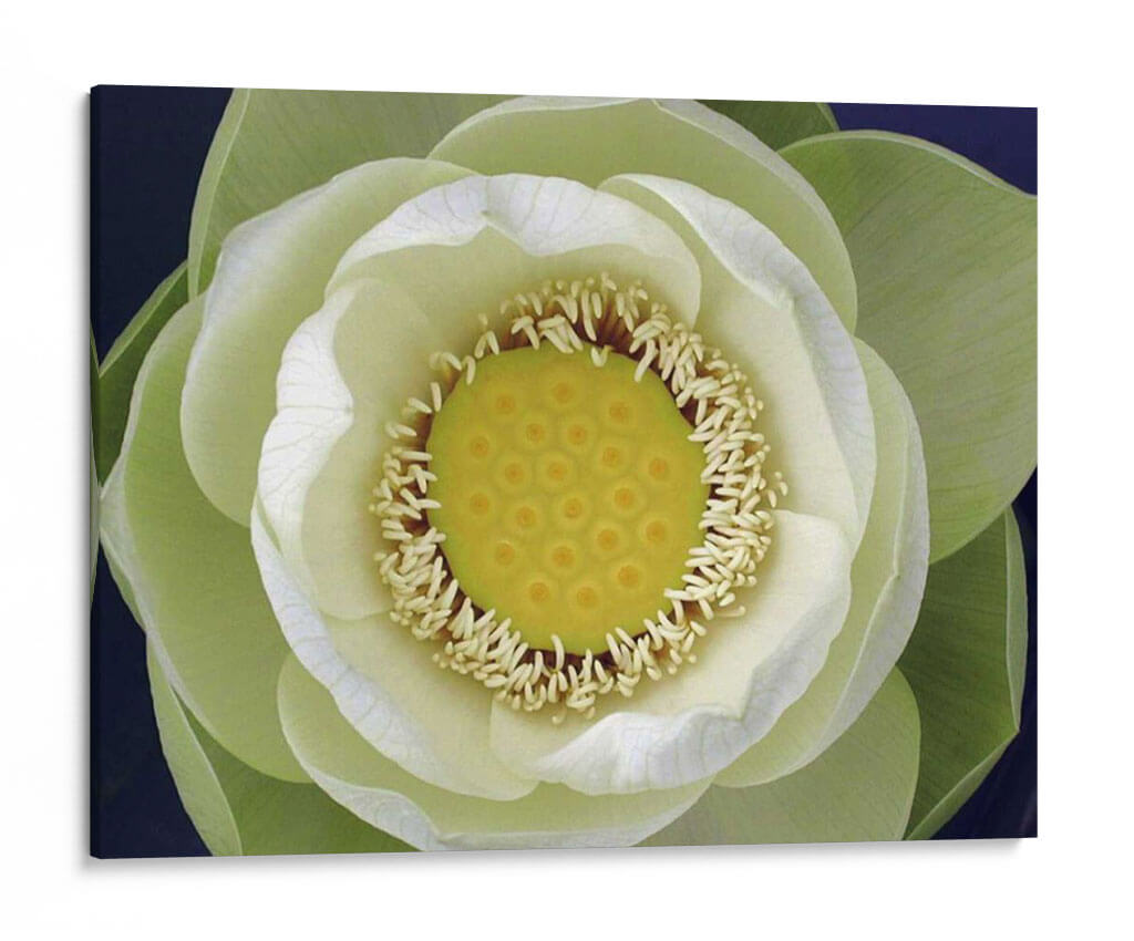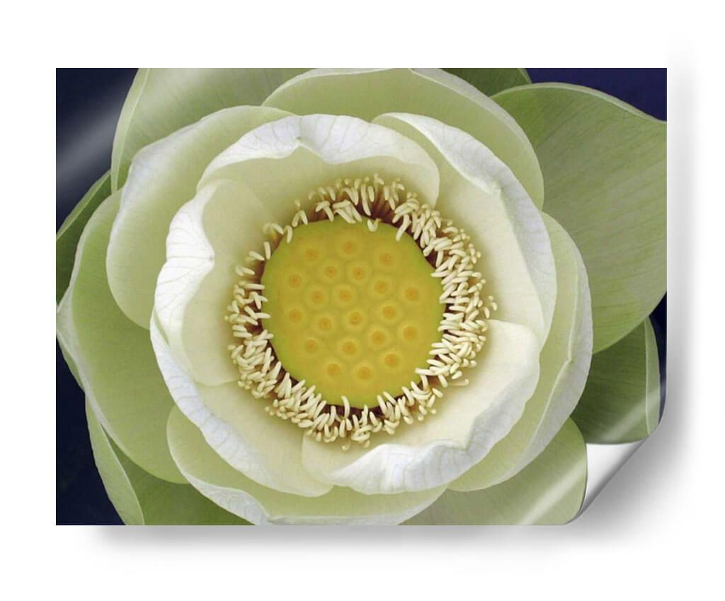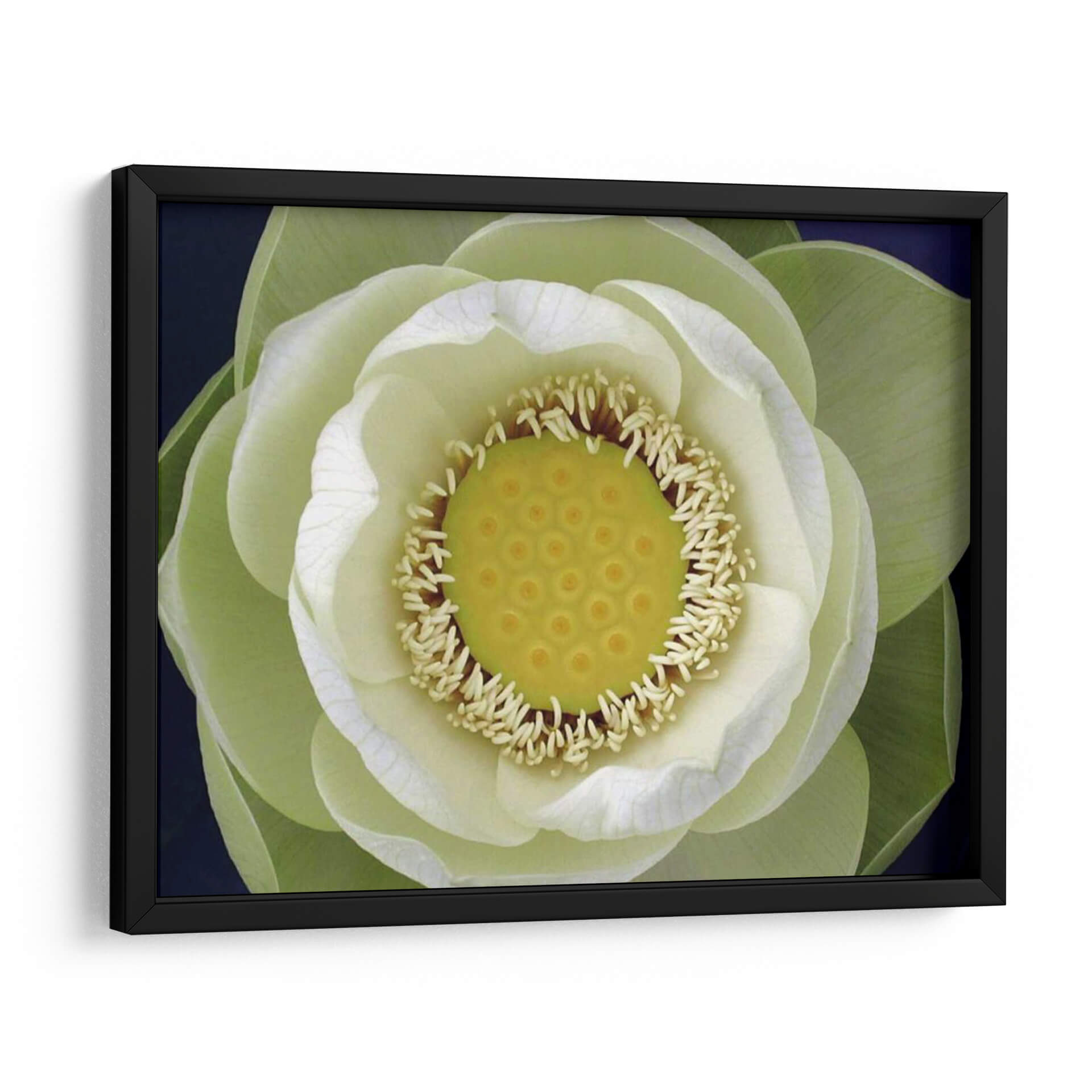 Sumérgete en la serenidad y la belleza natural con 'Loto Delicado II', una obra de arte que captura la esencia de esta flor emblemática. El primer plano nos revela la intrincada estructura de un loto en plena floración, con sus pétalos blancos y suaves que se abren en un despliegue armonioso. El centro vibrante, de un amarillo intenso y salpicado de estambres delicados, irradia una energía vital y una sensación de pureza. La paleta de colores, dominada por blancos cremosos, verdes pálidos y un contraste profundo del fondo oscuro, crea una atmósfera de calma y contemplación. Este cuadro decorativo es ideal para quienes buscan infundir tranquilidad y elegancia en su hogar u oficina. Su composición detallada y su estética refinada lo convierten en una pieza versátil, perfecta para espacios que apelan a la serenidad y al bienestar. Añade un toque de naturaleza y sofisticación a cualquier habitación con este cautivador cuadro de flor de loto, diseñado para inspirar paz y conexión.