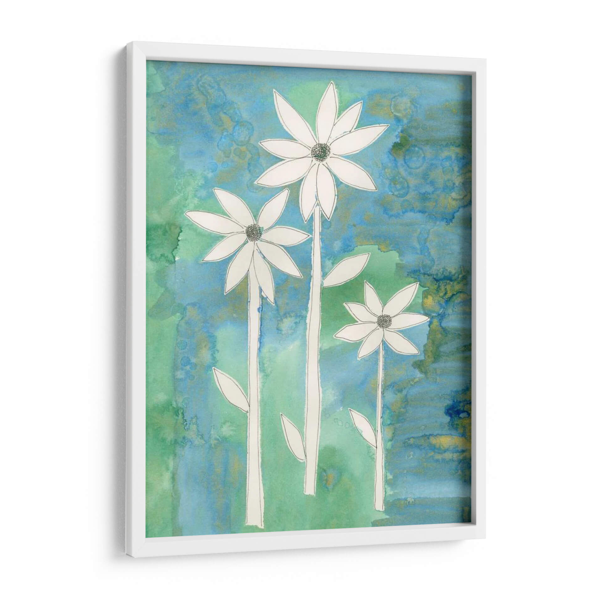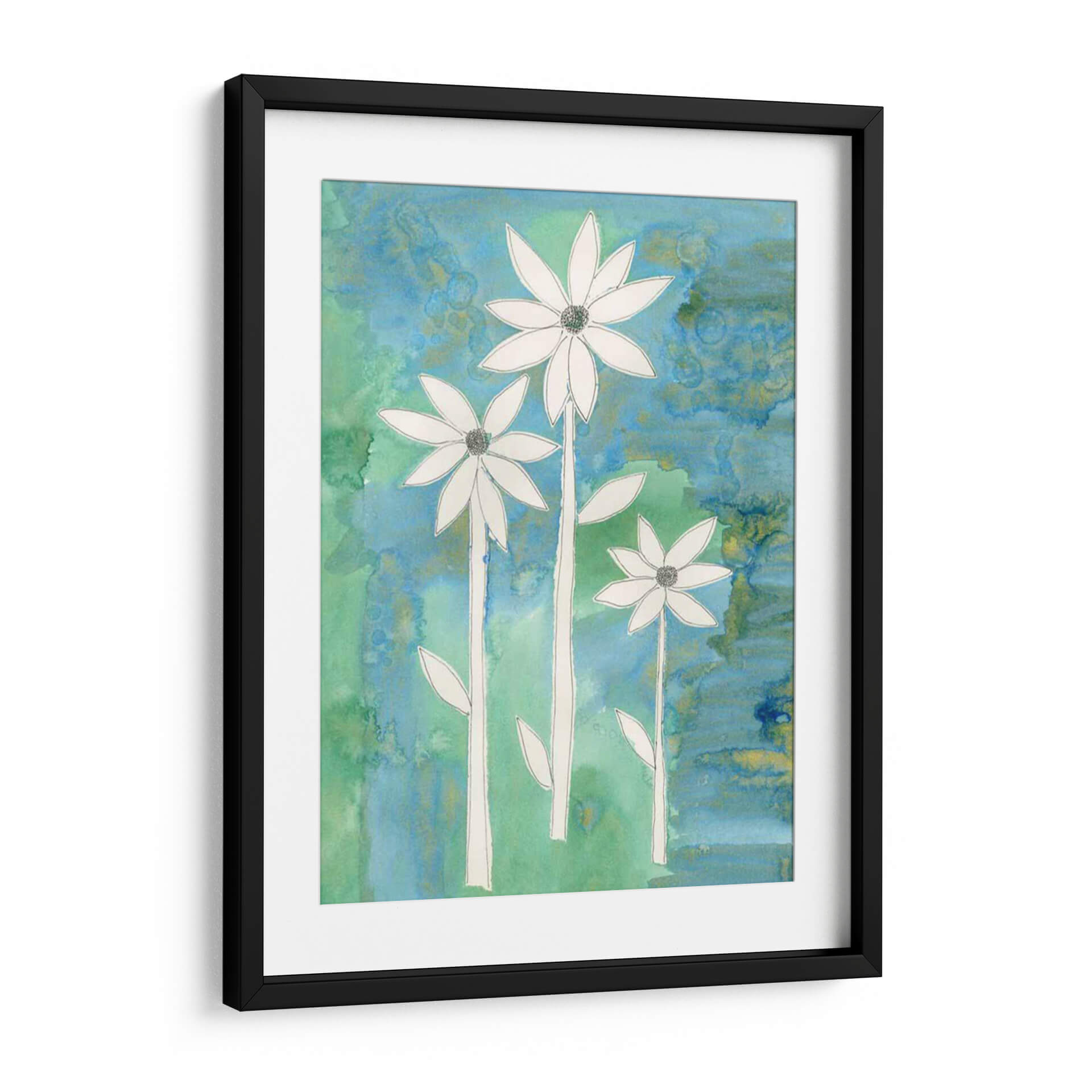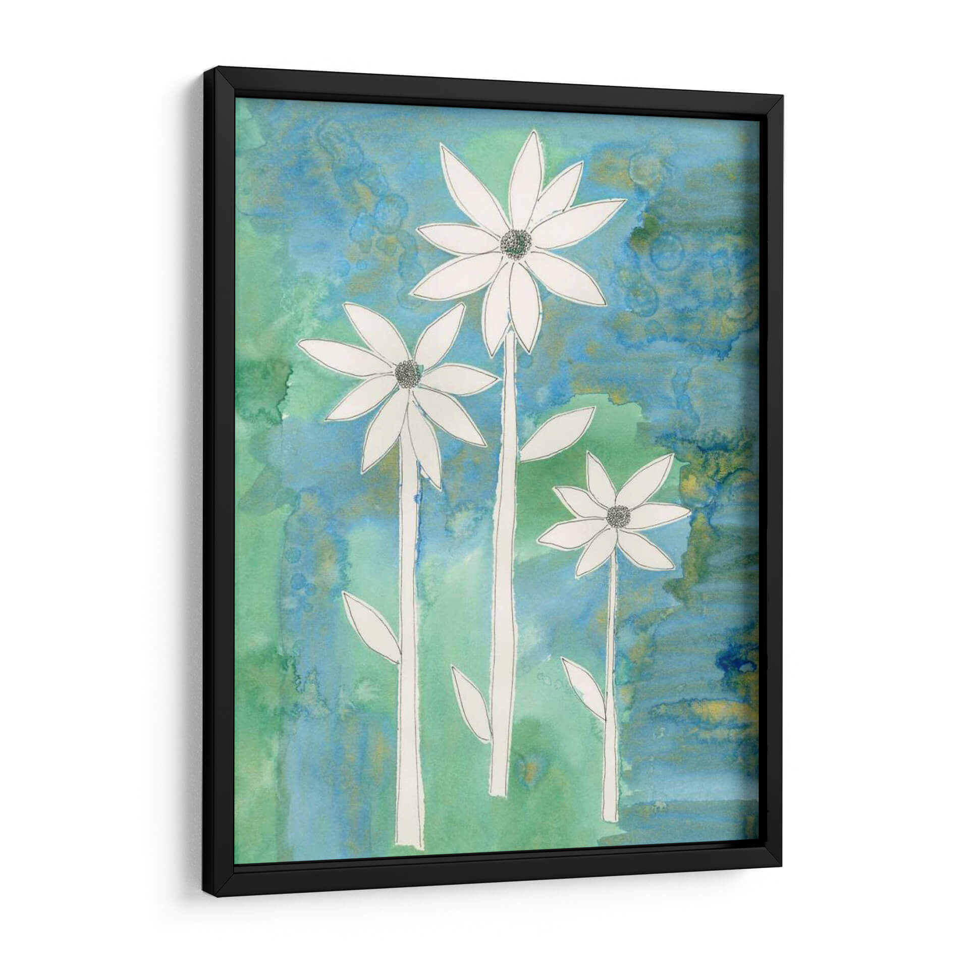 Emb uevo en un viaje visual con "Margaritas Delicadas II", una obra de arte cautivadora de Alicia Ludwig. Este cuadro decorativo abstracto transporta a un oasis de serenidad con su vibrante paleta de azules y verdes, evocando la frescura de un paisaje acuático. Tres delicadas margaritas blancas, con contornos nítidos y centros texturizados, se alzan con gracia sobre un fondo que recuerda a acuarelas fluidas y texturas orgánicas. La composición equilibrada y el estilo distintivo de Ludwig crean una atmósfera de calma y optimismo. Ideal para infundir tranquilidad en tu dormitorio, aportar un toque de naturaleza estilizada a tu sala de estar, o añadir un acento inspirador a tu espacio de trabajo. Esta pieza es perfecta para quienes buscan una decoración que combine la elegancia contemporánea con la belleza etérea de la flora, creando un punto focal que invita a la contemplación y al bienestar. Añade esta obra maestra floral a tu colección y transforma cualquier habitación en un refugio de paz y estilo.