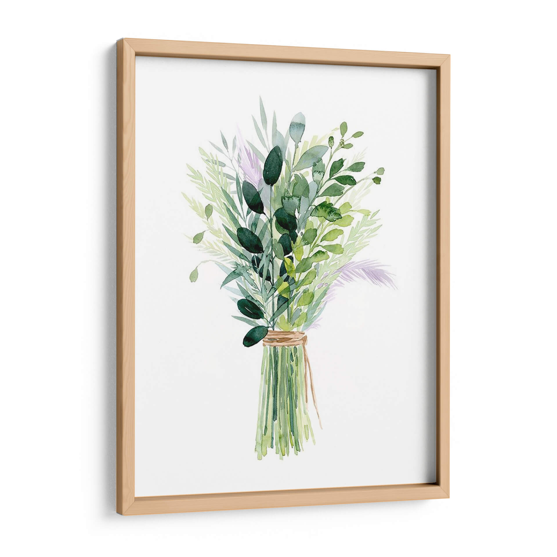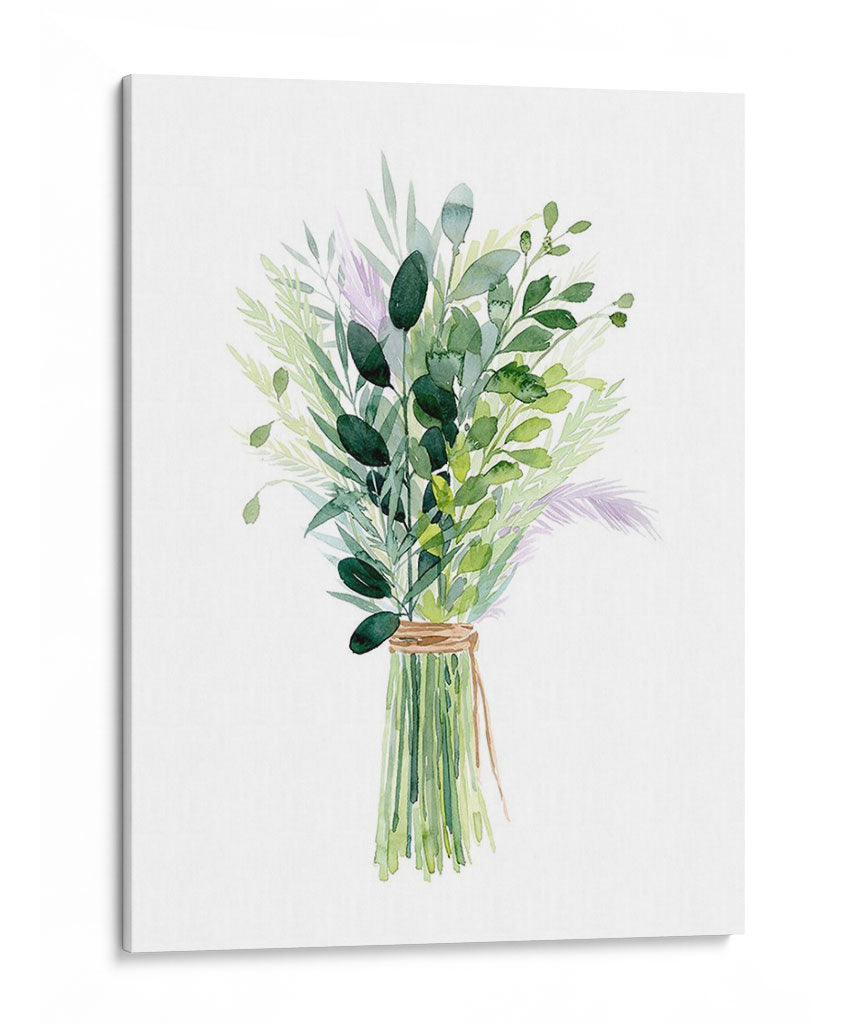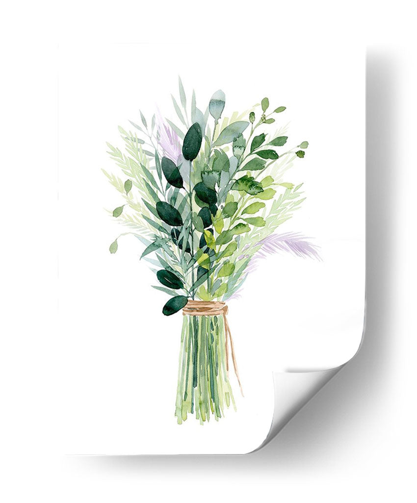 Sumérgete en la serenidad natural con 'Nature Myriad II', una obra de arte que captura la esencia botánica con una delicadeza exquisita. Este cuadro decorativo presenta un vibrante y armonioso ramo de follaje, donde verdes intensos y suaves se entrelazan con sutiles toques de lavanda, evocando la frescura de un jardín o un prado recién descubierto. La técnica de acuarela digital utilizada por Grace Popp aporta una ligereza etérea y una textura suave, haciendo que cada hoja y tallo parezcan danzar sobre el lienzo. La composición, centrada en este delicado arreglo floral atado con una cuerda rústica, transmite una sensación de calma, orden y conexión con la naturaleza. Es la pieza perfecta para infundir tranquilidad y un toque orgánico a cualquier espacio, desde un acogedor salón hasta una oficina minimalista o un sereno dormitorio. 'Nature Myriad II' es más que una simple decoración; es una invitación a la contemplación y un recordatorio diario de la belleza efímera del mundo natural, añadiendo vida y un soplo de aire fresco a tu hogar u oficina.