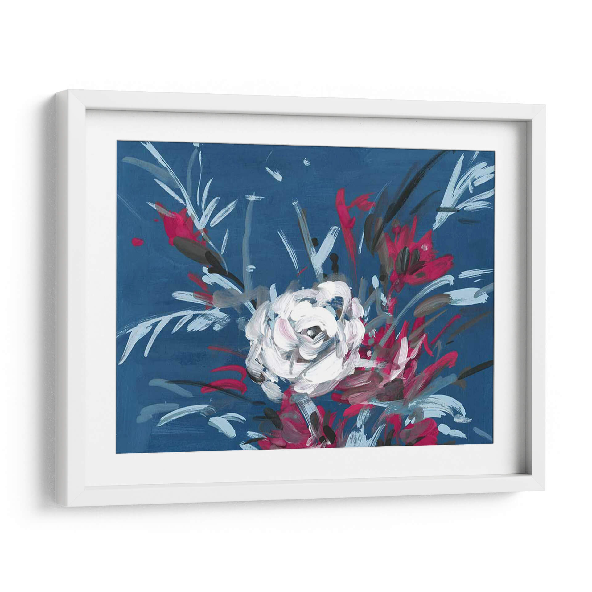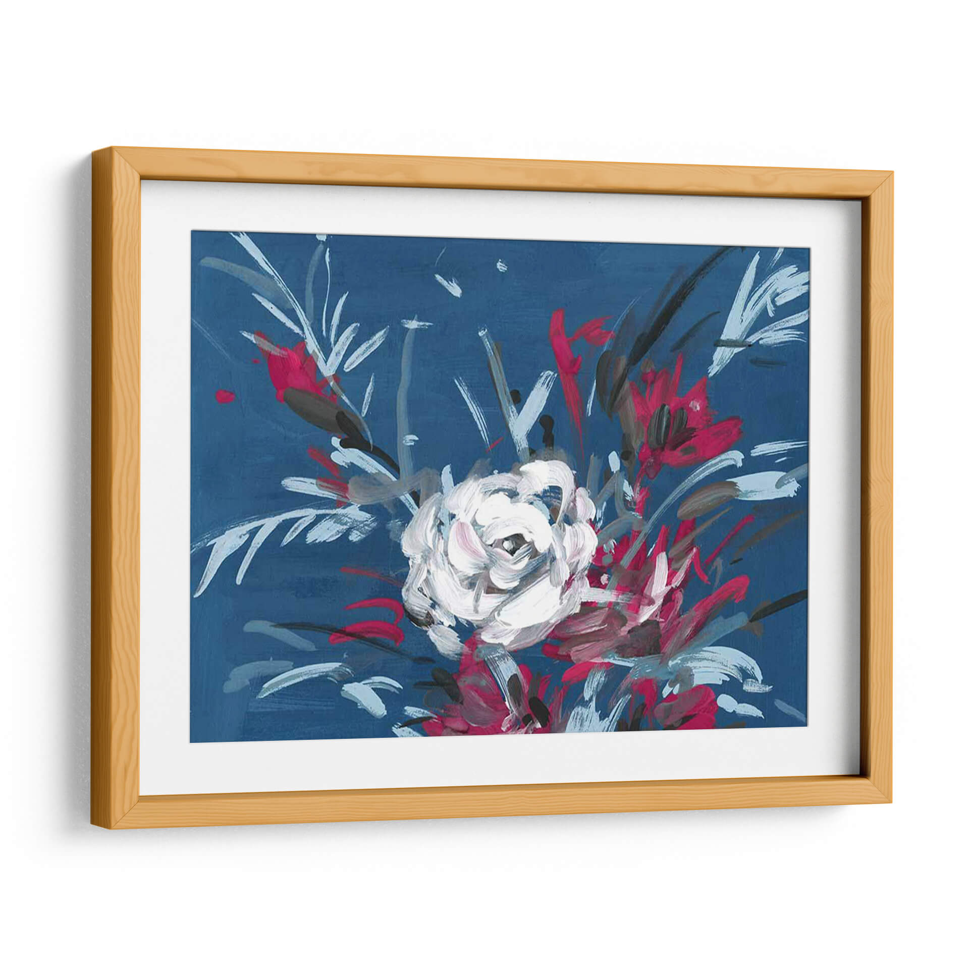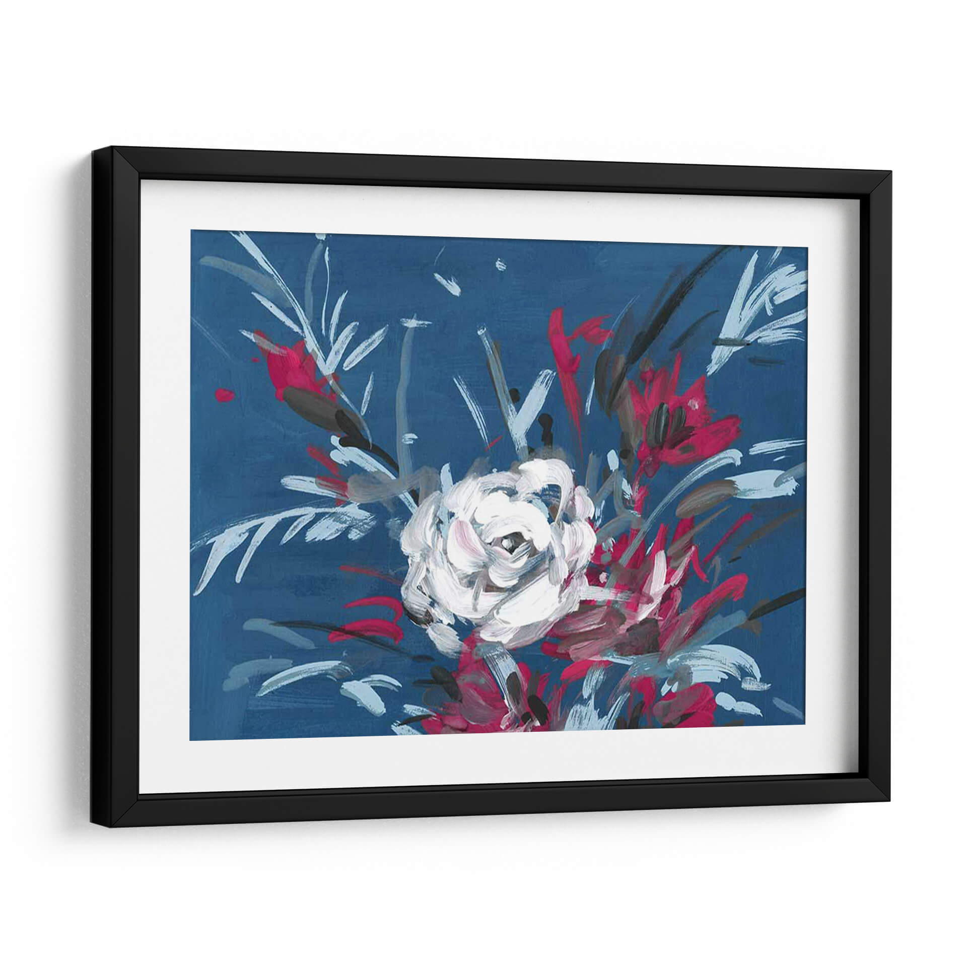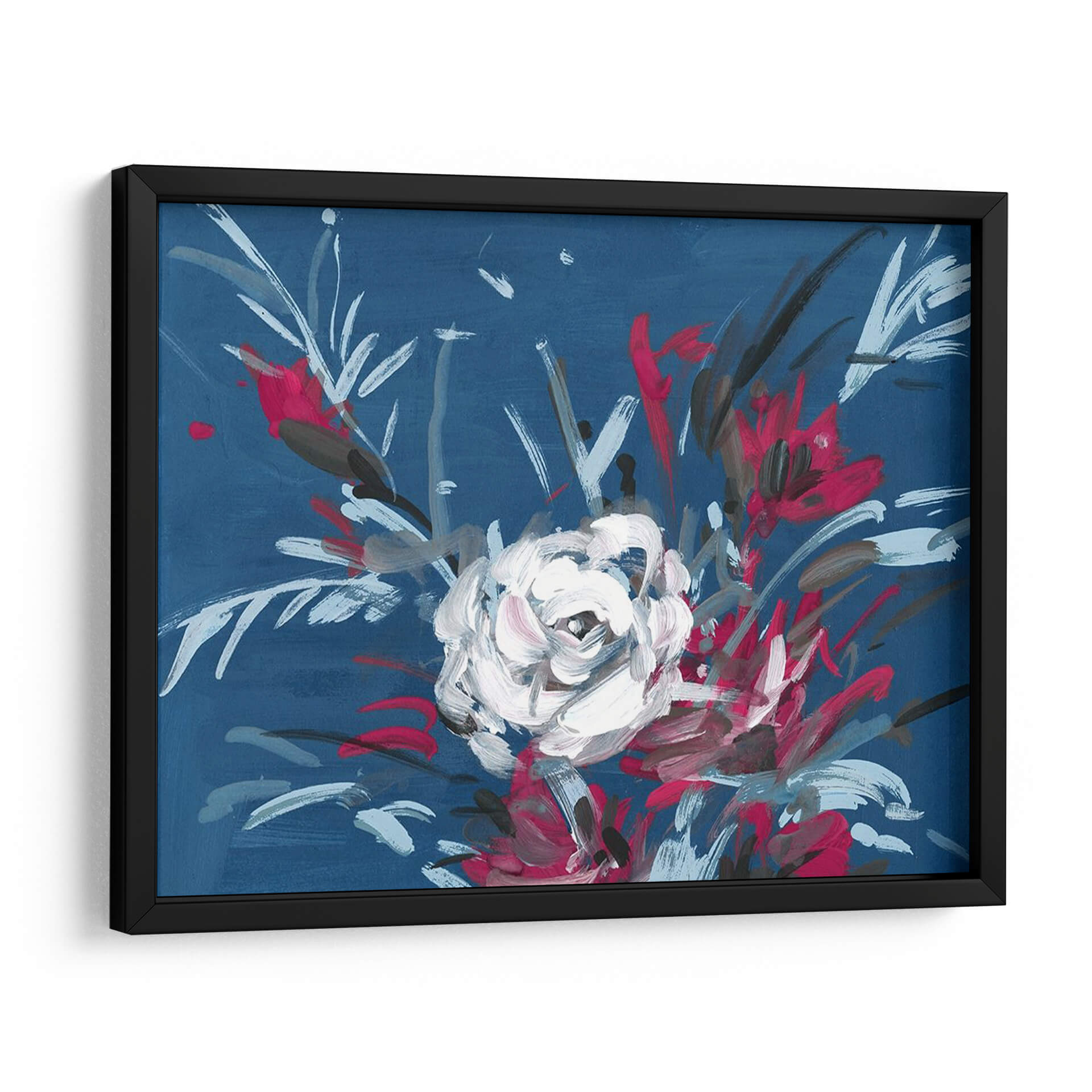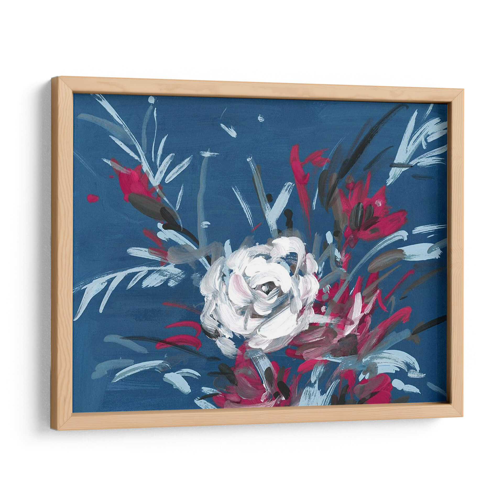 Sumérgete en la belleza etérea de 'Noche Floreciente Iv', una obra de arte contemporáneo de Melissa Wang que captura la delicadeza de las flores en plena efervescencia. Esta pieza se caracteriza por una paleta de colores vibrante, donde los profundos azules del fondo contrastan armoniosamente con los toques audaces de fucsia, blanco puro y grises sutiles. Las pinceladas expresivas y gestuales de Wang crean una sensación de movimiento y vida, dando forma a un capullo central blanco con una textura casi tangible, rodeado de pétalos y hojas que parecen danzar en la penumbra. Ideal para quienes buscan infundir un toque de sofisticación y vitalidad a sus espacios, este cuadro decorativo es perfecto para salones modernos, dormitorios acogedores o estudios creativos. Su estilo abstracto-floral permite una interpretación personal, evocando sensaciones de renovación, pasión y la belleza efímera de la naturaleza. Añade un punto focal distintivo y lleno de carácter a tu hogar con esta cautivadora obra de arte contemporáneo.