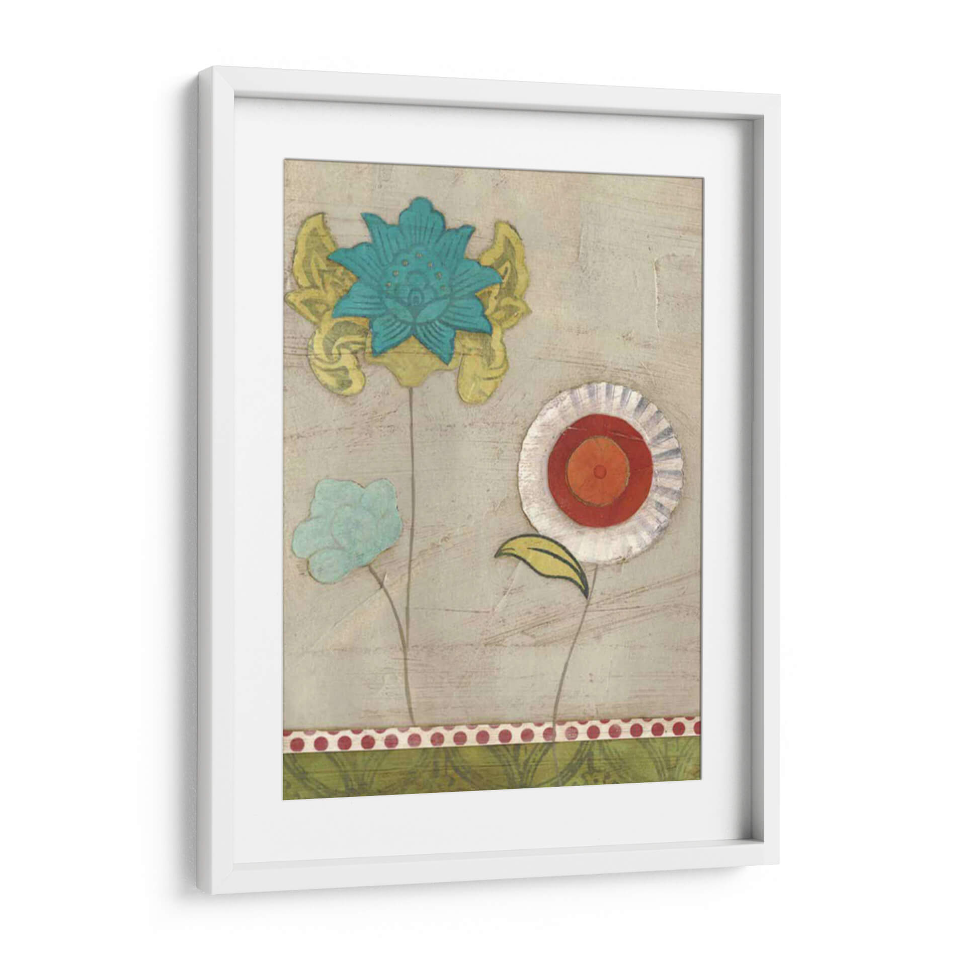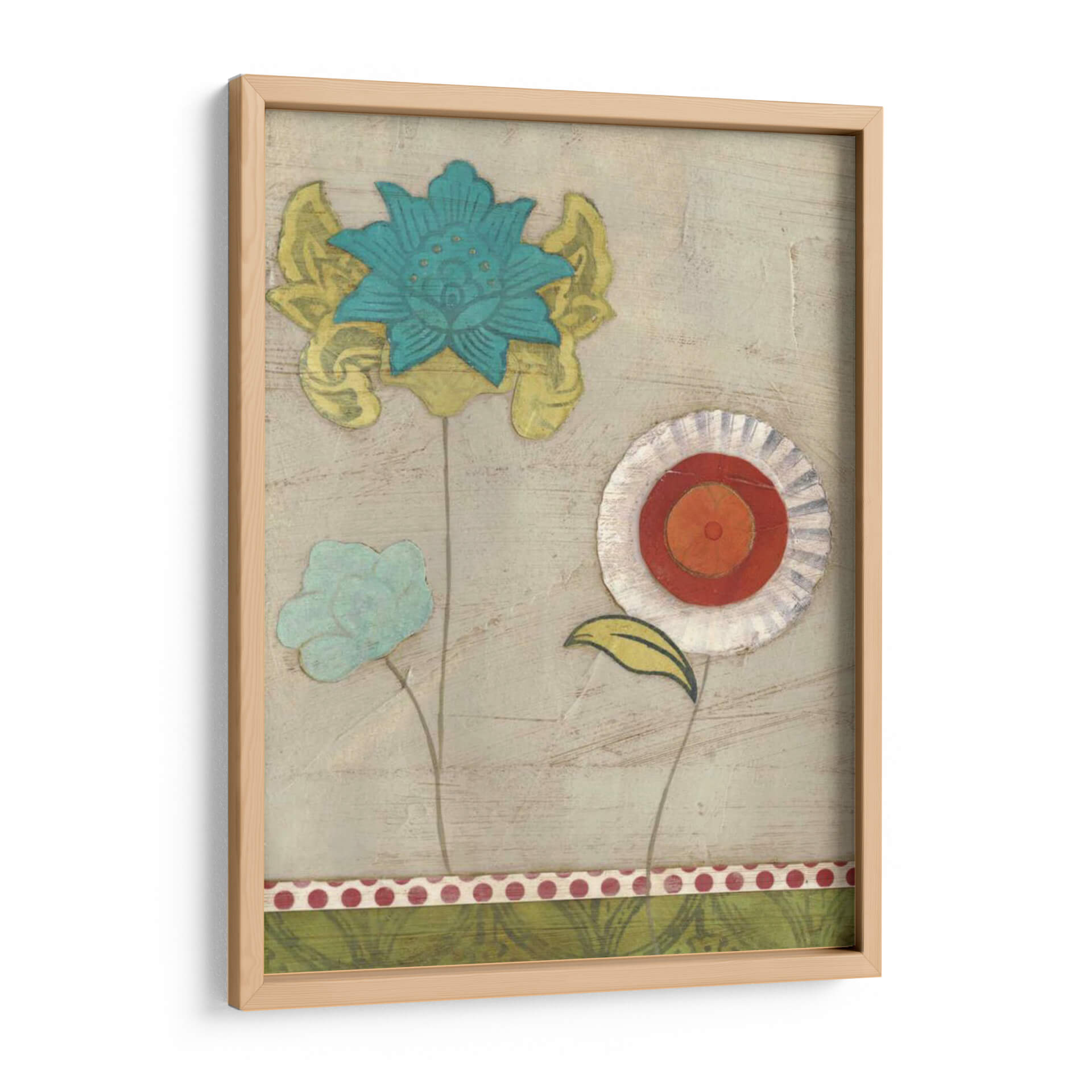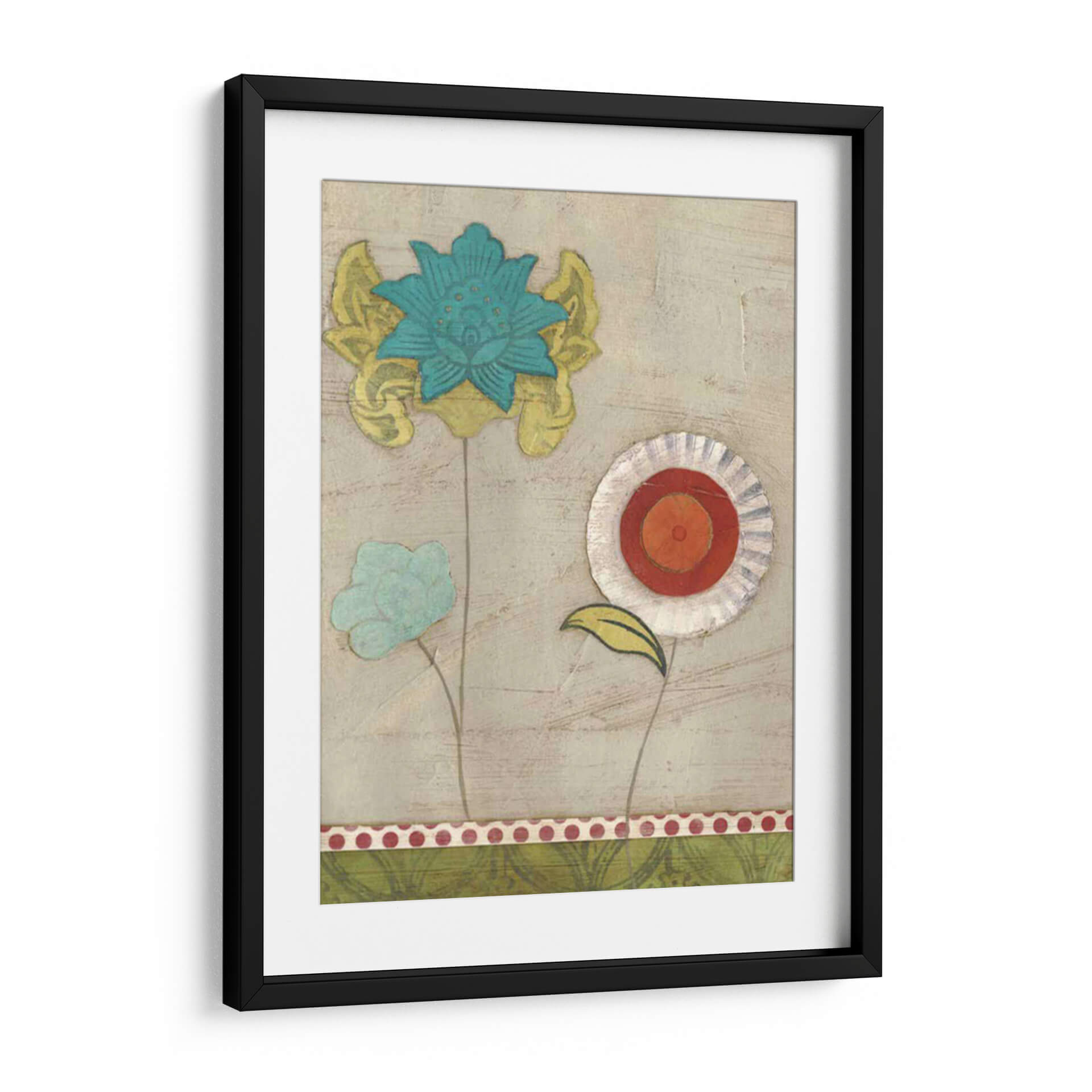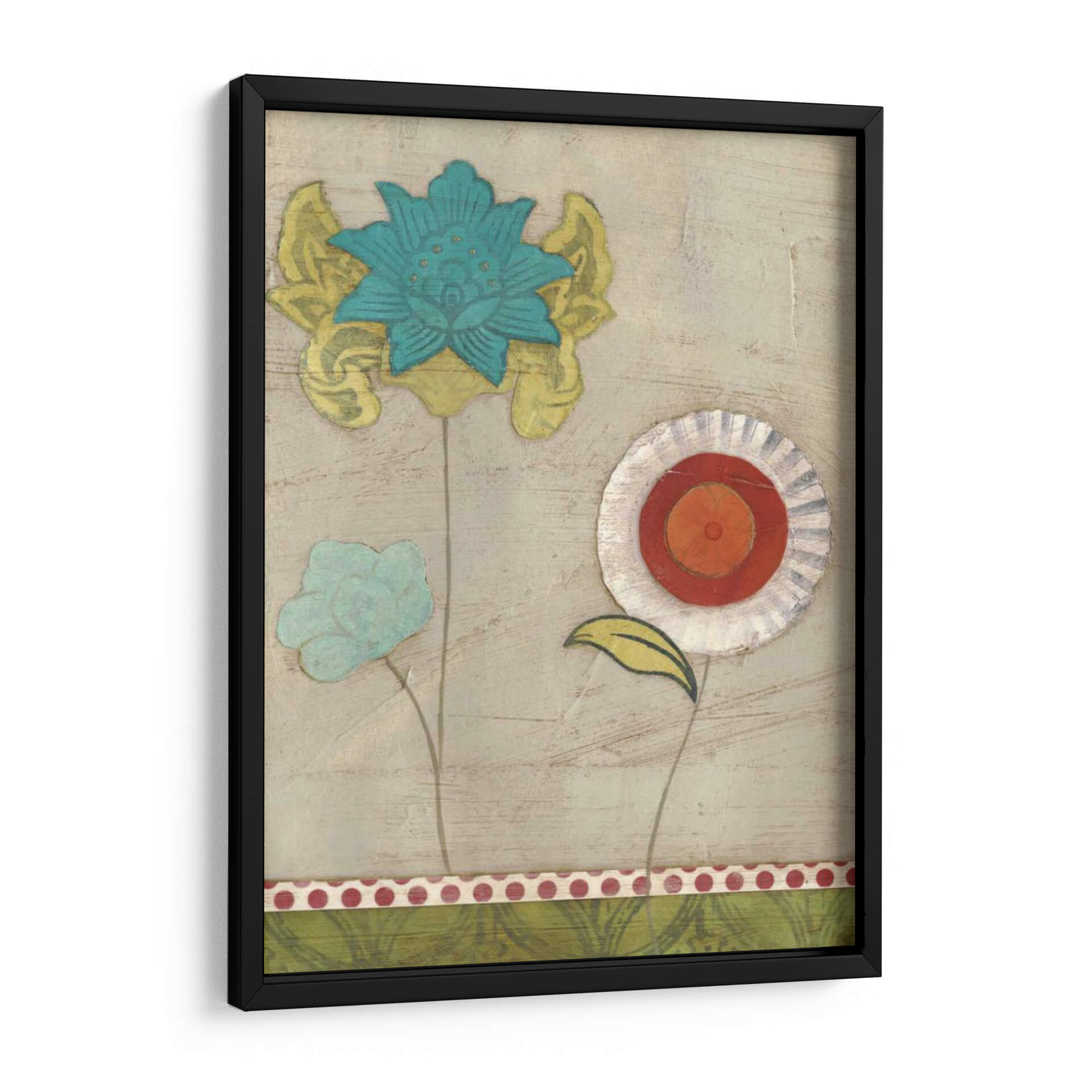 Descubre la delicadeza y el encanto de "Patrones De Pétalos I", una obra de arte contemporáneo que transforma tu espacio con su vibrante paleta y su diseño evocador. Esta pieza, creada por la talentosa June Erica Vess, presenta un cautivador arreglo floral con pétalos estilizados en tonos de azul turquesa, amarillo y toques de naranja y rojo, sobre un fondo texturizado en tonos neutros. La composición, que evoca una sensación de serenidad y alegría, es perfecta para añadir un toque de naturaleza y color a cualquier habitación. Los detalles intrincados de cada flor, con sus bordes distintivos y capas de color, invitan a la contemplación y añaden profundidad visual. Ideal para salones modernos, dormitorios acogedores u oficinas, este cuadro decorativo infunde vitalidad y un aire de frescura artística. Su estilo único y su ejecución magistral la convierten en una elección excepcional para quienes buscan piezas que inspiren y embellezcan, creando un ambiente cálido y acogedor. Añade esta joya artística a tu colección y deja que su belleza florezca en tu hogar.