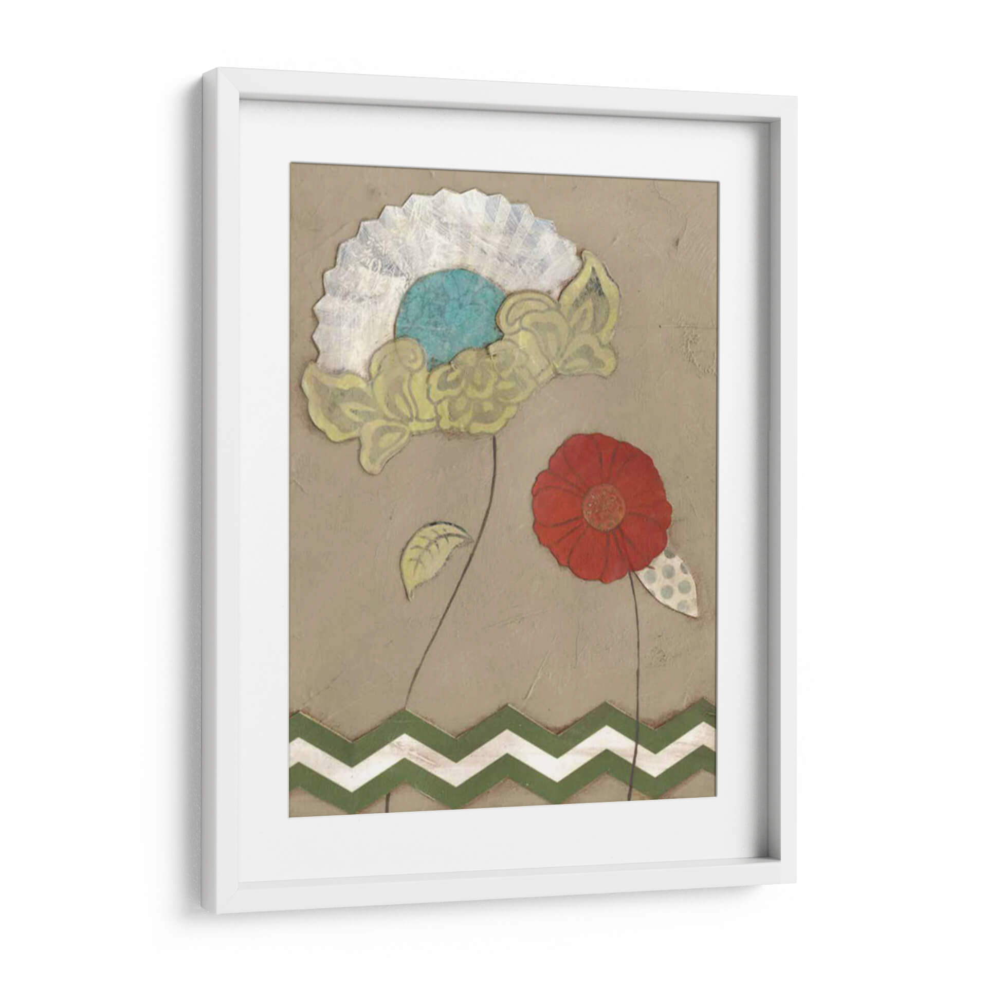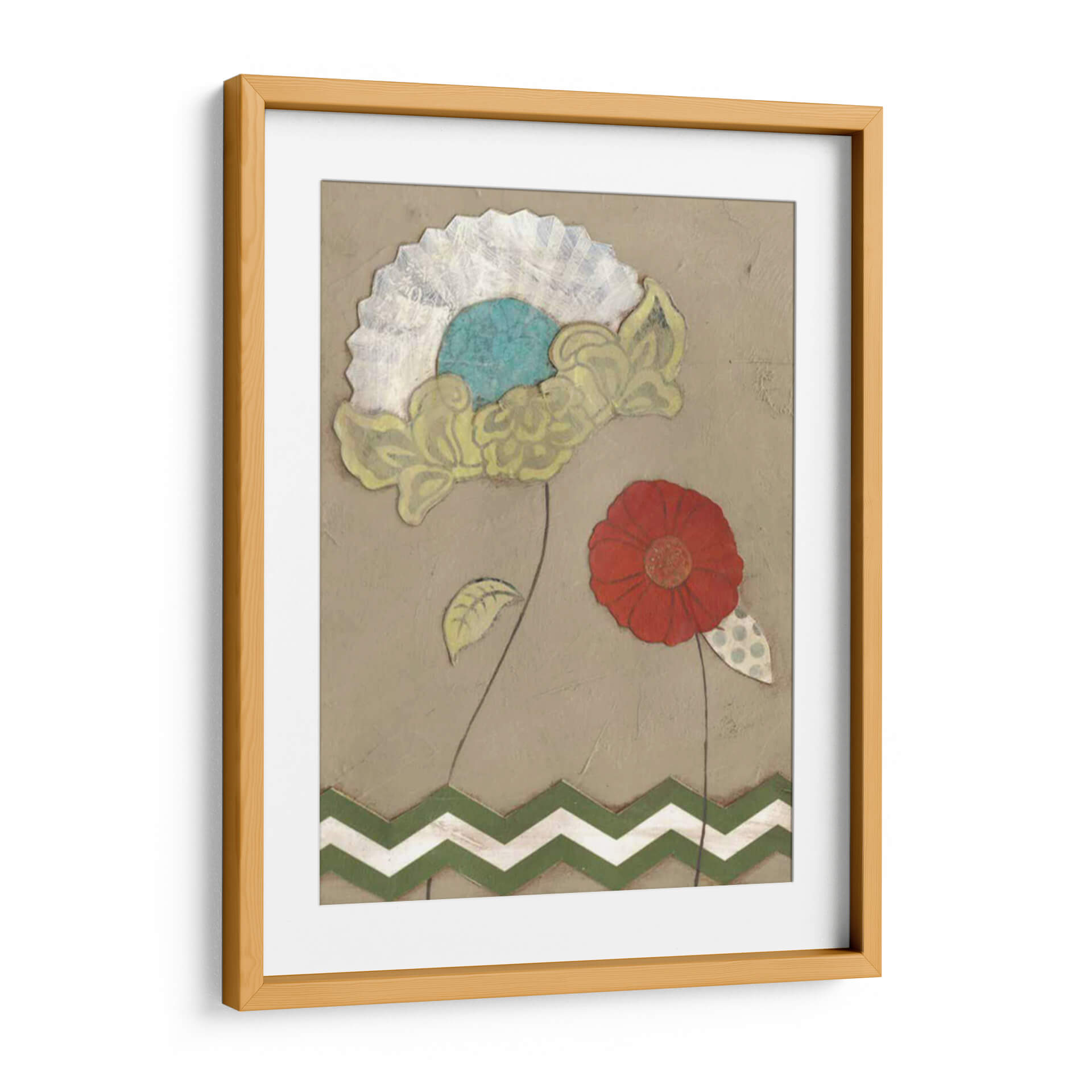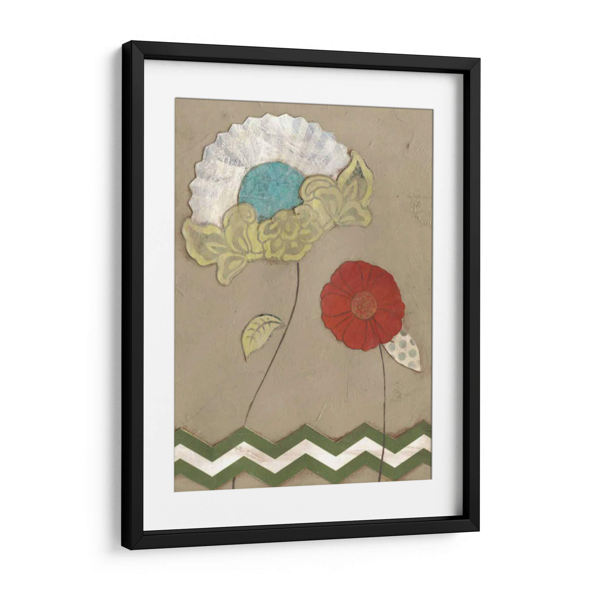 Descubre la serenidad y el encanto floral con "Patrones De Pétalos Vi", una obra de arte contemporáneo de June Erica Vess. Este cautivador cuadro decorativo presenta un diseño delicado con dos flores estilizadas sobre un fondo texturizado en tonos tierra. La flor principal, de gran tamaño, despliega pétalos en tonos amarillos y blancos, coronada por un vibrante centro azul turquesa que añade un toque de frescura. A su lado, una flor más pequeña en un audaz color rojo captura la mirada, contrastando bellamente con las sutiles hojas y el fondo neutro. La base de la composición se adorna con un moderno patrón de zigzag en verde y blanco, aportando un dinamismo inesperado. El estilo de la obra, que combina elementos de collage y pintura, crea una textura visual rica y una sensación de profundidad, evocando la delicadeza de la naturaleza con un giro moderno. "Patrones De Pétalos Vi" es ideal para añadir un toque de color y sofisticación a cualquier espacio, desde un salón acogedor hasta un estudio de trabajo o un dormitorio tranquilo. Su paleta de colores y su composición armoniosa la convierten en una pieza versátil, perfecta para quienes buscan infundir calma y belleza en su hogar. Transforma tus paredes con este hermoso cuadro decorativo que celebra la forma y el color de las flores de una manera única y artística.