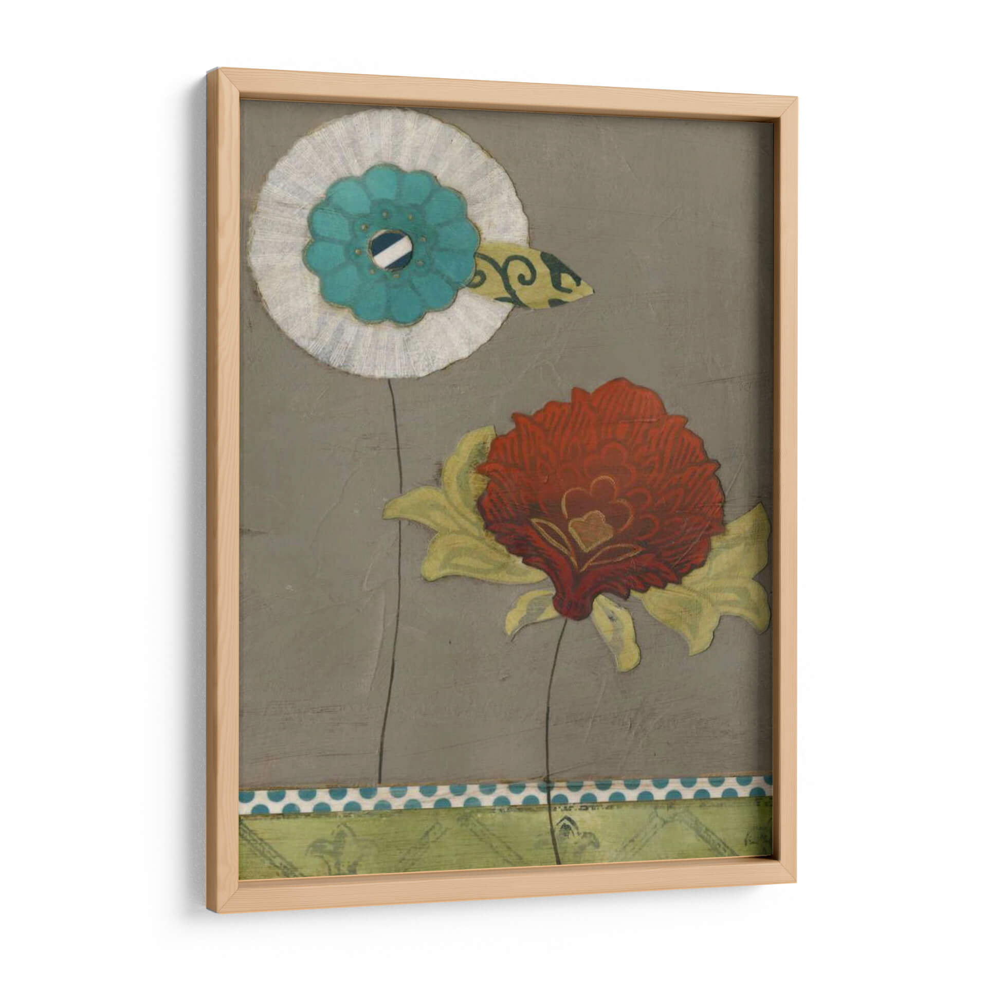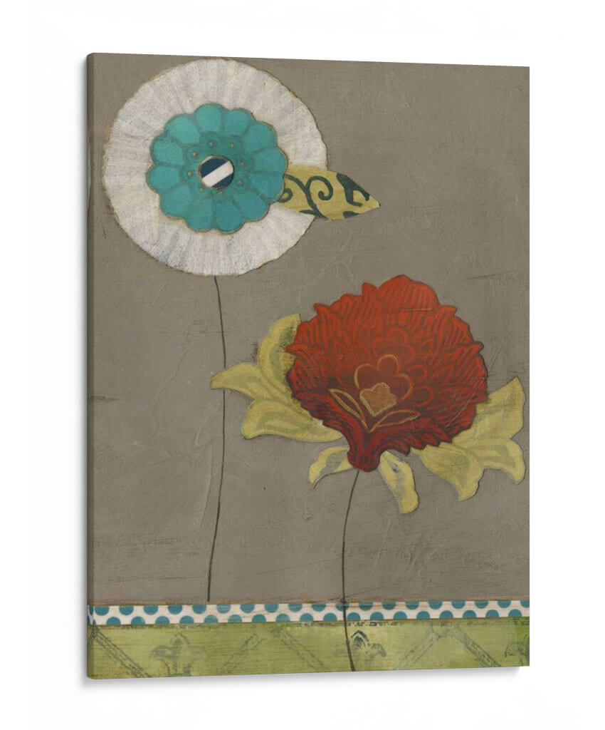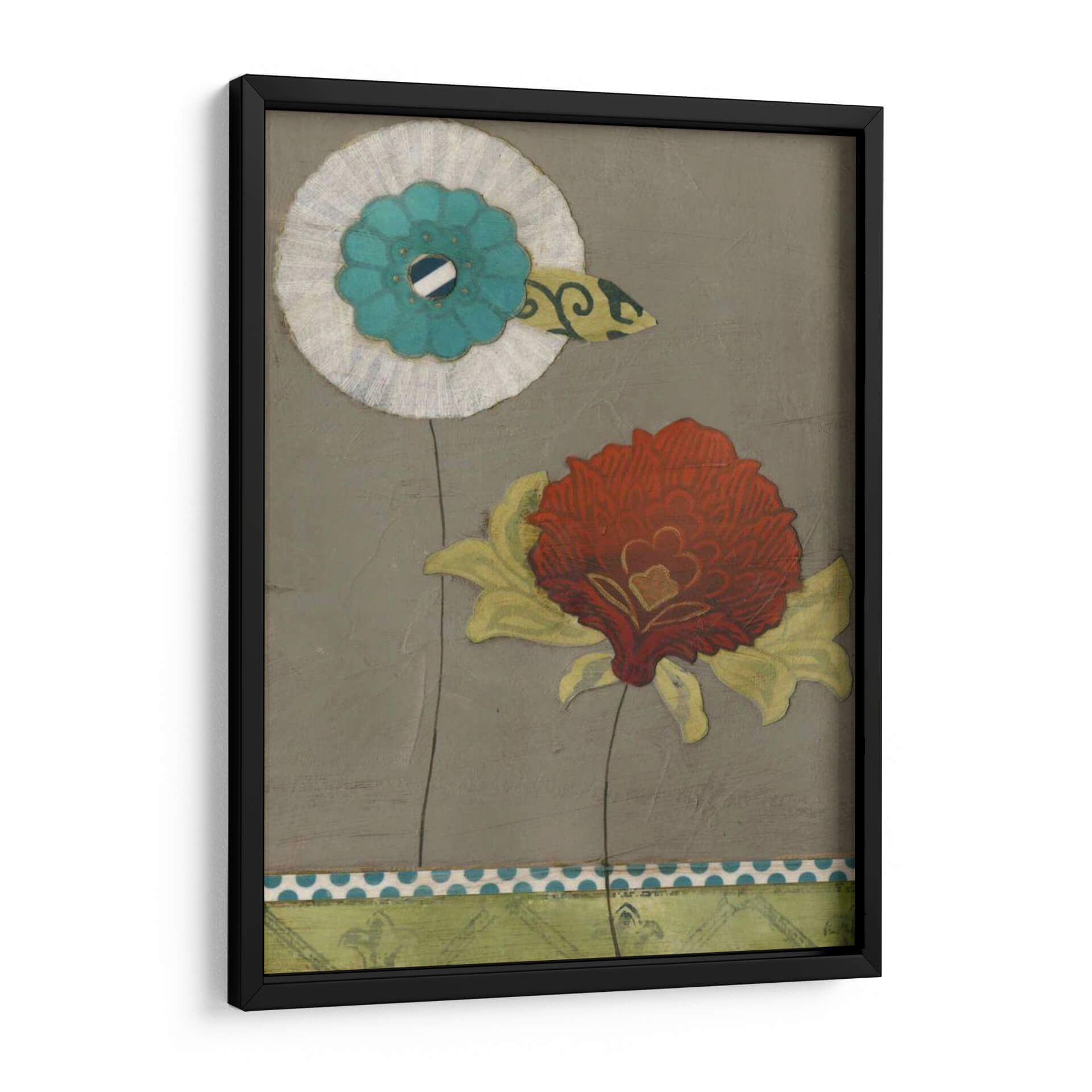 Sumérgete en la delicadeza botánica con "Patrones de Pétalos VII", una obra de arte que celebra la belleza intrínseca de la naturaleza a través de una interpretación artística única. Este cuadro decorativo presenta dos flores estilizadas con un encanto distintivo. La flor superior, un vibrante círculo de pétalos turquesa rodeado por un halo blanco texturizado, contrasta con la flor inferior, un opulento capullo rojo carmesí con intrincados detalles dorados y amarillos que sugieren una rica profundidad. El fondo neutro en tono grisáceo permite que los colores y las texturas de las flores resalten, creando un punto focal cautivador. La base de la obra se adorna con una banda decorativa que fusiona un patrón de lunares celestes con un verde texturizado, aportando un toque terroso y armonioso. La composición, con sus líneas finas y orgánicas, evoca una sensación de calma y elegancia. Ideal para añadir un toque de sofisticación botánica a tu sala de estar, dormitorio o estudio, "Patrones de Pétalos VII" es una pieza que invita a la contemplación y embellece cualquier espacio con su gracia atemporal y su estilo contemporáneo.