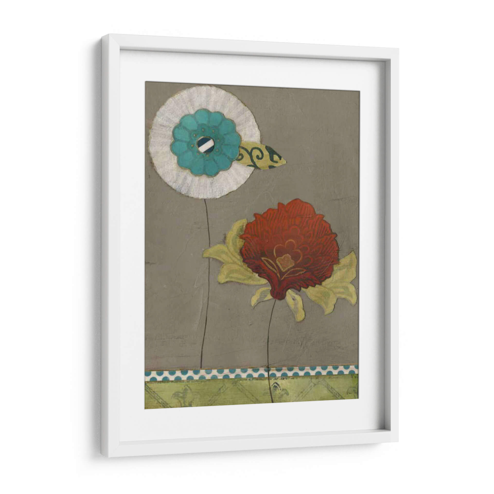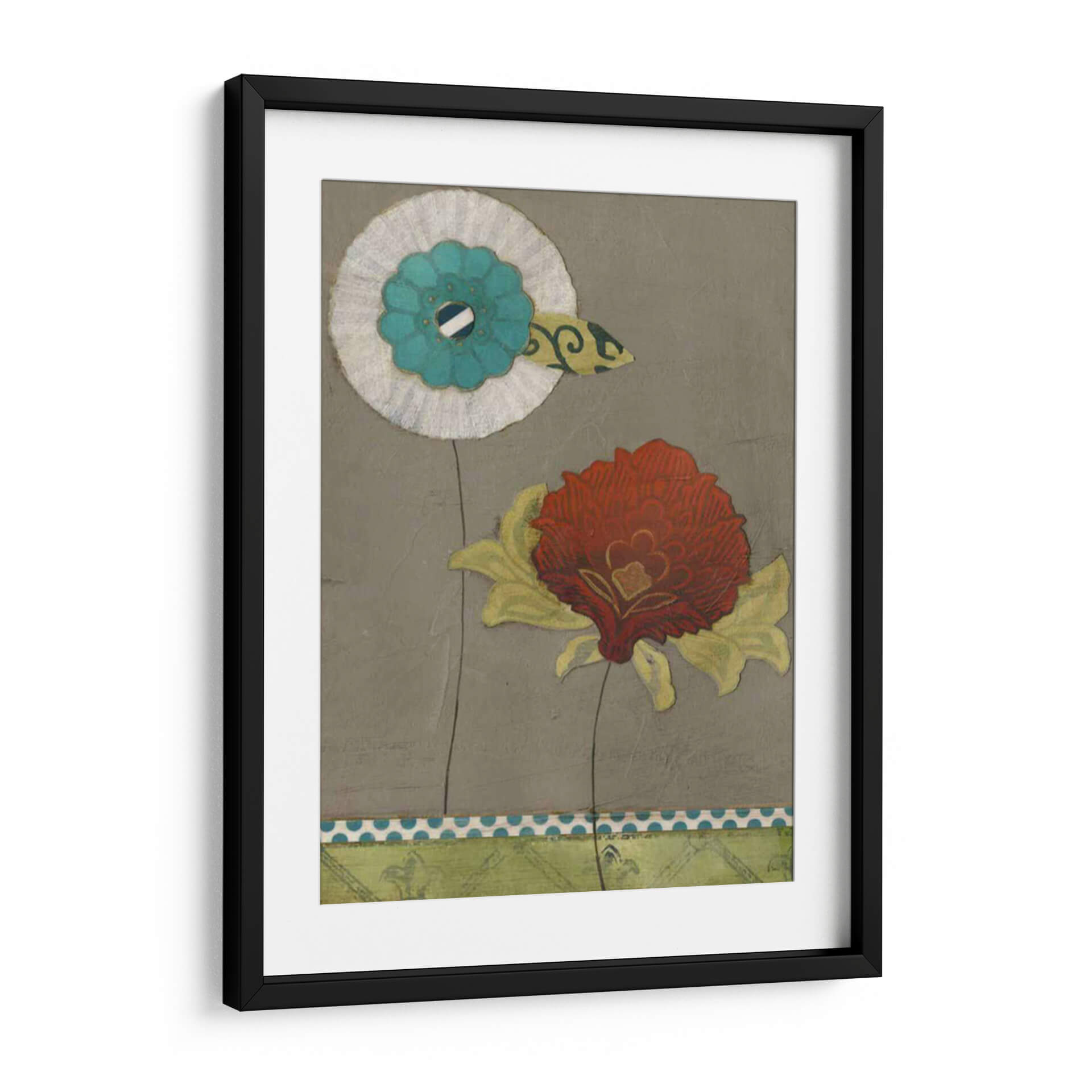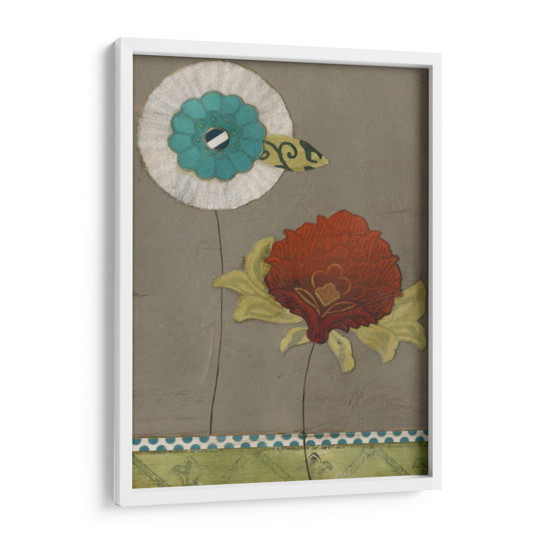 Sumérgete en la delicadeza botánica con "Patrones de Pétalos VII", una obra de arte que celebra la belleza intrínseca de la naturaleza a través de una interpretación artística única. Este cuadro decorativo presenta dos flores estilizadas con un encanto distintivo. La flor superior, un vibrante círculo de pétalos turquesa rodeado por un halo blanco texturizado, contrasta con la flor inferior, un opulento capullo rojo carmesí con intrincados detalles dorados y amarillos que sugieren una rica profundidad. El fondo neutro en tono grisáceo permite que los colores y las texturas de las flores resalten, creando un punto focal cautivador. La base de la obra se adorna con una banda decorativa que fusiona un patrón de lunares celestes con un verde texturizado, aportando un toque terroso y armonioso. La composición, con sus líneas finas y orgánicas, evoca una sensación de calma y elegancia. Ideal para añadir un toque de sofisticación botánica a tu sala de estar, dormitorio o estudio, "Patrones de Pétalos VII" es una pieza que invita a la contemplación y embellece cualquier espacio con su gracia atemporal y su estilo contemporáneo.