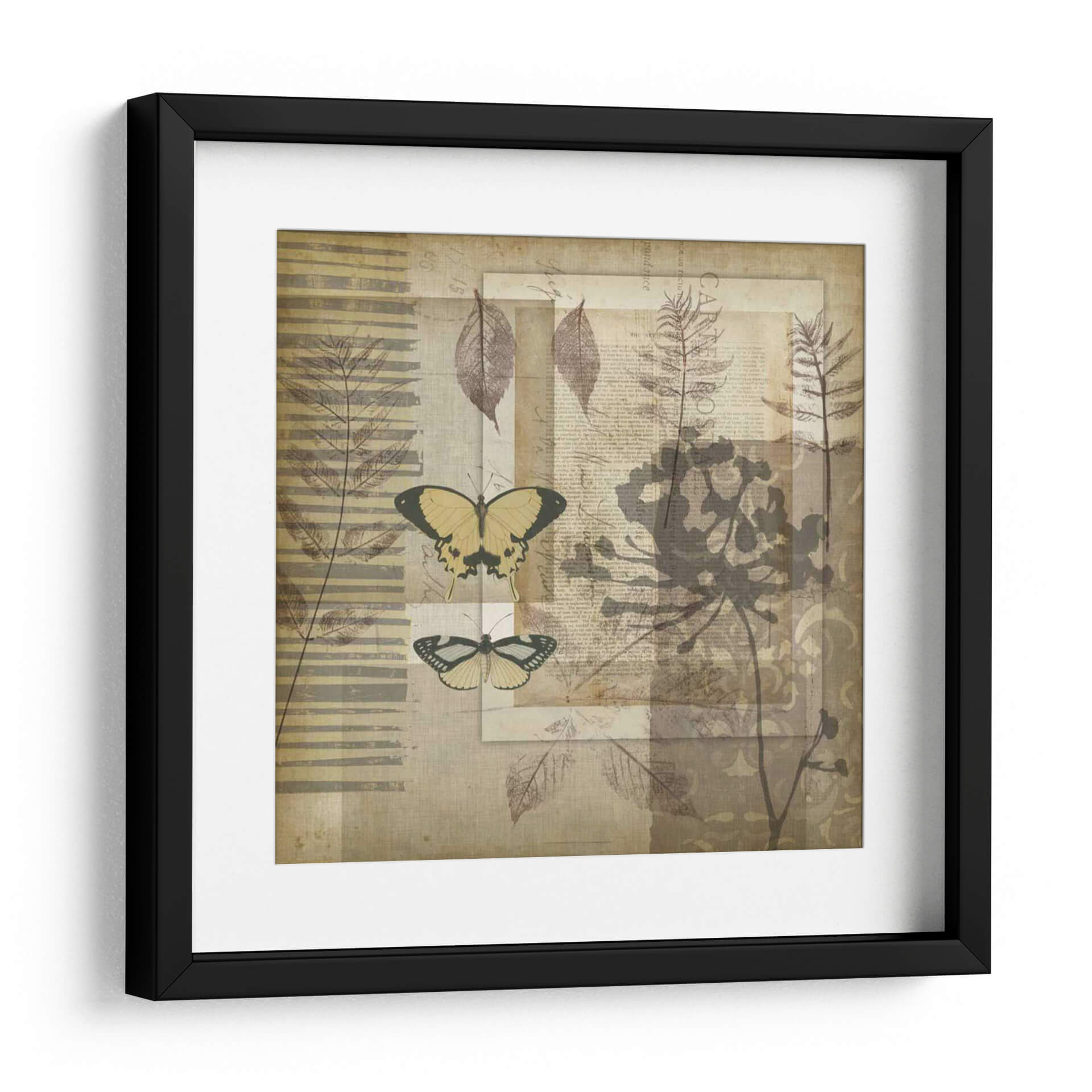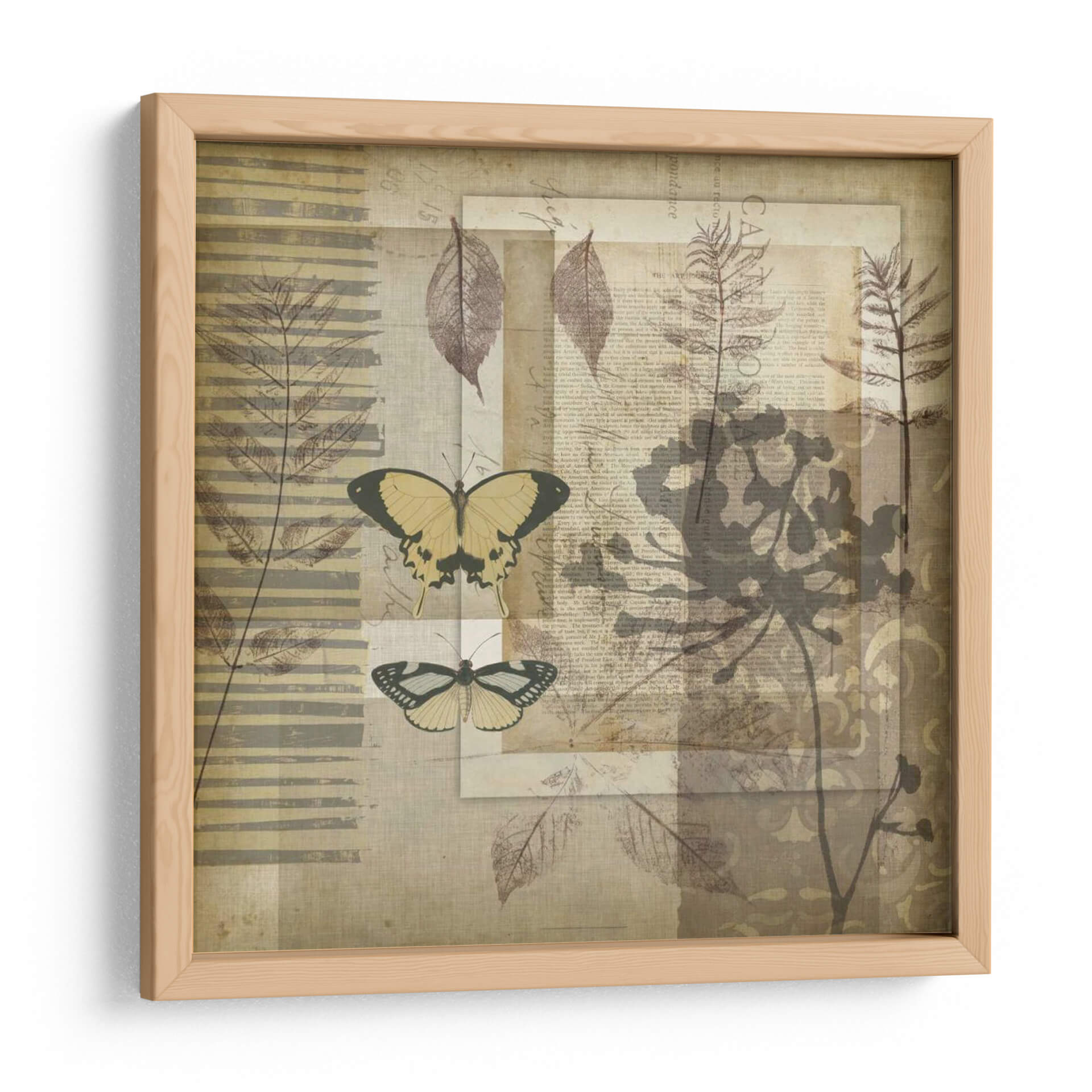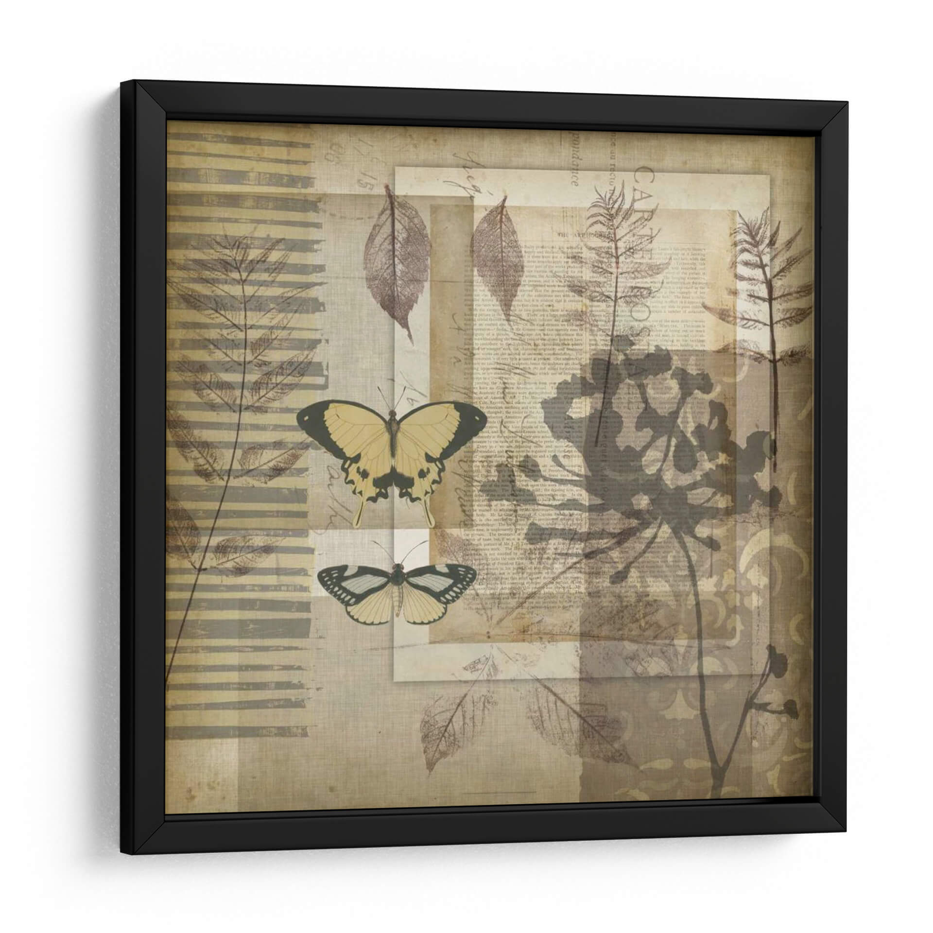 Sumérgete en la delicadeza y el encanto natural con "Pequeño Cuaderno Collage II", una obra de arte que evoca la belleza atemporal de la naturaleza a través de un cautivador collage. Jennifer Goldberger fusiona elementos botánicos y mariposas en una composición que recuerda a un herbario o un diario de campo, pero con un giro artístico contemporáneo. La paleta de colores, dominada por tonos tierra, sepia y amarillos suaves, crea una atmósfera de calidez, nostalgia y serenidad, perfecta para añadir un toque de sofisticación orgánica a cualquier espacio. Las texturas sutiles, que insinúan el paso del tiempo a través de fragmentos de texto y patrones delicados, invitan a la contemplación. Las mariposas, capturadas en pleno vuelo o posadas delicadamente, añaden un elemento de ligereza y transformación. Este cuadro decorativo es ideal para quienes buscan una pieza que combine la elegancia discreta con la fascinación por el mundo natural, aportando un aire de tranquilidad y belleza orgánica a salones, dormitorios u oficinas. Transforma tu hogar en un santuario de estilo con este evocador collage botánico.