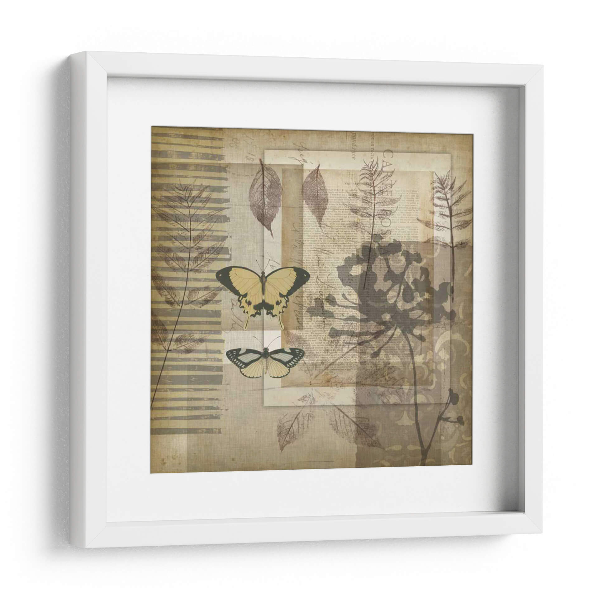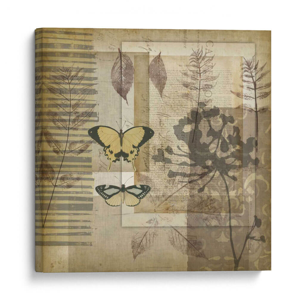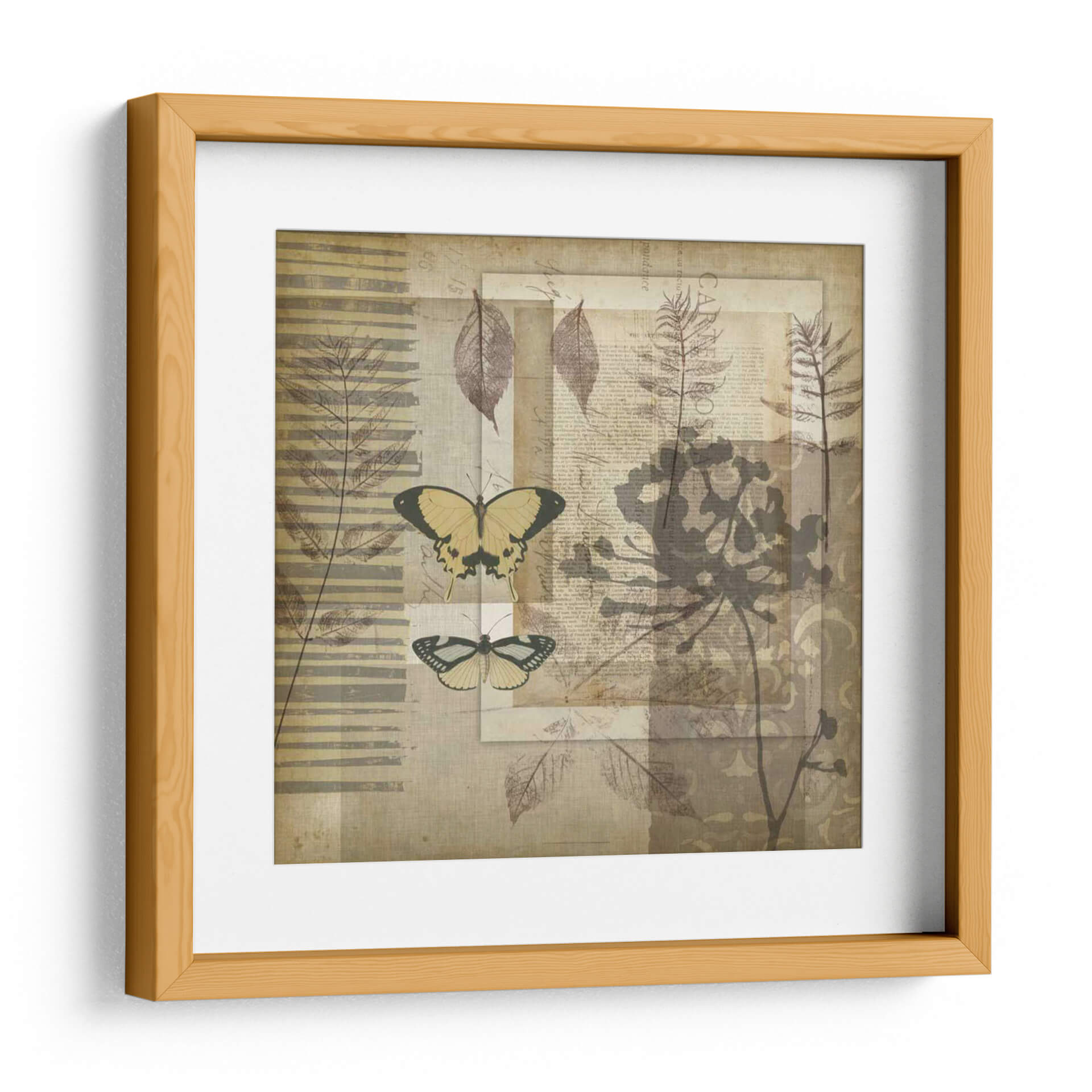 Sumérgete en la delicadeza y el encanto natural con "Pequeño Cuaderno Collage II", una obra de arte que evoca la belleza atemporal de la naturaleza a través de un cautivador collage. Jennifer Goldberger fusiona elementos botánicos y mariposas en una composición que recuerda a un herbario o un diario de campo, pero con un giro artístico contemporáneo. La paleta de colores, dominada por tonos tierra, sepia y amarillos suaves, crea una atmósfera de calidez, nostalgia y serenidad, perfecta para añadir un toque de sofisticación orgánica a cualquier espacio. Las texturas sutiles, que insinúan el paso del tiempo a través de fragmentos de texto y patrones delicados, invitan a la contemplación. Las mariposas, capturadas en pleno vuelo o posadas delicadamente, añaden un elemento de ligereza y transformación. Este cuadro decorativo es ideal para quienes buscan una pieza que combine la elegancia discreta con la fascinación por el mundo natural, aportando un aire de tranquilidad y belleza orgánica a salones, dormitorios u oficinas. Transforma tu hogar en un santuario de estilo con este evocador collage botánico.