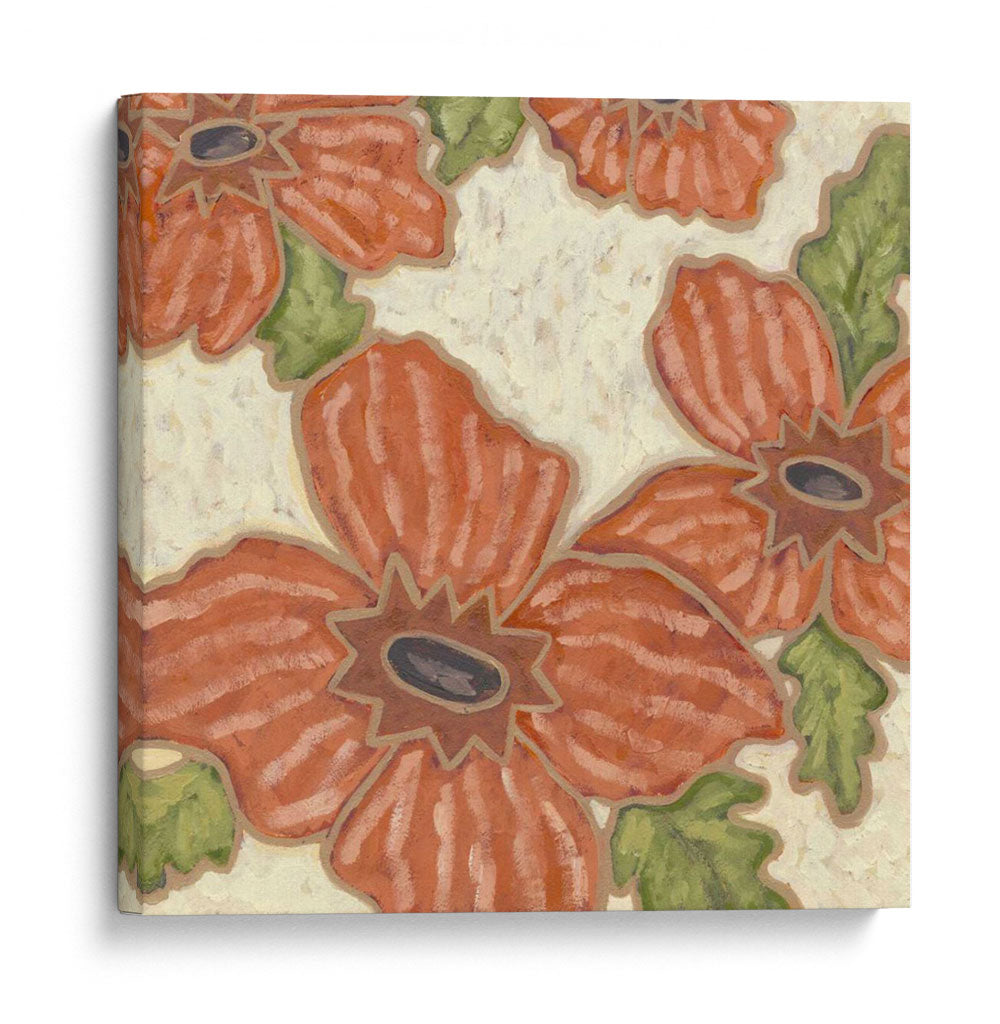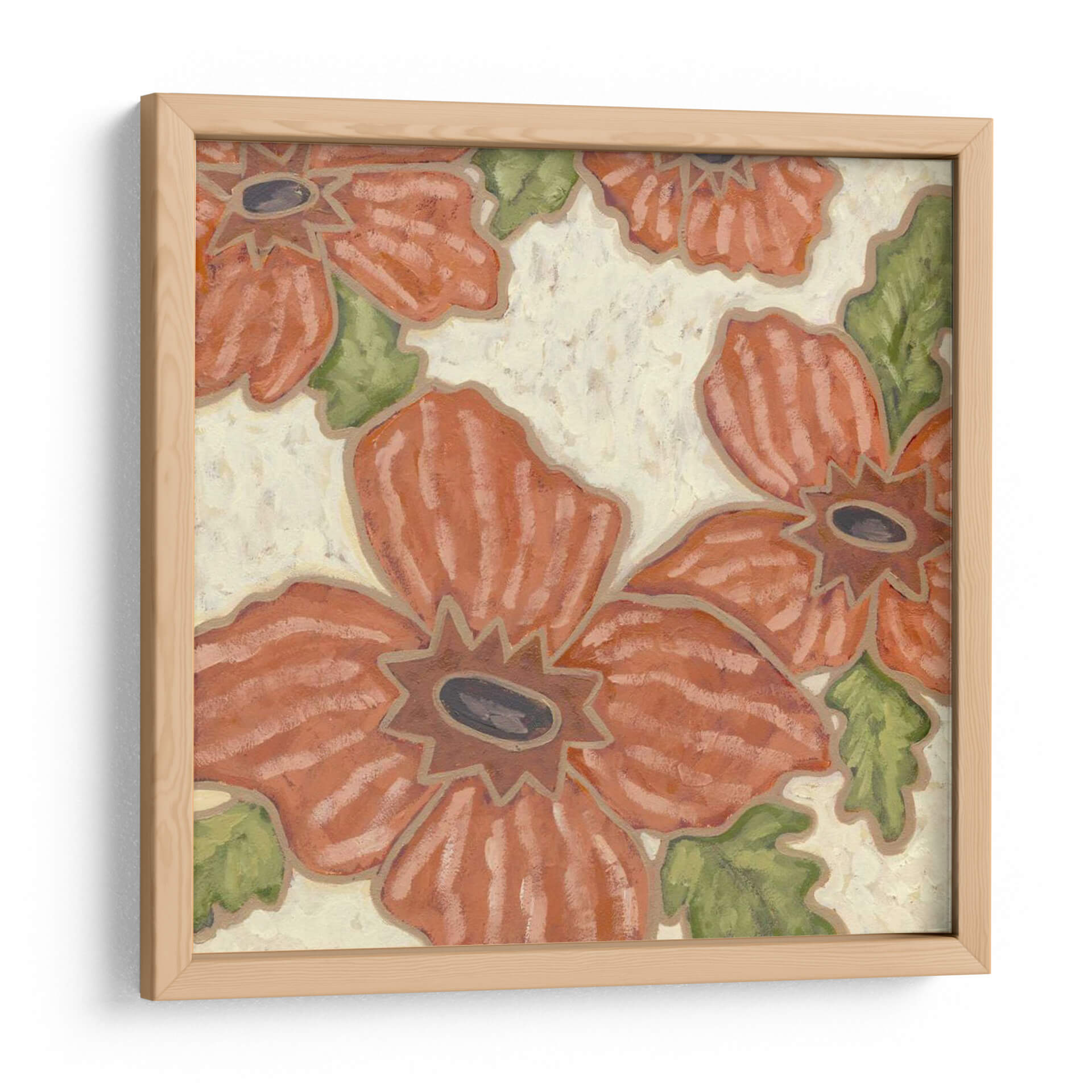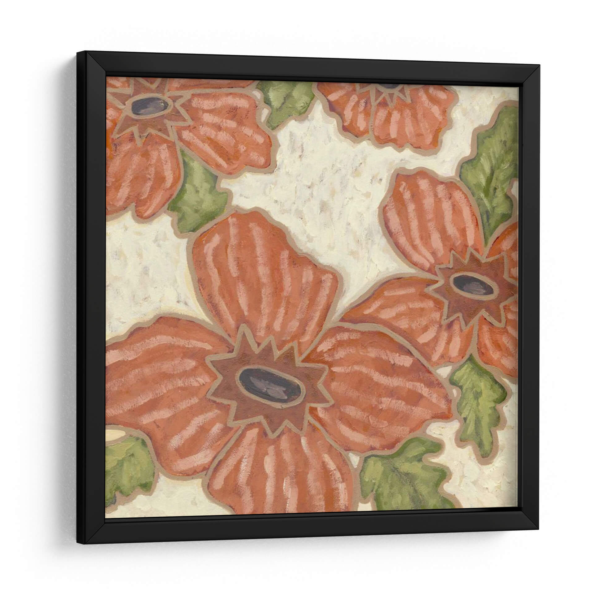 Embellece tu espacio con "Persimmon Flora II", una cautivadora obra de arte floral que celebra la vibrante belleza de la naturaleza. Esta pieza presenta un patrón rítmico de flores en tonos naranjas intensos, con delicados toques de verde en sus hojas, todo sobre un fondo de color crema texturizado. El estilo artístico combina elementos decorativos con una aproximación semi-abstracta, donde los contornos definidos en tonos tierra rodean las formas orgánicas, añadiendo profundidad y un toque artesanal. La composición, con sus flores entrelazadas, evoca una sensación de calidez, vitalidad y una conexión serena con el mundo natural. Ideal para añadir un punto focal lleno de color y vida a tu sala de estar, comedor o incluso un dormitorio, este cuadro decorativo contemporáneo infunde energía positiva y un aire de sofisticación botánica. Transforma cualquier habitación en un oasis de estilo y color con esta exquisita representación de la flora en su máximo esplendor.