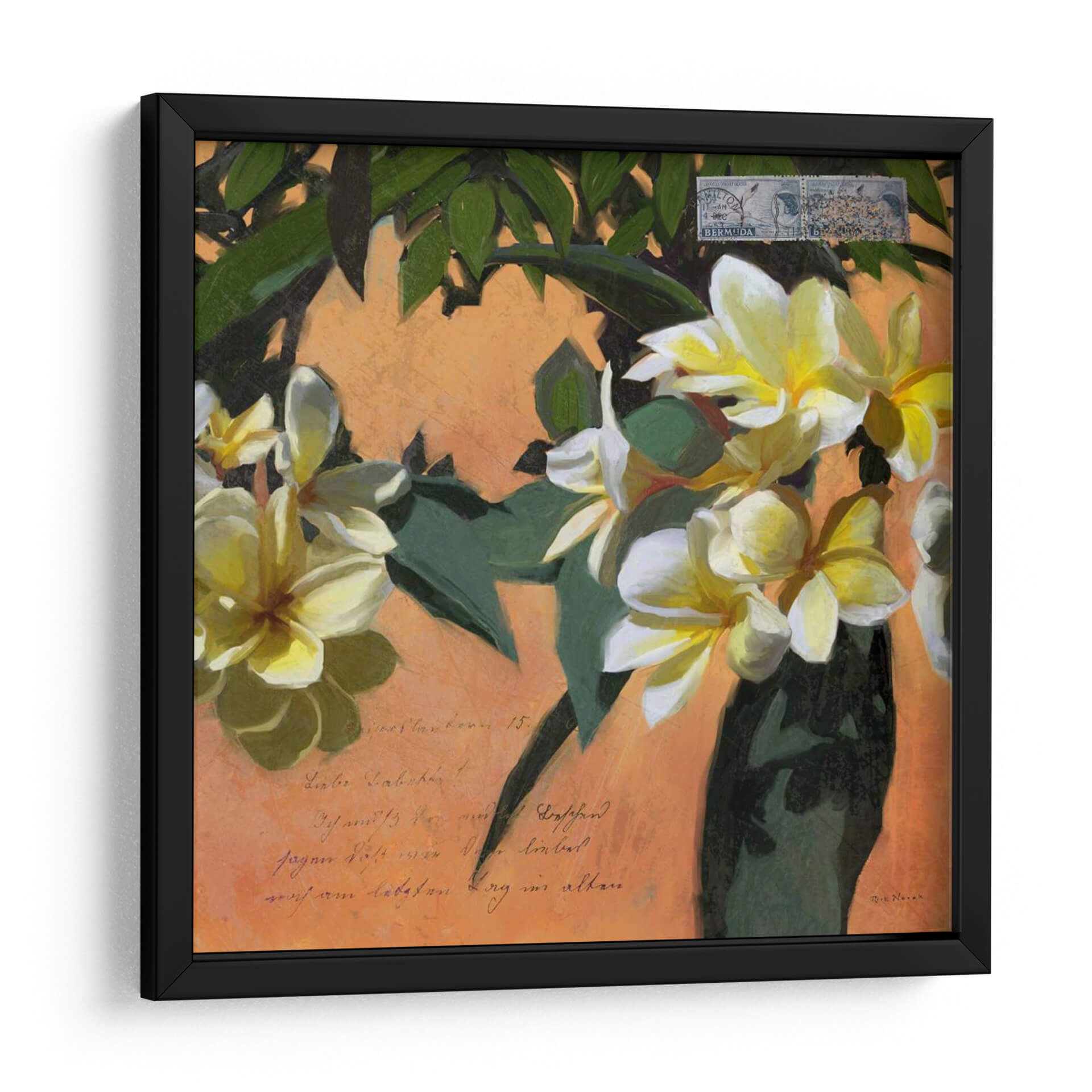 Embellece tu espacio con "Plumeria Y Franqueo I", una obra de arte evocadora del artista Rick Novak. Este cuadro decorativo captura la delicadeza de las flores de plumeria en plena floración, con pétalos blancos y amarillos vibrantes que contrastan suavemente con un fondo cálido en tonos anaranjados. Las hojas verdes exuberantes añaden profundidad y un toque de naturaleza, mientras que la textura sutil de la pincelada invita a una contemplación serena. La inclusión de sellos postales y caligrafía antigua añade un elemento de nostalgia y sofisticación, evocando un aire de cartas enviadas desde lugares exóticos. Esta pieza, con su composición equilibrada y paleta de colores armoniosa, es ideal para aportar un toque de frescura tropical y elegancia a cualquier habitación, desde una sala de estar luminosa hasta un dormitorio tranquilo o un espacio de oficina que busque inspiración. "Plumeria Y Franqueo I" no es solo una decoración; es una ventana a un momento de belleza natural y recuerdos serenos, una obra que transformará tu hogar en un santuario de paz y estilo.