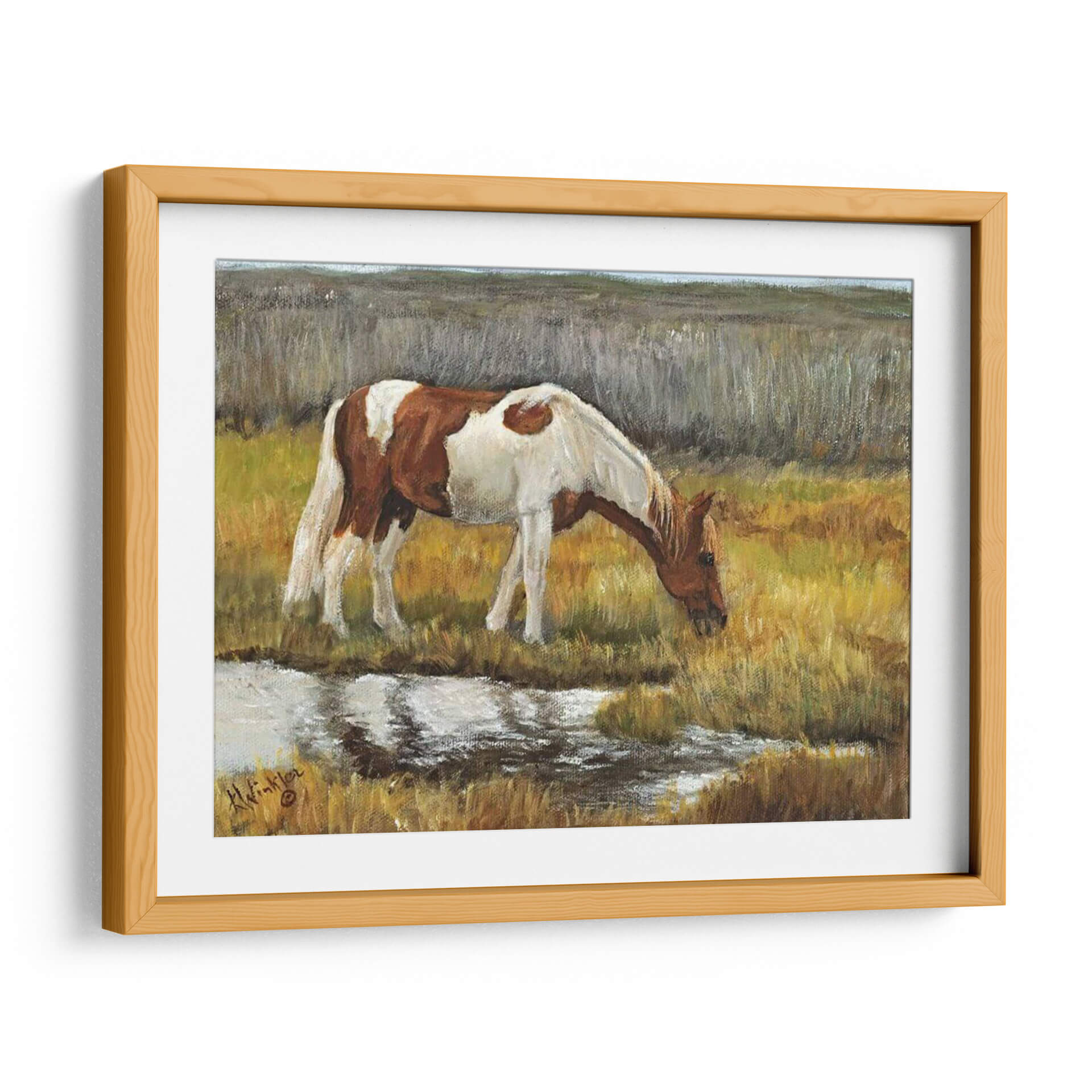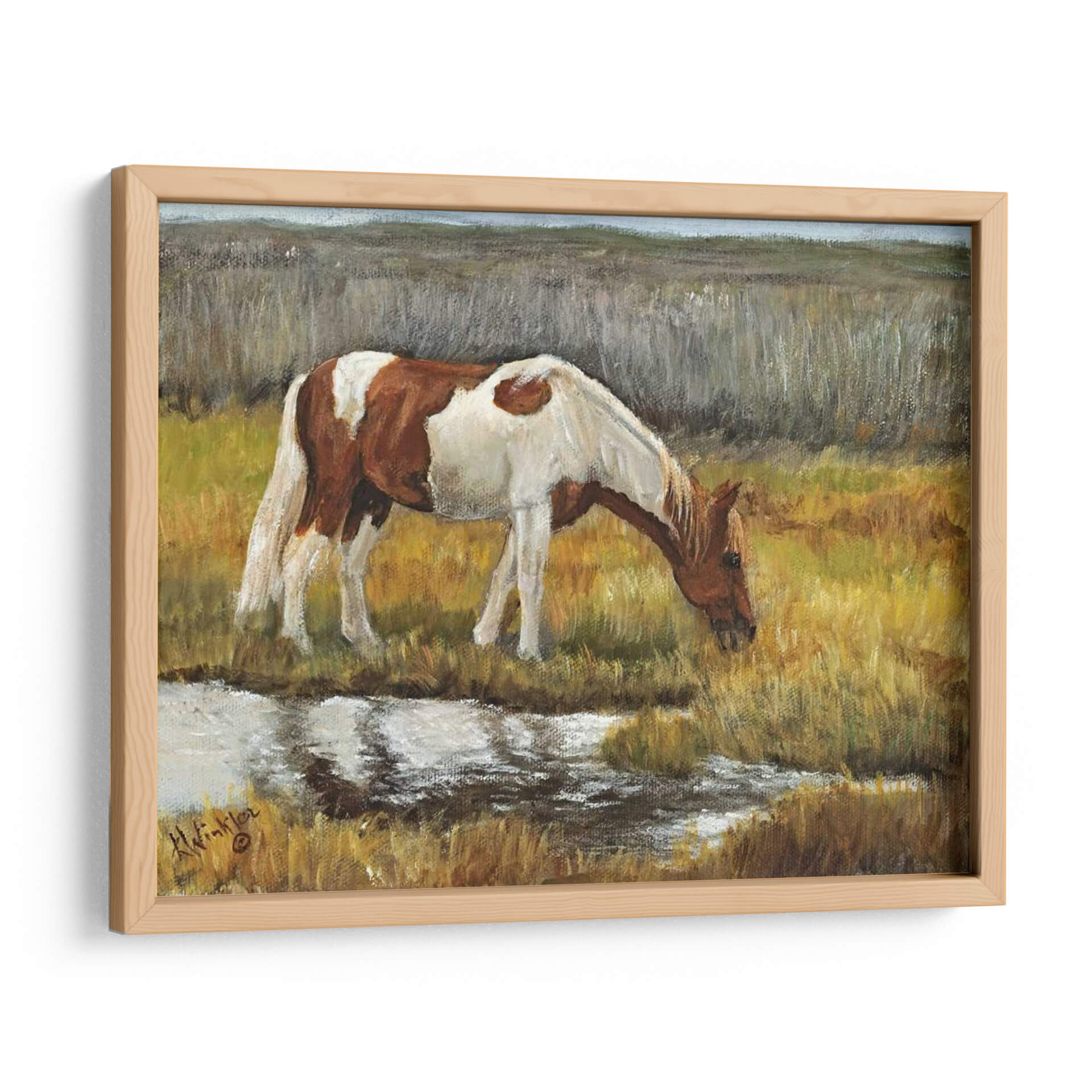 Sumérgete en la serena belleza de "Pradera Masticando", una obra maestra de Kathy Winkler que captura un momento de paz ecuestre. Este cuadro decorativo presenta un caballo de pelaje pinto, con una armoniosa combinación de blanco y marrón, pastando tranquilamente en un exuberante prado de tonos dorados y ocres. La pincelada suelta y expresiva del artista evoca una sensación de movimiento natural y autenticidad, mientras que la paleta de colores cálidos y terrosos crea una atmósfera acogedora y natural. La composición se centra en la figura del caballo, inmerso en su entorno, con un arroyo reflejando el cielo en primer plano, añadiendo profundidad y realismo a la escena. Ideal para quienes buscan infundir sus espacios con la calma de la naturaleza y la elegancia de los animales, este cuadro decorativo es perfecto para salones, dormitorios o estudios que deseen un toque de sofisticación rústica. Su estilo pictórico, con reminiscencias del impresionismo por su tratamiento de la luz y la atmósfera, lo convierte en una pieza versátil capaz de complementar tanto decoraciones modernas como tradicionales. Deja que "Pradera Masticando" aporte una sensación de tranquilidad y conexión con el mundo natural a tu hogar.