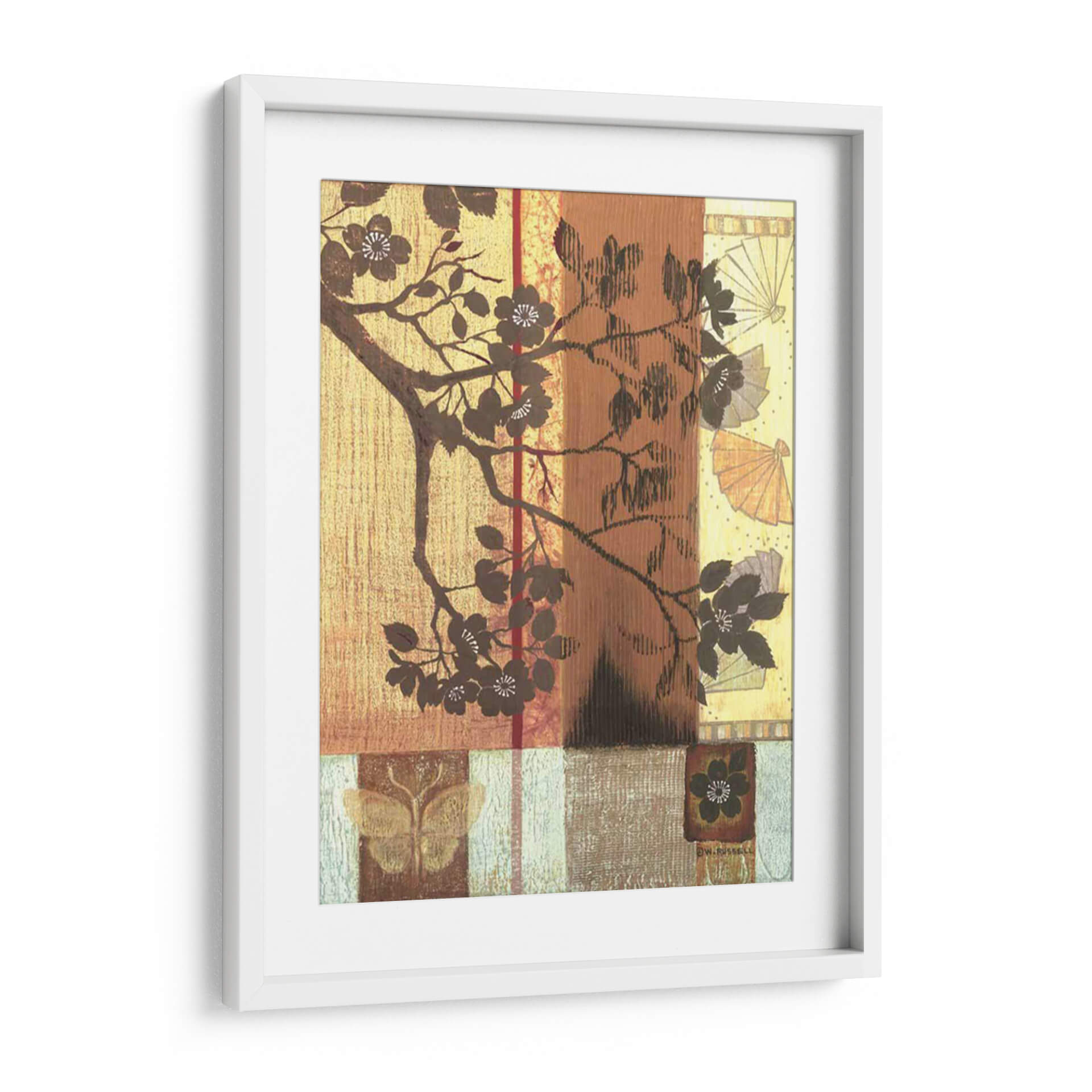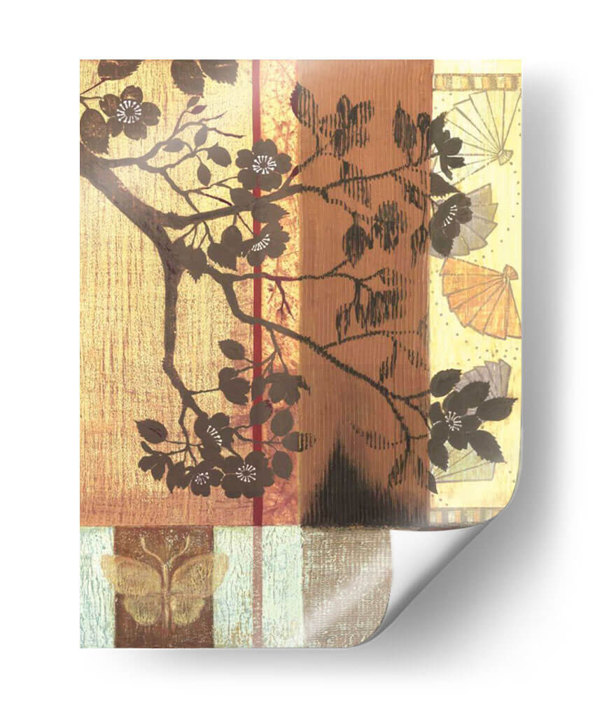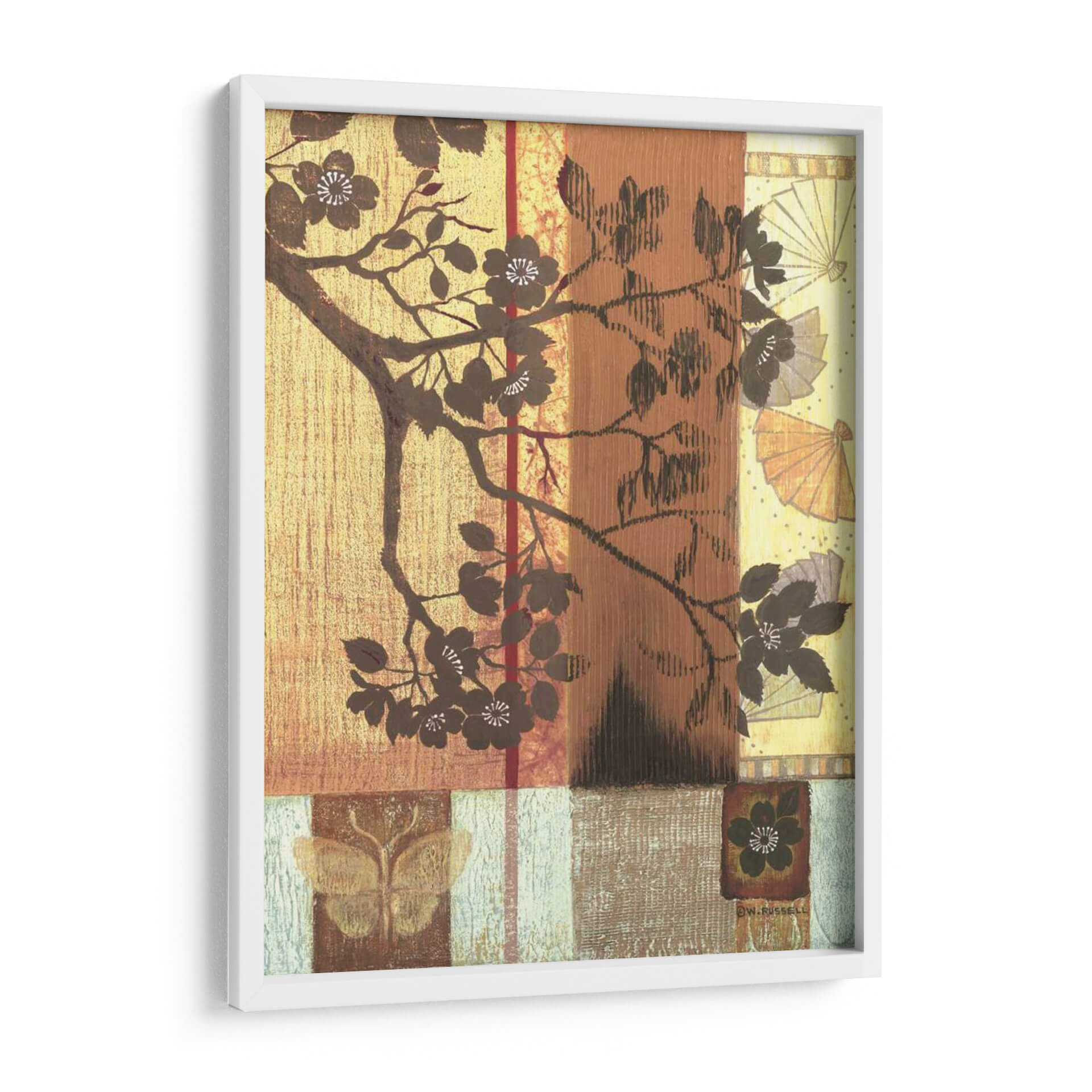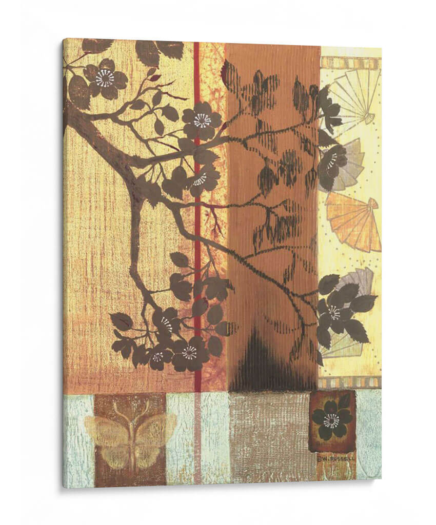 Transforma tu espacio con la serena belleza de "Rama Floreciente Asiática", una cautivadora obra de arte de Wendy Russell. Este cuadro decorativo te transporta a un jardín zen con su evocadora representación de ramas de cerezo en flor y sutiles toques de inspiración oriental, como abanicos y mariposas estilizadas. La paleta de colores, dominada por tonos tierra cálidos como ocres, marrones y naranjas, se entrelaza con delicadas líneas rojas y acentos amarillos, creando una atmósfera de tranquilidad y armonía. La composición, dividida en secciones verticales que recuerdan a pantallas tradicionales, añade profundidad y un toque contemporáneo a la pieza. Las siluetas oscuras de las ramas y flores contrastan elegantemente con los fondos texturizados, aportando un dinamismo visual sutil. Ideal para quienes buscan infundir calma y sofisticación en su hogar u oficina, este cuadro es perfecto para crear un punto focal pacífico en salones, dormitorios o estudios. Su estilo, que fusiona elementos botánicos con un diseño gráfico moderno, lo convierte en una elección versátil para una variedad de decoraciones, desde las más minimalistas hasta las más eclécticas, invitando a la contemplación y al bienestar.