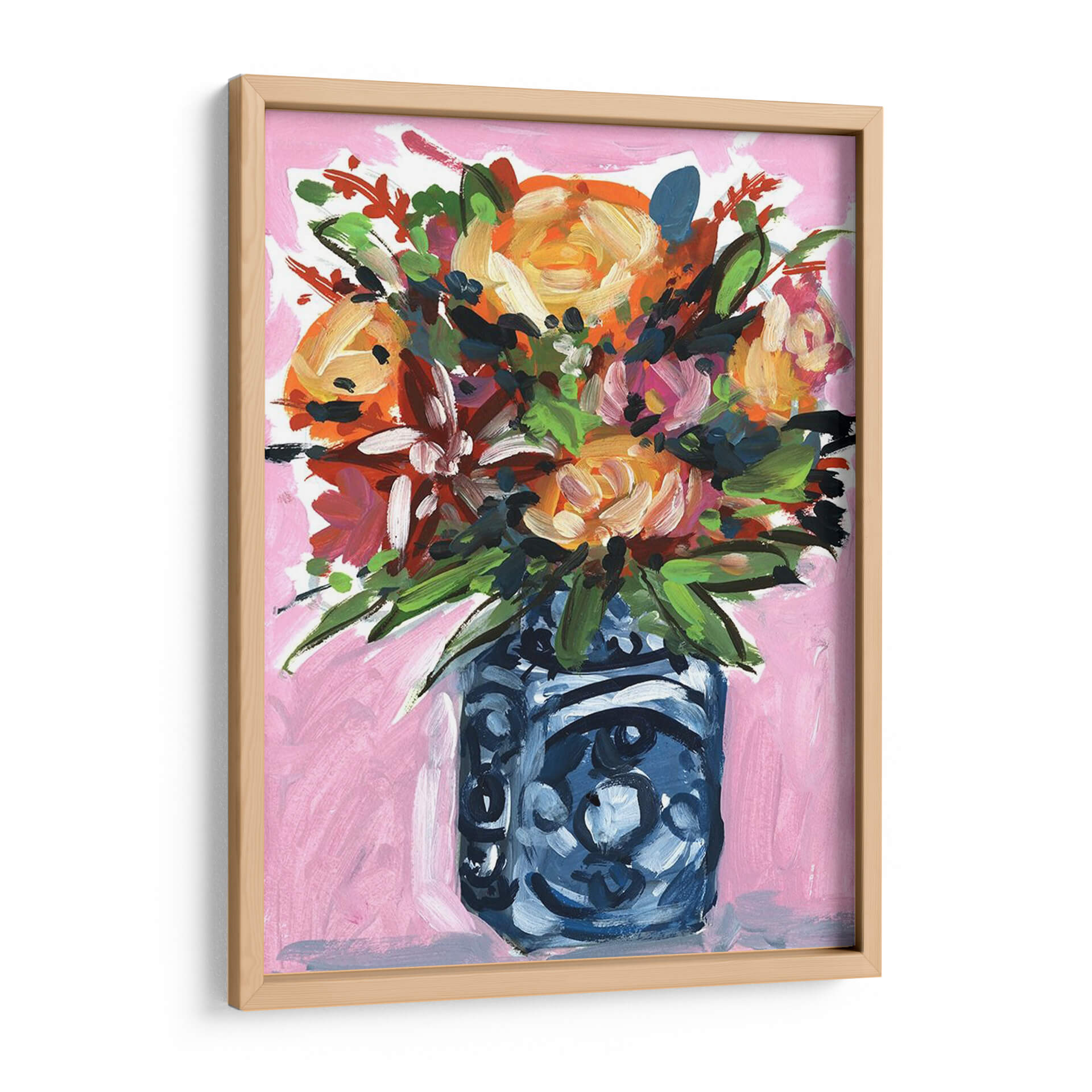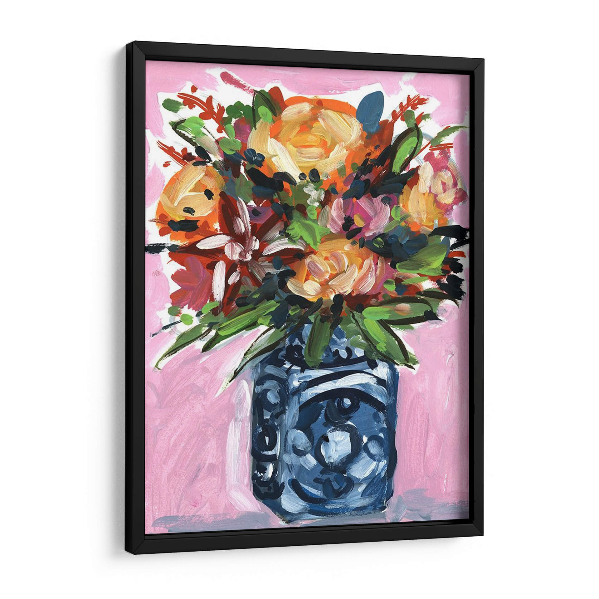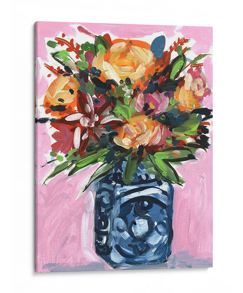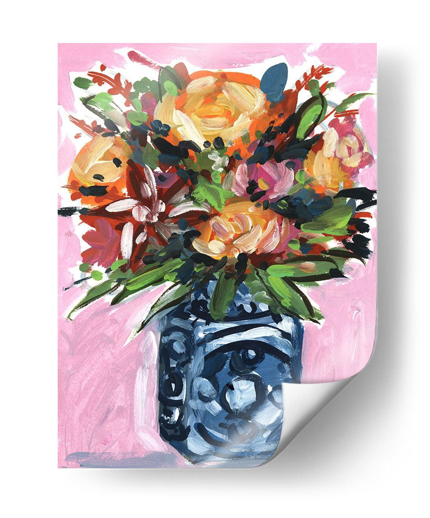 Sumérgete en la vibrante y expresiva obra "Ramo En Un Jarrón Iii" de Melissa Wang, un cuadro decorativo que irradia alegría y vitalidad. Esta pieza captura la esencia de un exuberante ramillete de flores en plena floración, presentado en un jarrón de cerámica azul con intrincados detalles. La paleta de colores es un festín visual, dominada por cálidos tonos anaranjados y amarillos de las flores, contrastando maravillosamente con los profundos verdes del follaje y el llamativo azul cobalto del jarrón. El fondo de un suave rosa con pinceladas audaces crea una atmósfera alegre y moderna, perfecta para cualquier espacio que busque un toque de color y energía. El estilo de pintura, con sus pinceladas visibles y su enfoque en la forma y el color sobre el detalle fotorrealista, evoca una sensación de frescura y espontaneidad, recordando al postimpresionismo. Este cuadro decorativo es ideal para iluminar una sala de estar, añadir un toque de optimismo a una oficina o dar vida a un dormitorio. Su composición equilibrada y sus colores vibrantes lo convierten en un punto focal cautivador, capaz de transformar cualquier ambiente en un espacio más acogedor y lleno de estilo. "Ramo En Un Jarrón Iii" es más que una simple decoración; es una celebración de la belleza efímera de la naturaleza y el poder del arte para alegrar nuestras vidas.