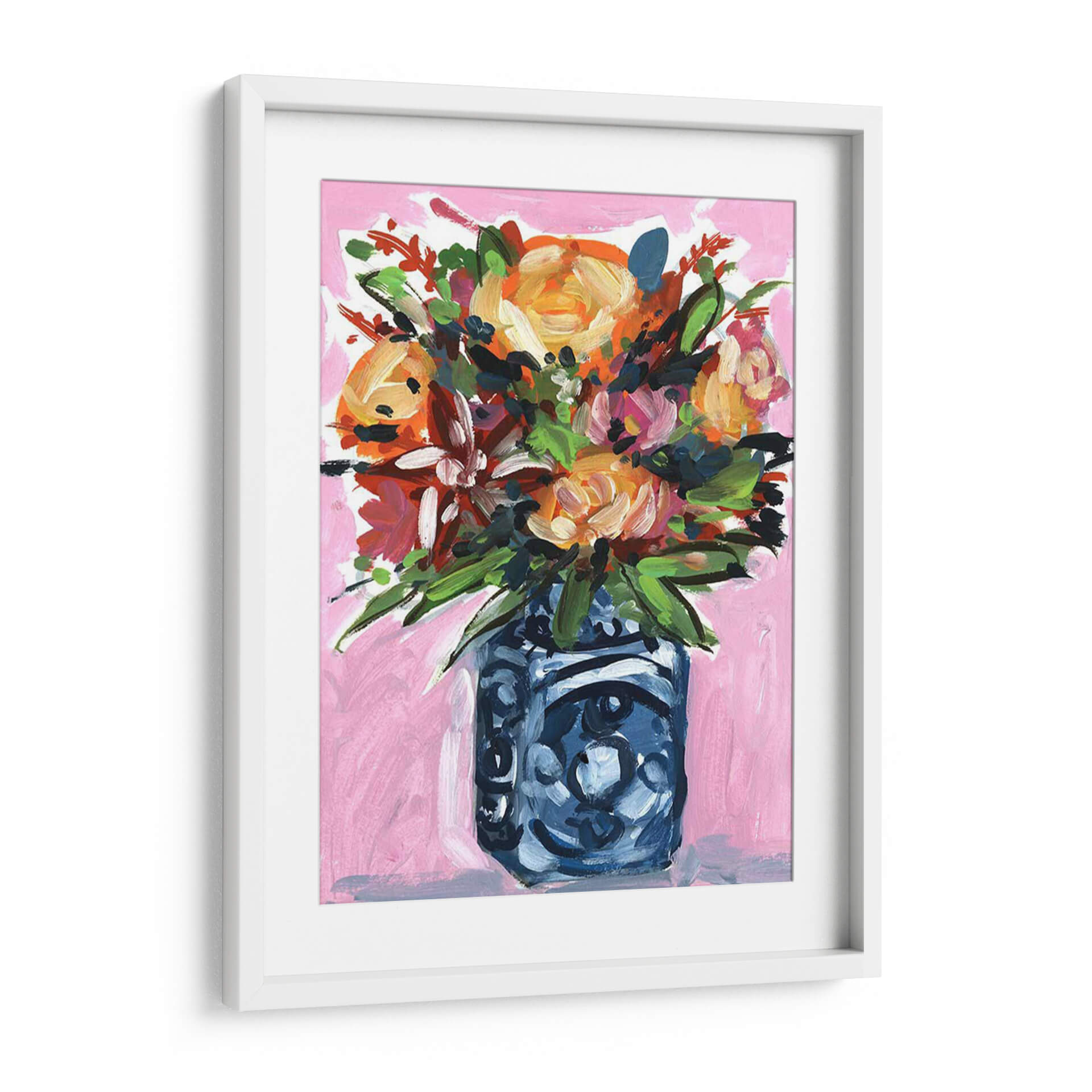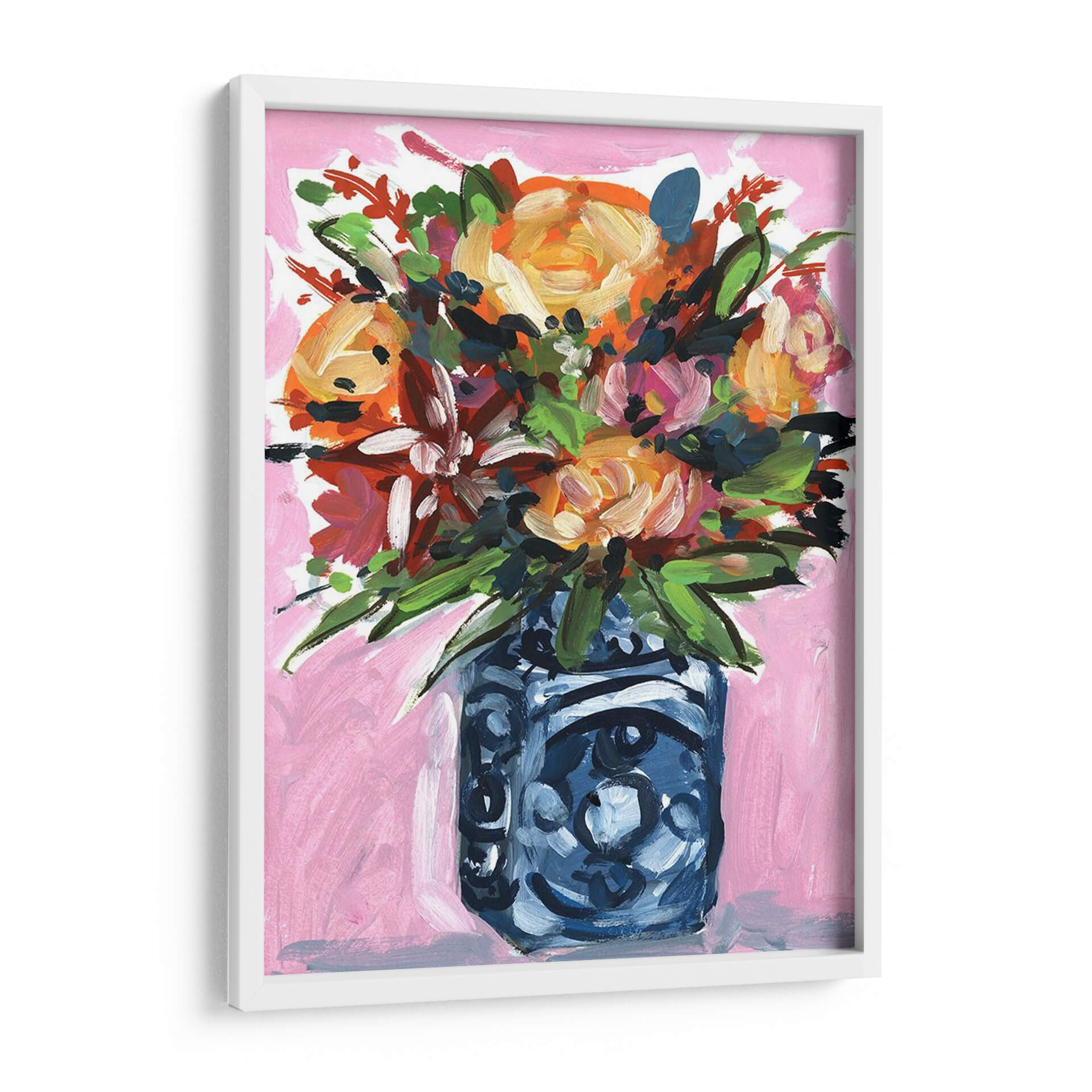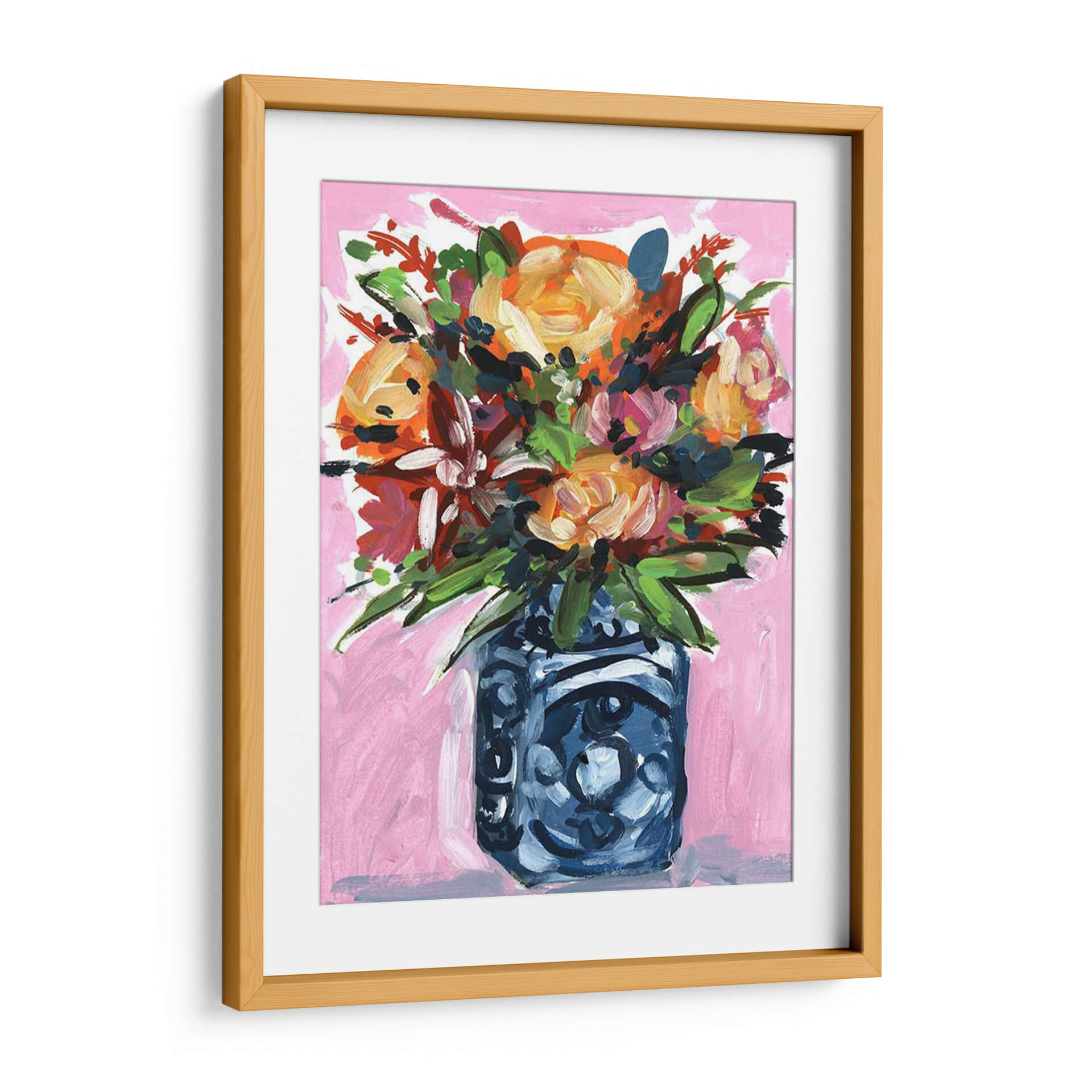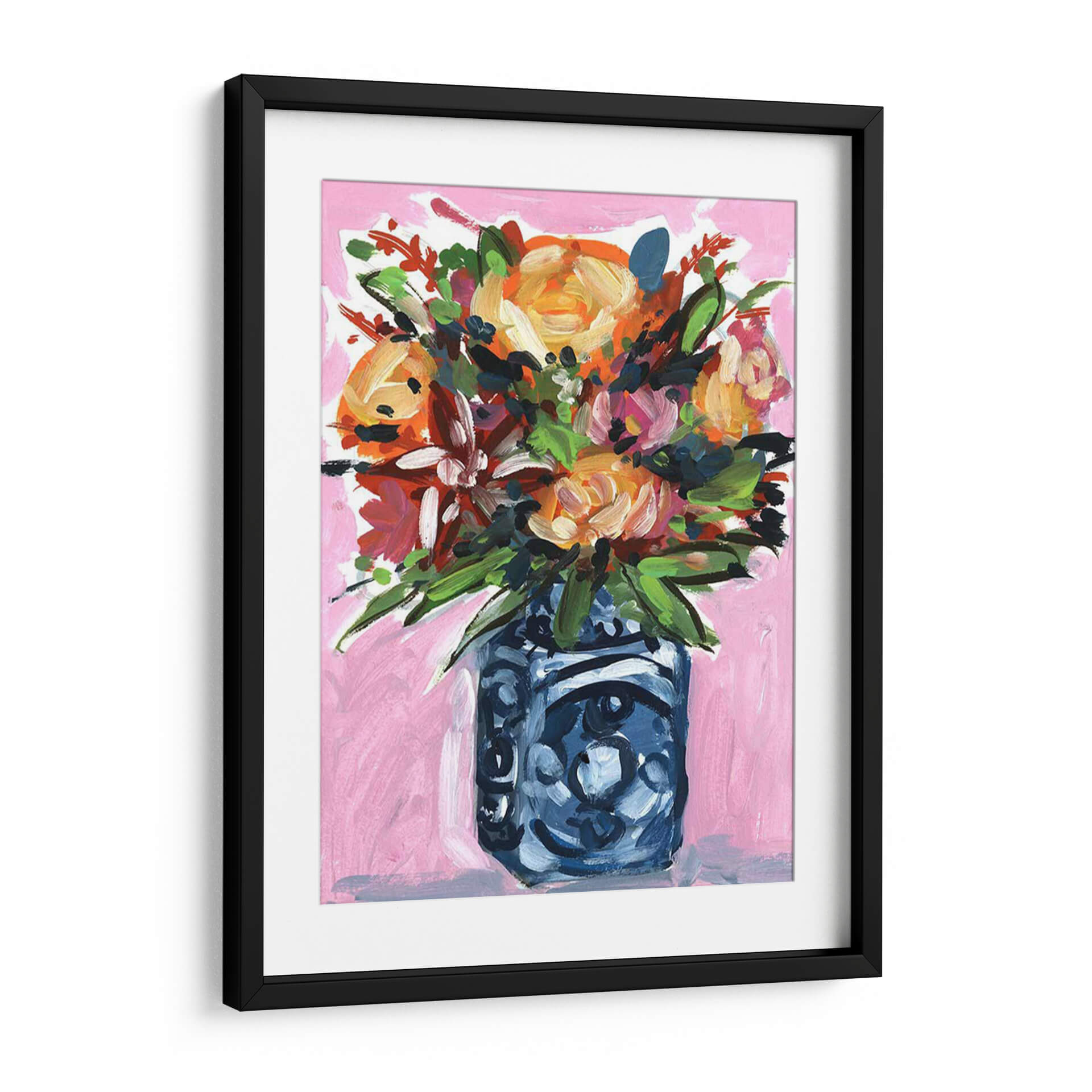 Sumérgete en la vibrante y expresiva obra "Ramo En Un Jarrón Iii" de Melissa Wang, un cuadro decorativo que irradia alegría y vitalidad. Esta pieza captura la esencia de un exuberante ramillete de flores en plena floración, presentado en un jarrón de cerámica azul con intrincados detalles. La paleta de colores es un festín visual, dominada por cálidos tonos anaranjados y amarillos de las flores, contrastando maravillosamente con los profundos verdes del follaje y el llamativo azul cobalto del jarrón. El fondo de un suave rosa con pinceladas audaces crea una atmósfera alegre y moderna, perfecta para cualquier espacio que busque un toque de color y energía. El estilo de pintura, con sus pinceladas visibles y su enfoque en la forma y el color sobre el detalle fotorrealista, evoca una sensación de frescura y espontaneidad, recordando al postimpresionismo. Este cuadro decorativo es ideal para iluminar una sala de estar, añadir un toque de optimismo a una oficina o dar vida a un dormitorio. Su composición equilibrada y sus colores vibrantes lo convierten en un punto focal cautivador, capaz de transformar cualquier ambiente en un espacio más acogedor y lleno de estilo. "Ramo En Un Jarrón Iii" es más que una simple decoración; es una celebración de la belleza efímera de la naturaleza y el poder del arte para alegrar nuestras vidas.
